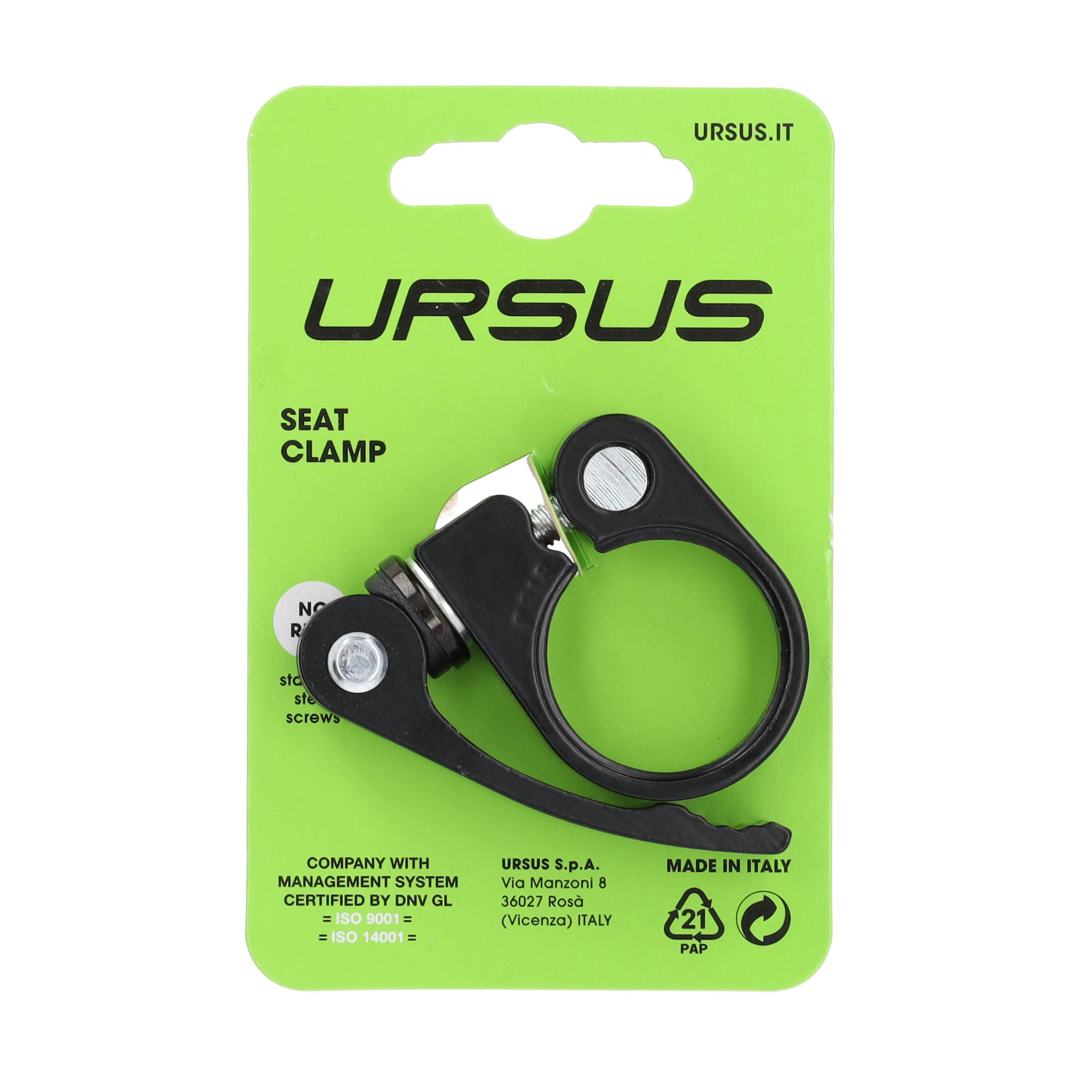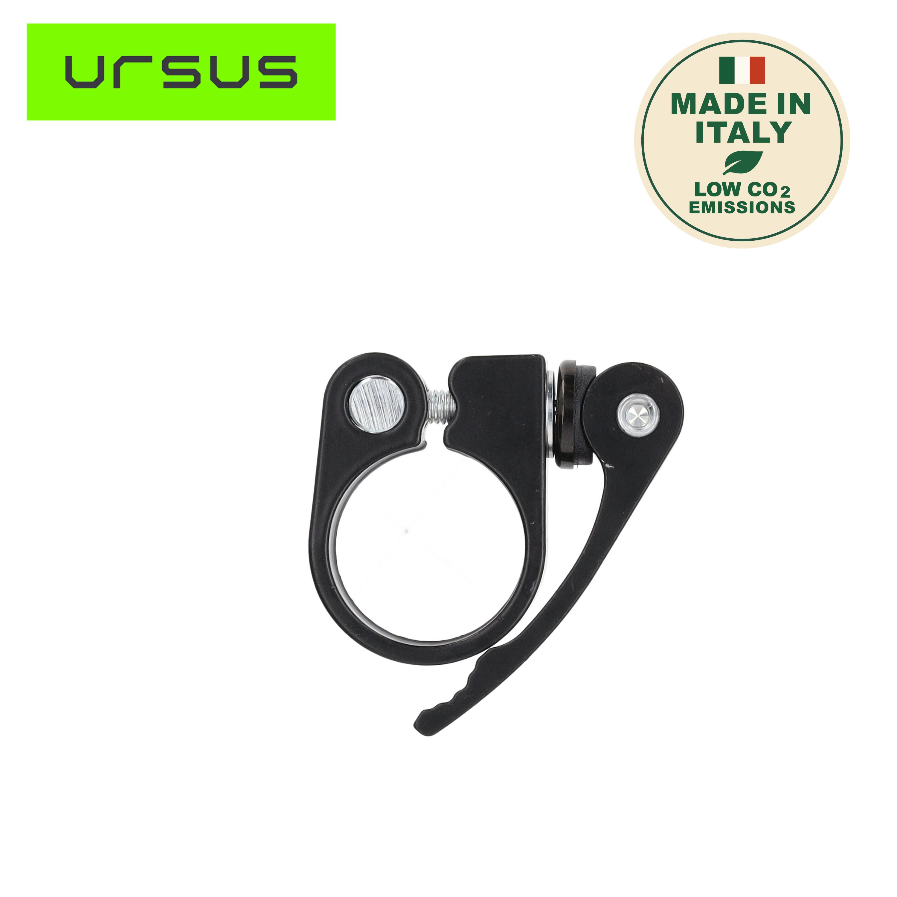Le collier blocage de selle 31,8mm avec levier version noire de la marque URSUS conçu pour serrer votre tige de selle sur cadres et tige de selle sans outils.