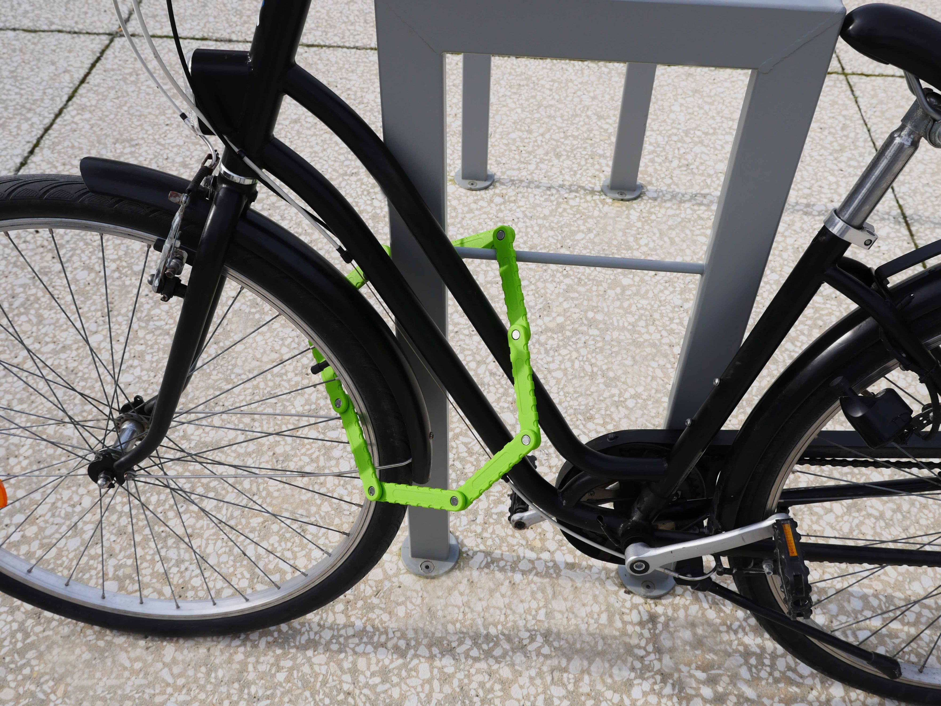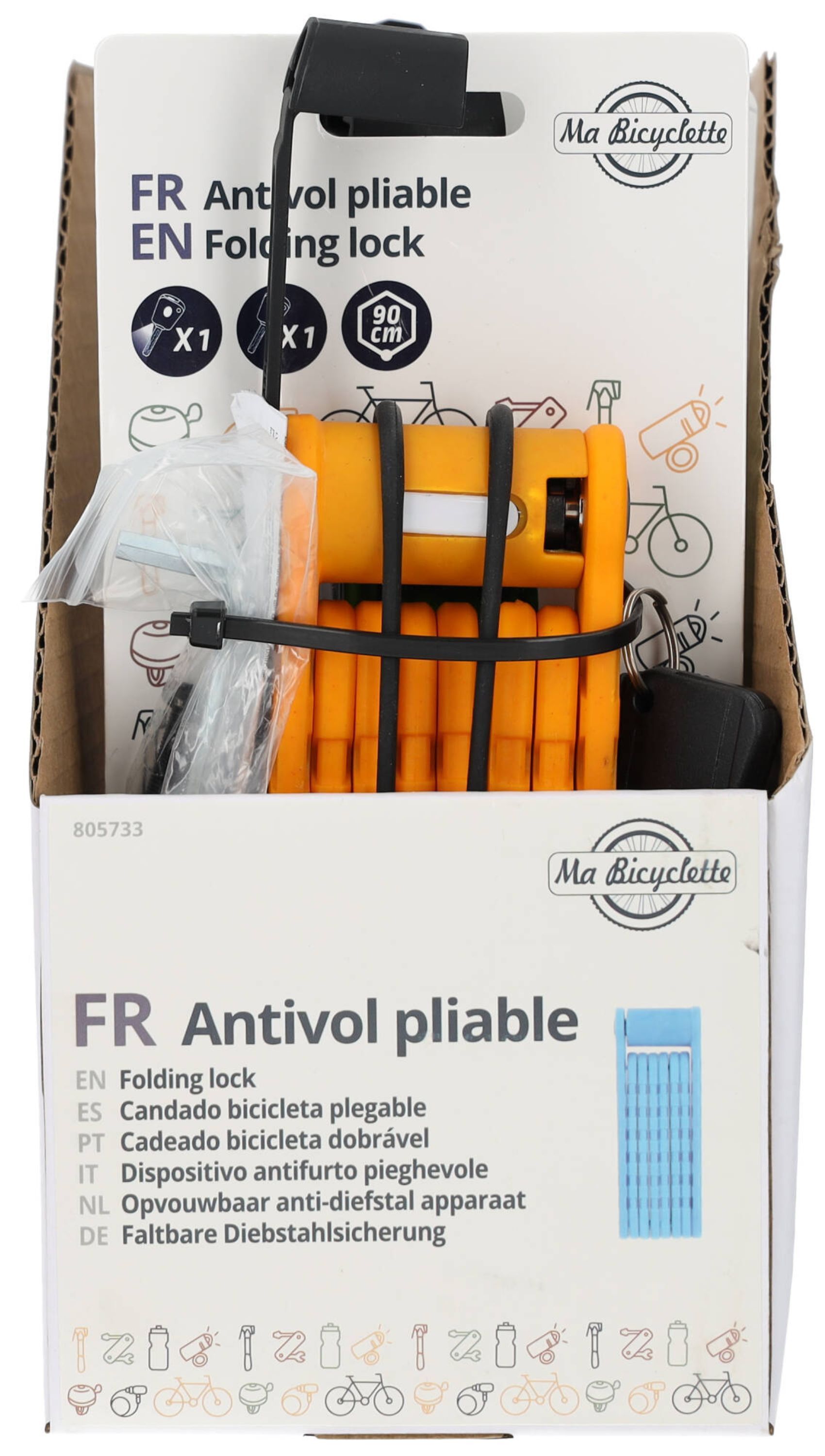 L'antivol pliant de la marque Ma Bicyclette est idéal pour sécuriser des vélos et autres équipements nécessitant une protection robuste.