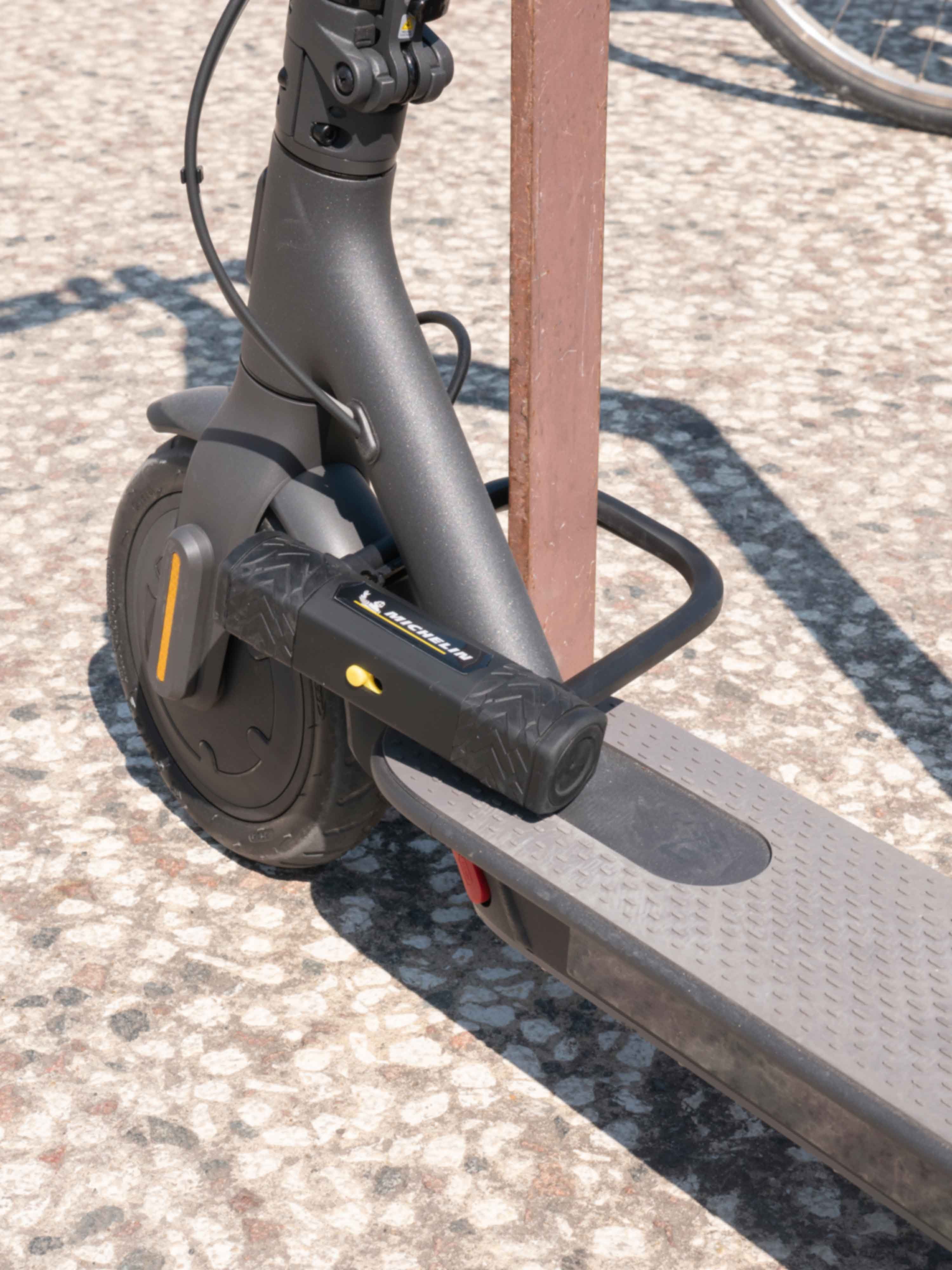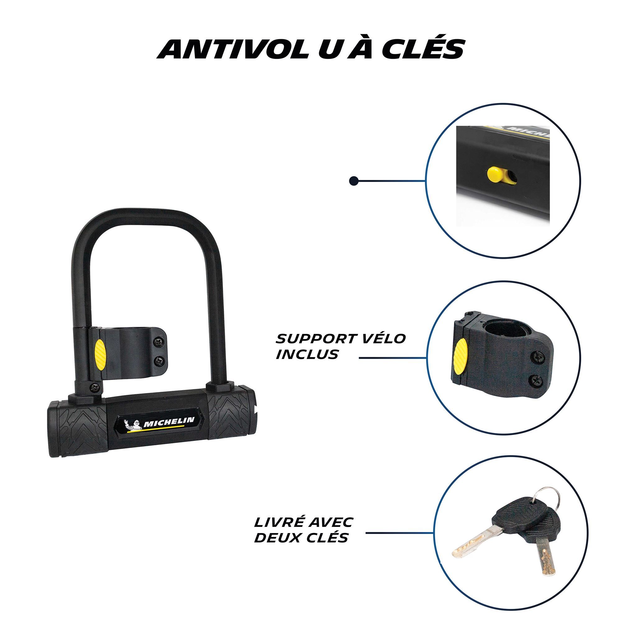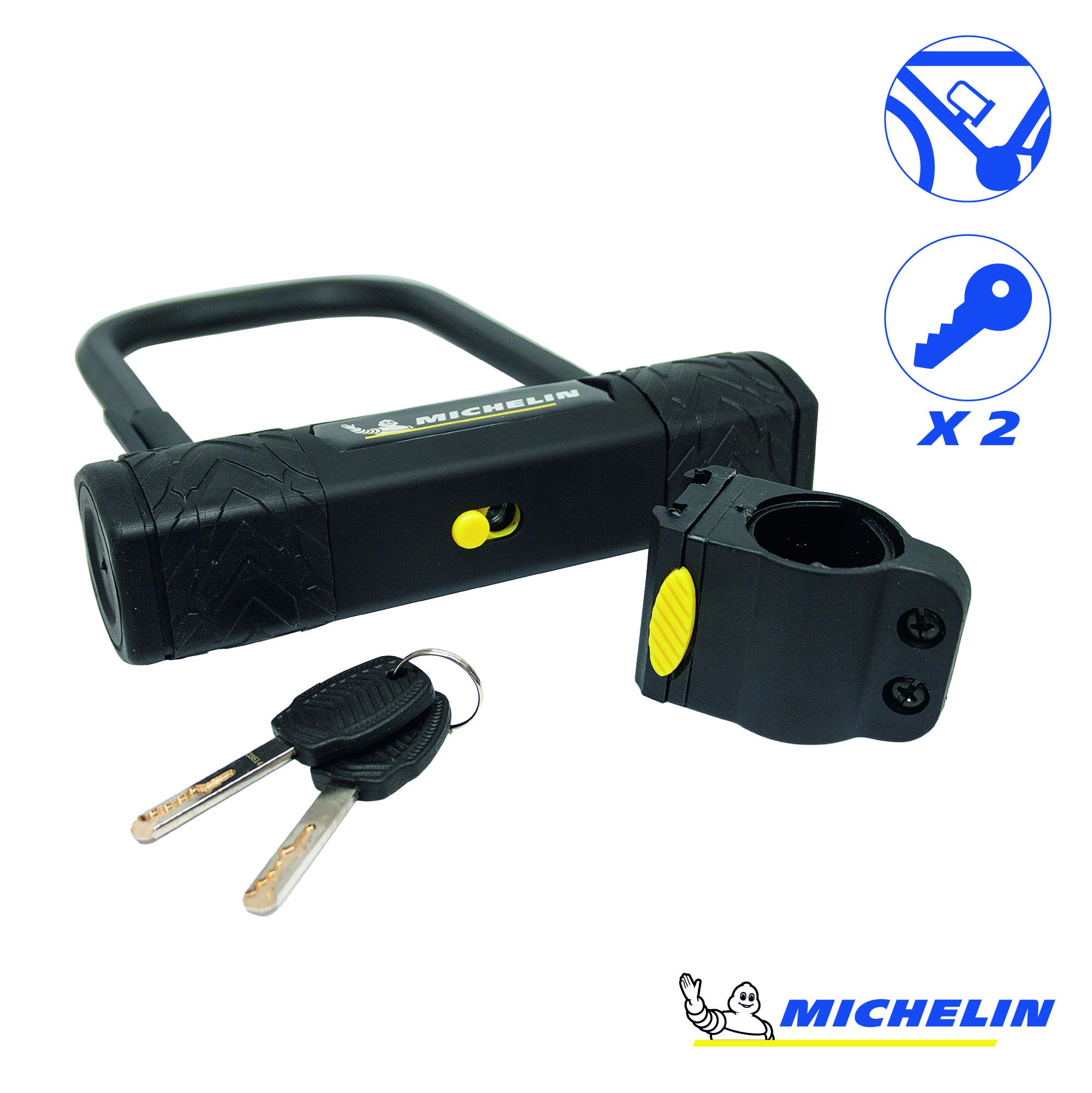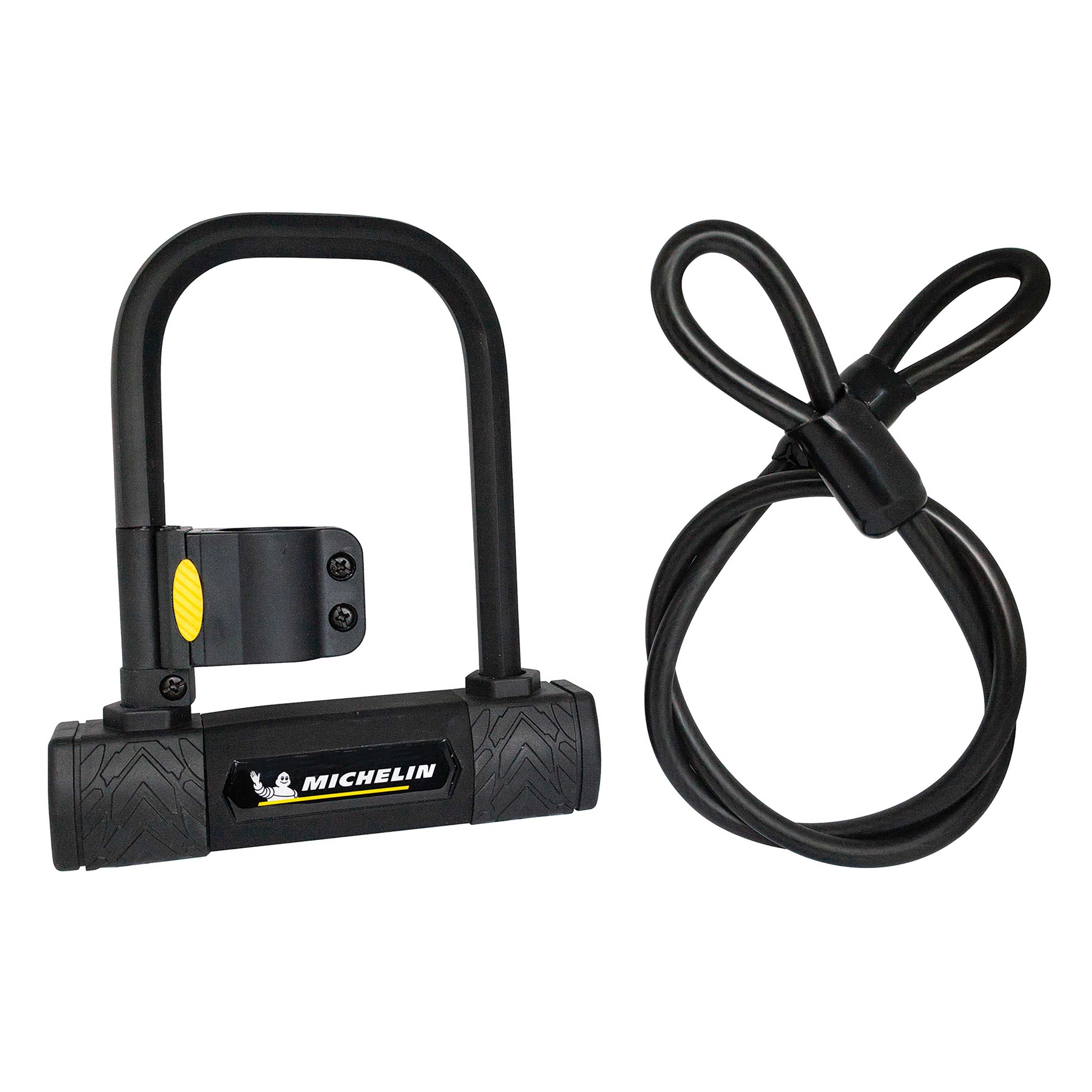 L'antivol U avec câble de la marque MICHELIN est l'accessoire idéal pour sécuriser son vélo ou sa trottinette pendant les déplacements urbains.