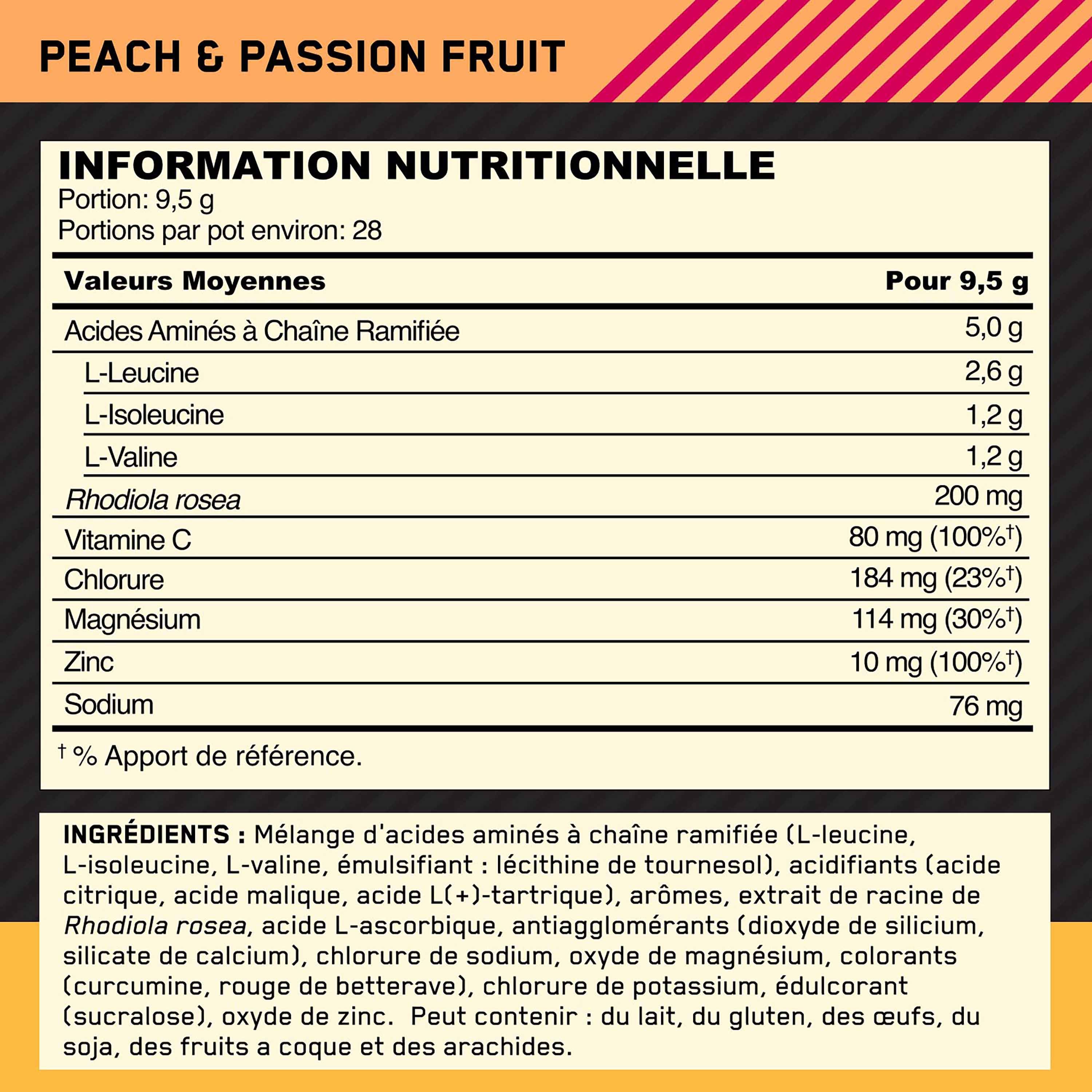 Gold Standard BCAA Train+Sustain 266g Pêche & Fruit de la Passion OPTIMUM NUTRIT
