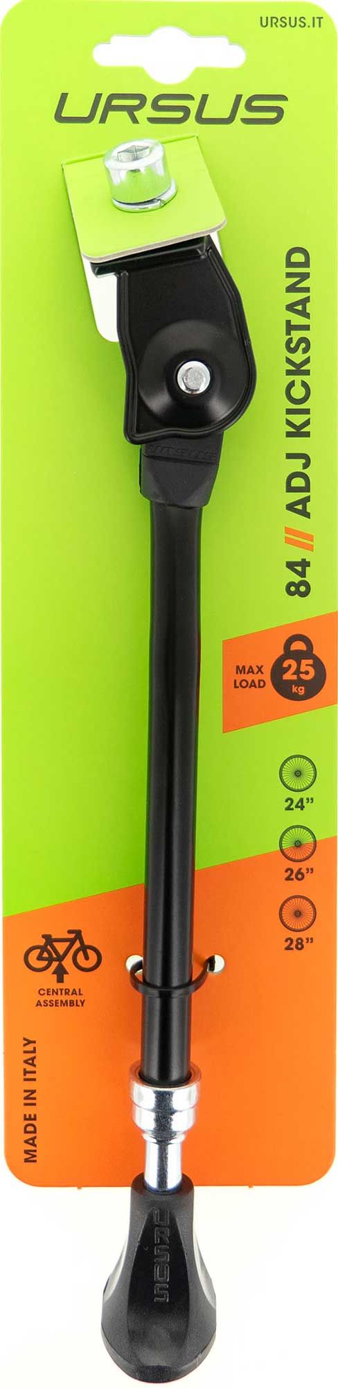 La béquille centrale Kickstand 84 noire de la marque URSUS, conçue en aluminium, est robuste et offre une parfaite stabilité. Elle supporte une charge maximale de 25kg.