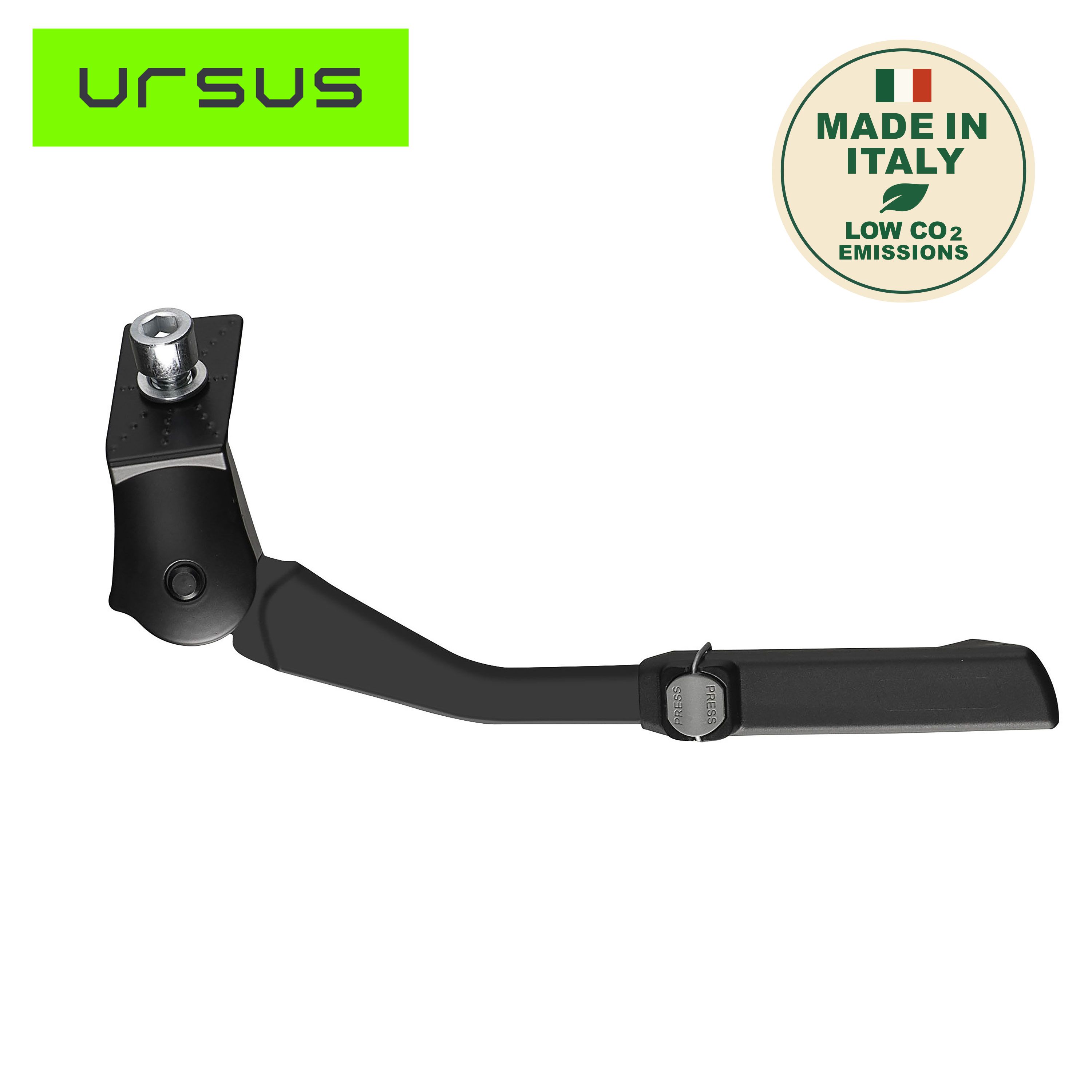 La béquille centrale EASY MINI de la marque URSUS se fixe sous le pédalier. Conçue en aluminium, elle supporte une charge jusqu'à 25 kg.