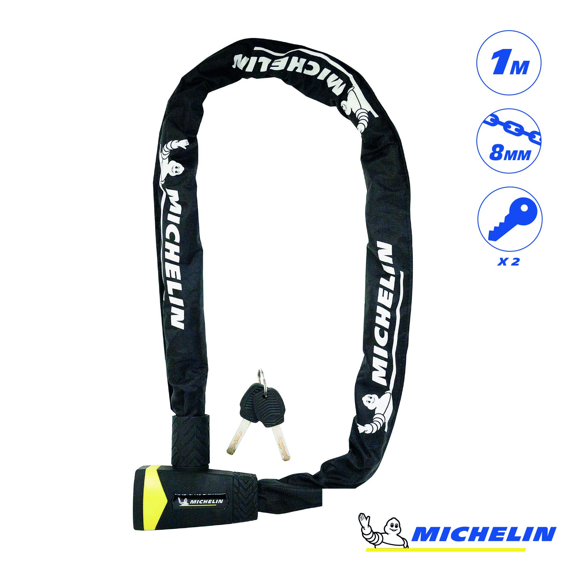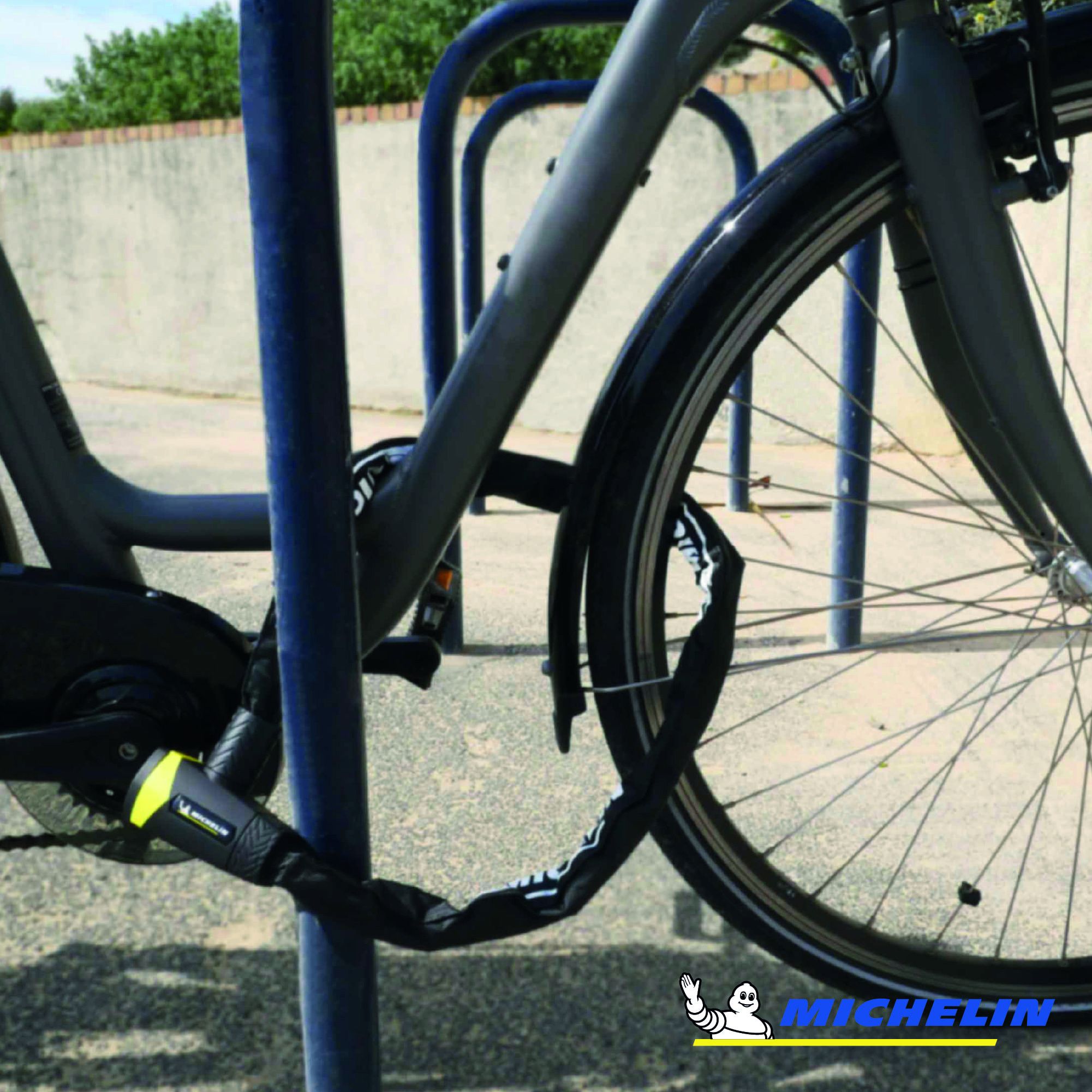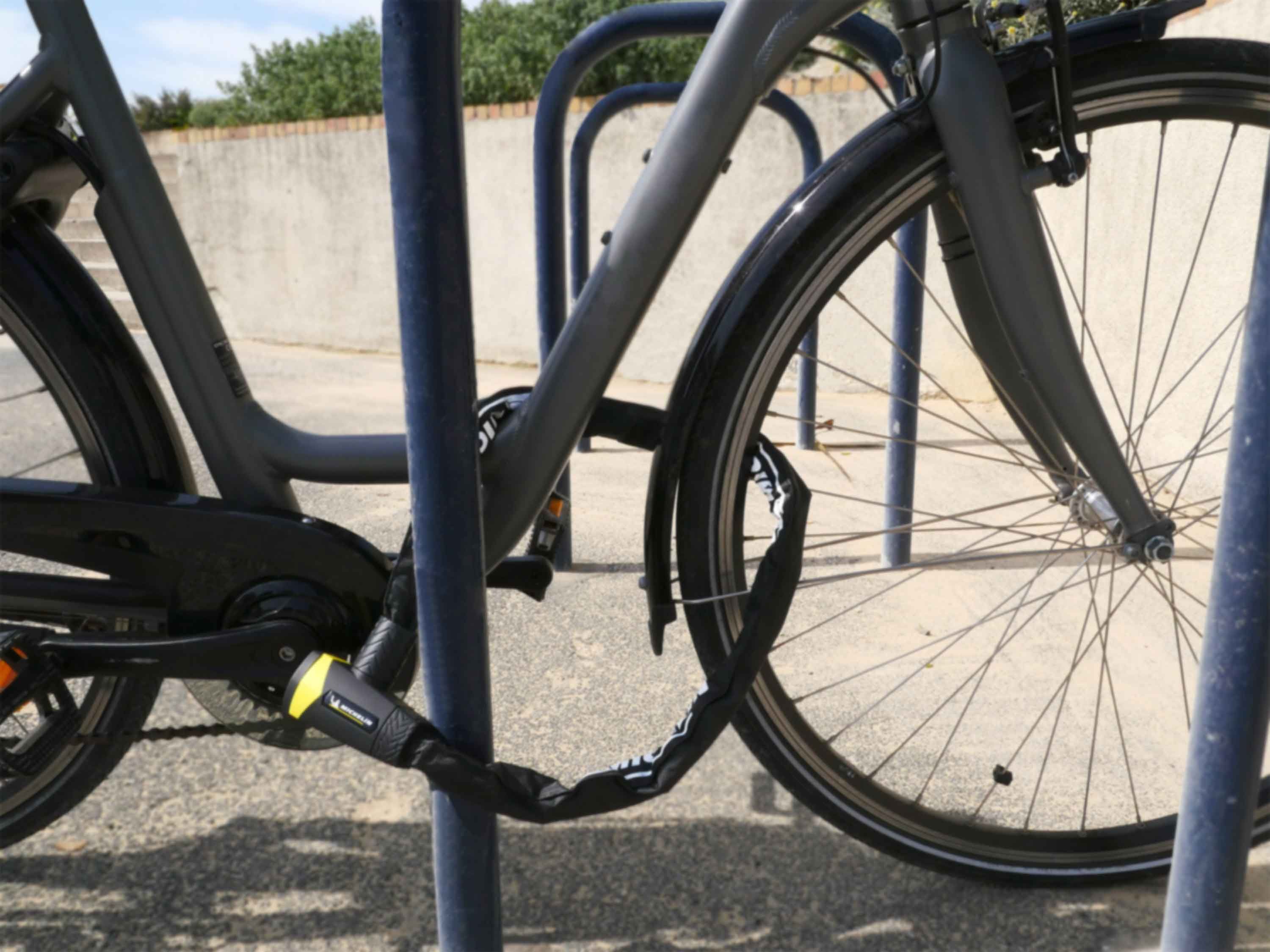 L'antivol chaîne de la marque MICHELIN a été conçu pour résister aux tentatives de crochetage et de perçage lors d'arrêts de moyenne ou longue durée. Il permet d'attacher son vélo à des points fixes de formes diverses.