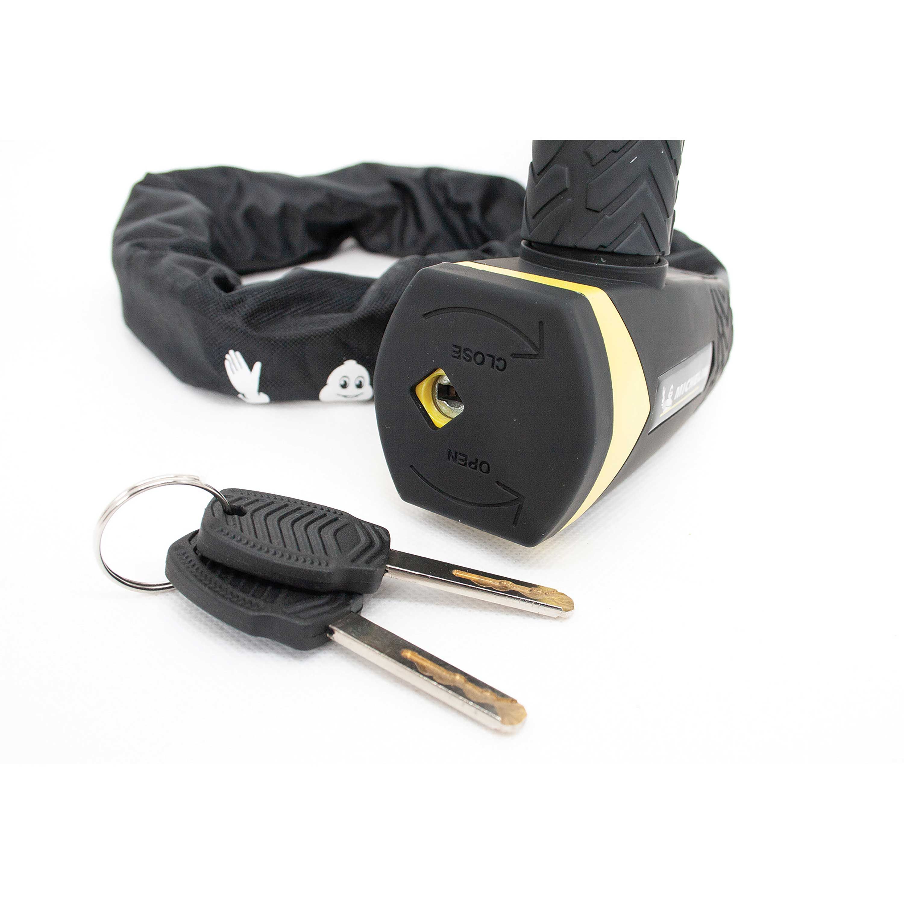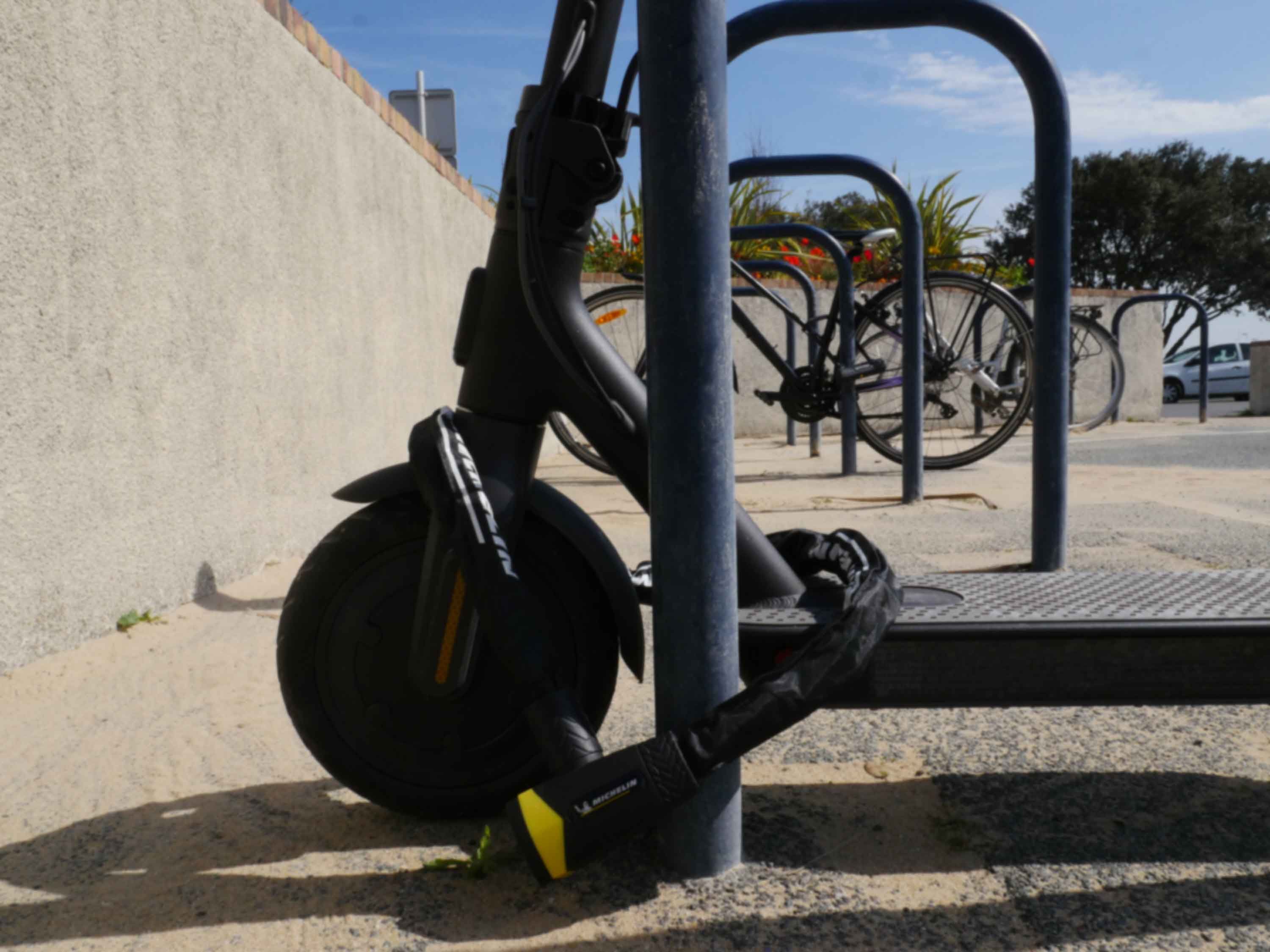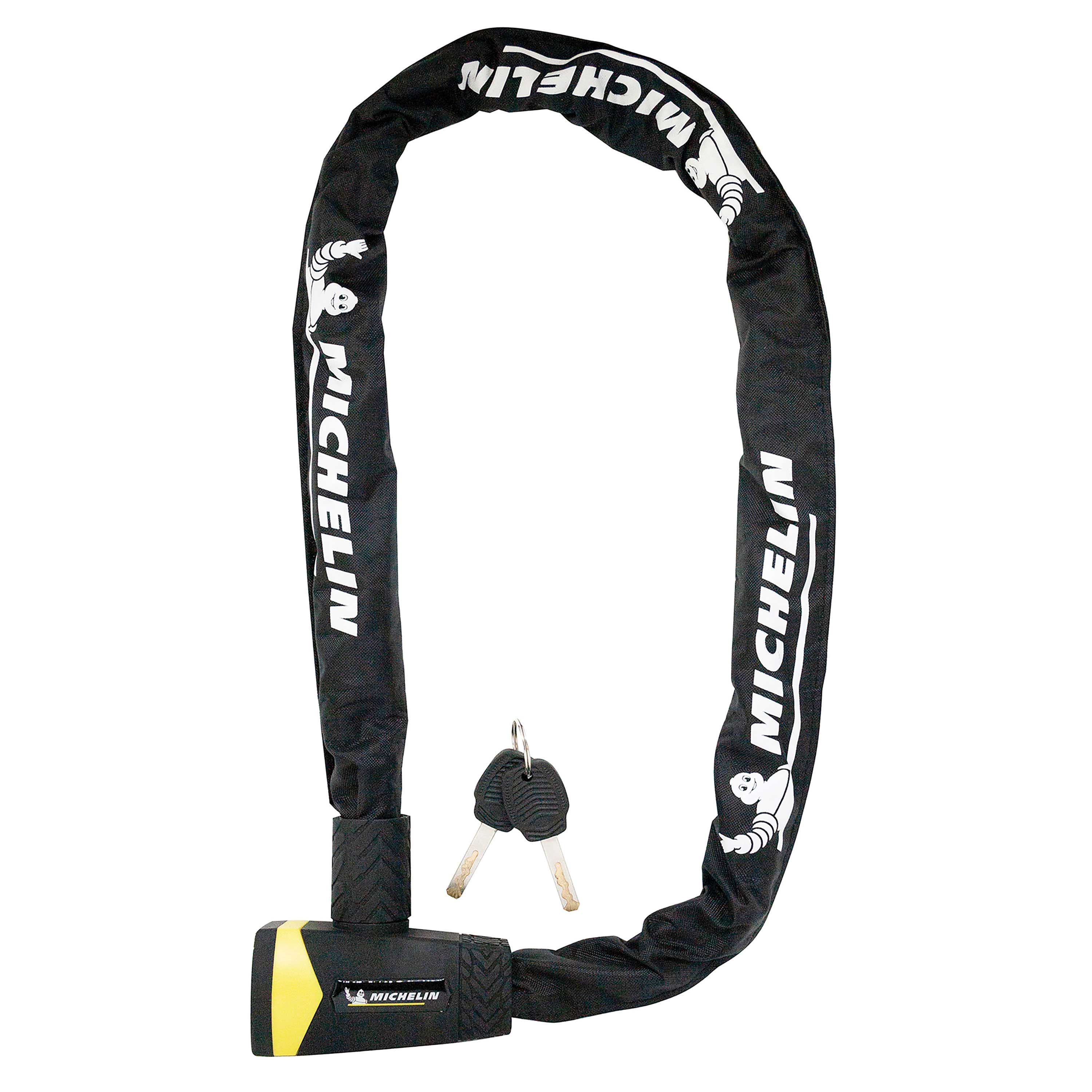 L'antivol chaîne de la marque MICHELIN a été conçu pour résister aux tentatives de crochetage et de perçage lors d'arrêts de moyenne ou longue durée. Il permet d'attacher son vélo à des points fixes de formes diverses.