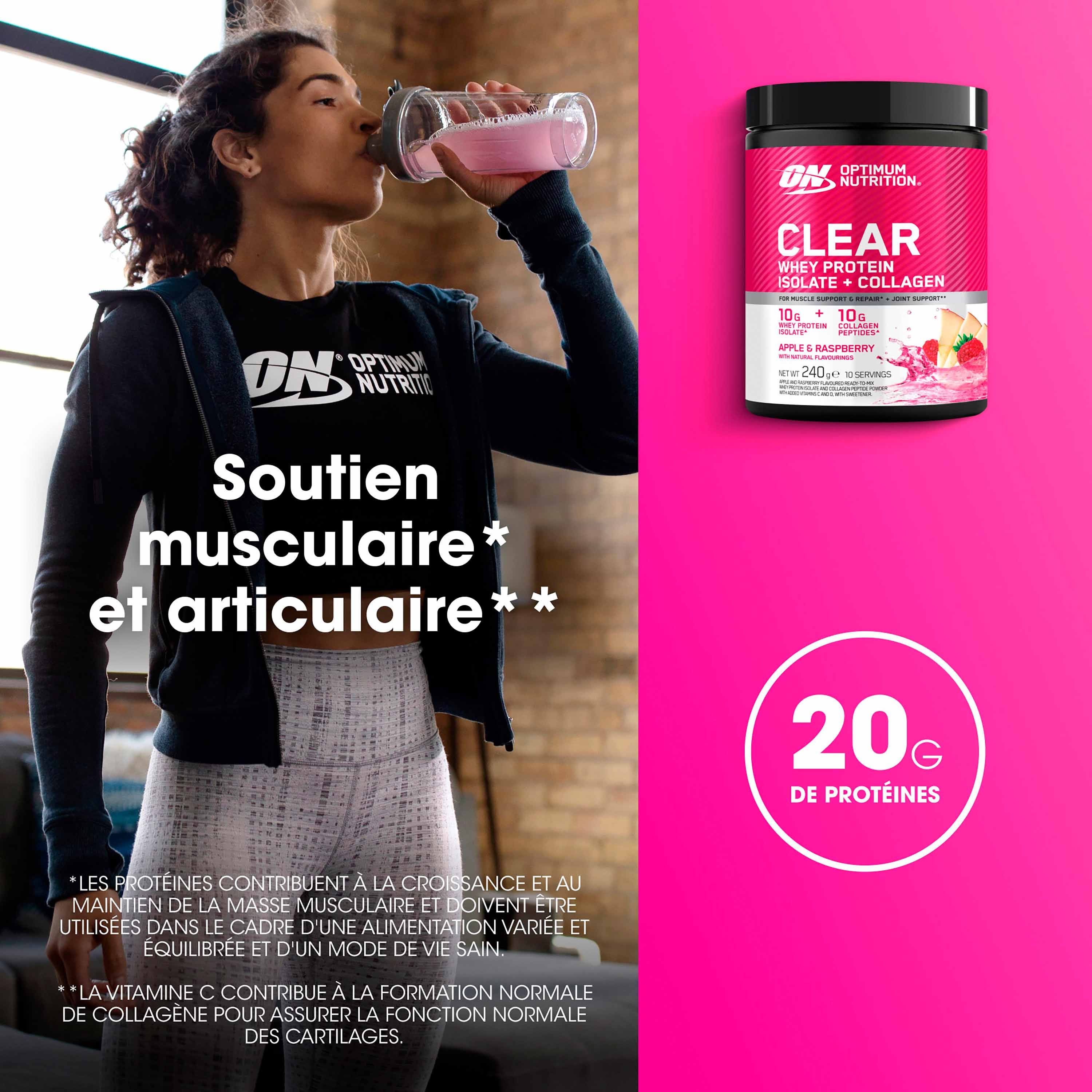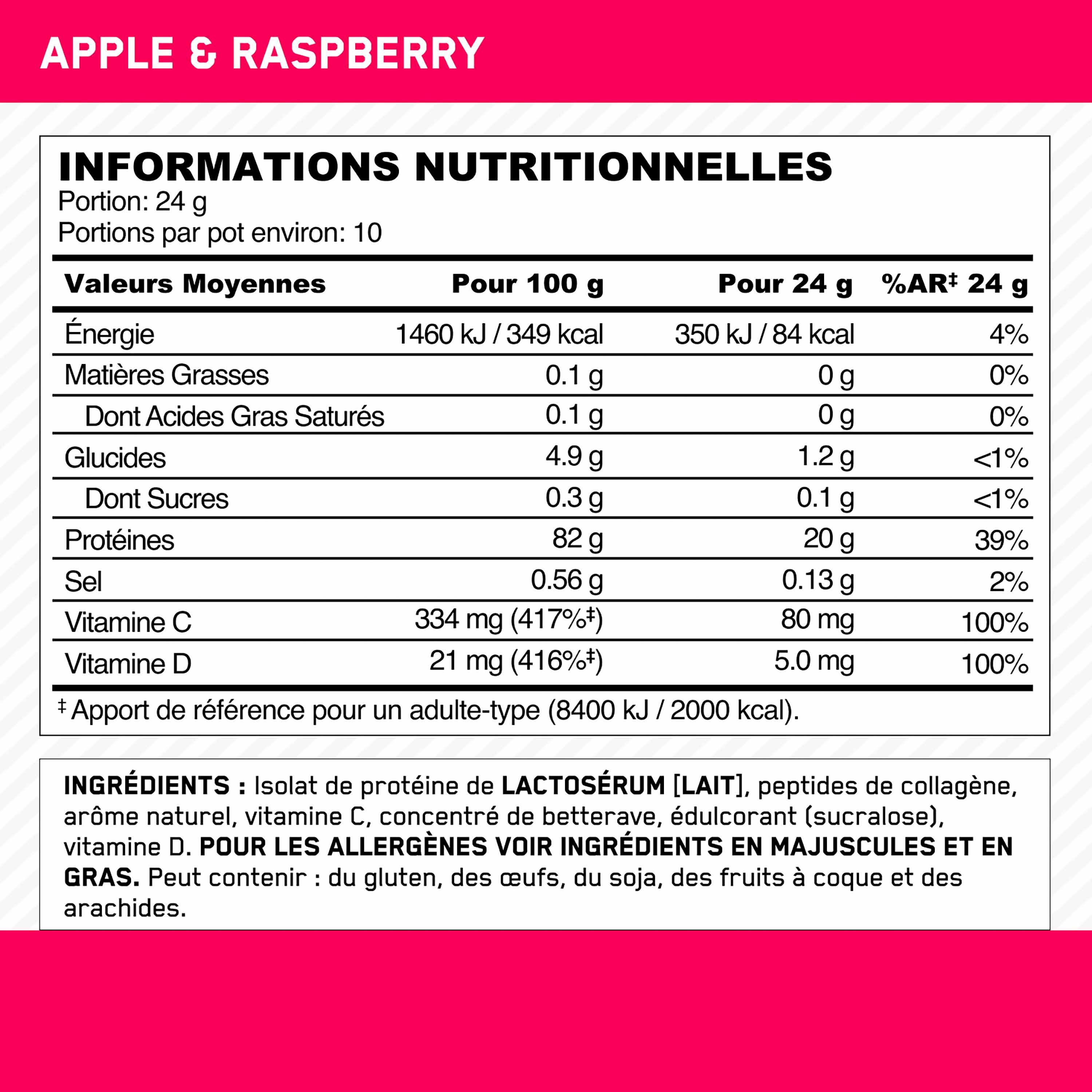 Protéine Clear Whey Isolat + Collagène 240g Pomme Framboise OPTIMUM NUTRITION