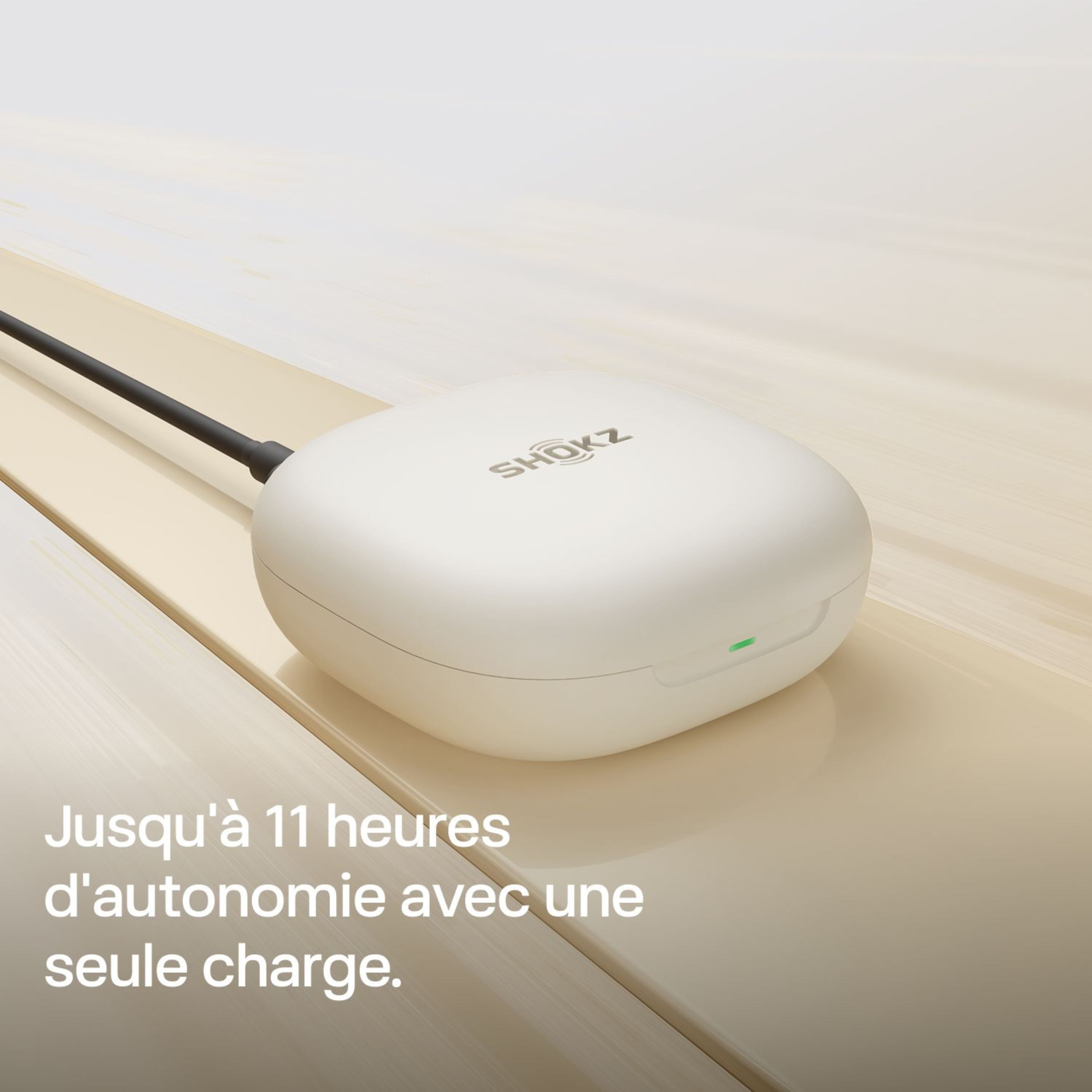 Profitez d’une autonomie de 11 heures pour écouter de la musique ou pour passer vos appels via Bluetooth. Le microphone des écouteurs OPENFIT est doté d'une technologie avancée d’atténuation du bruit.