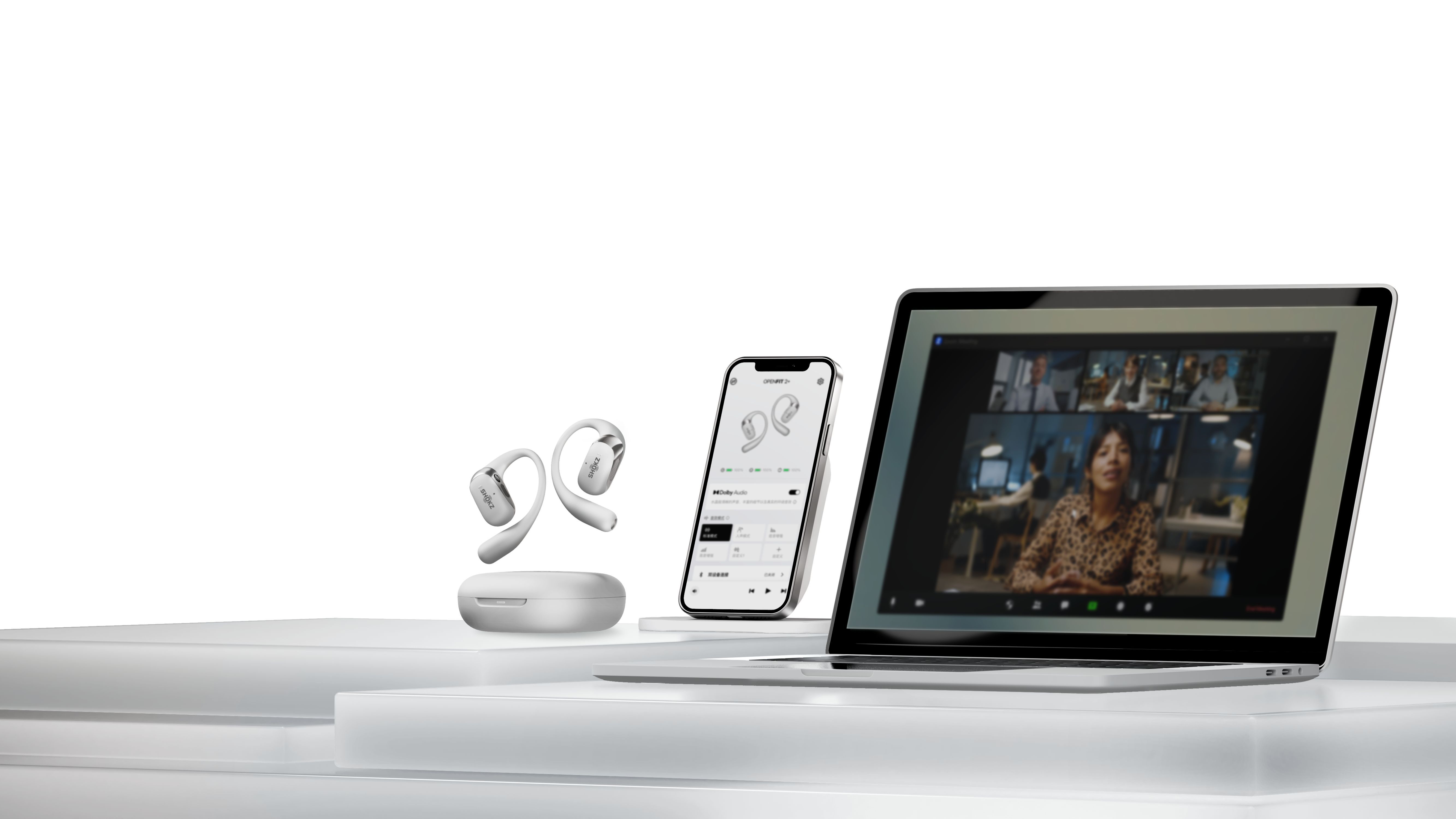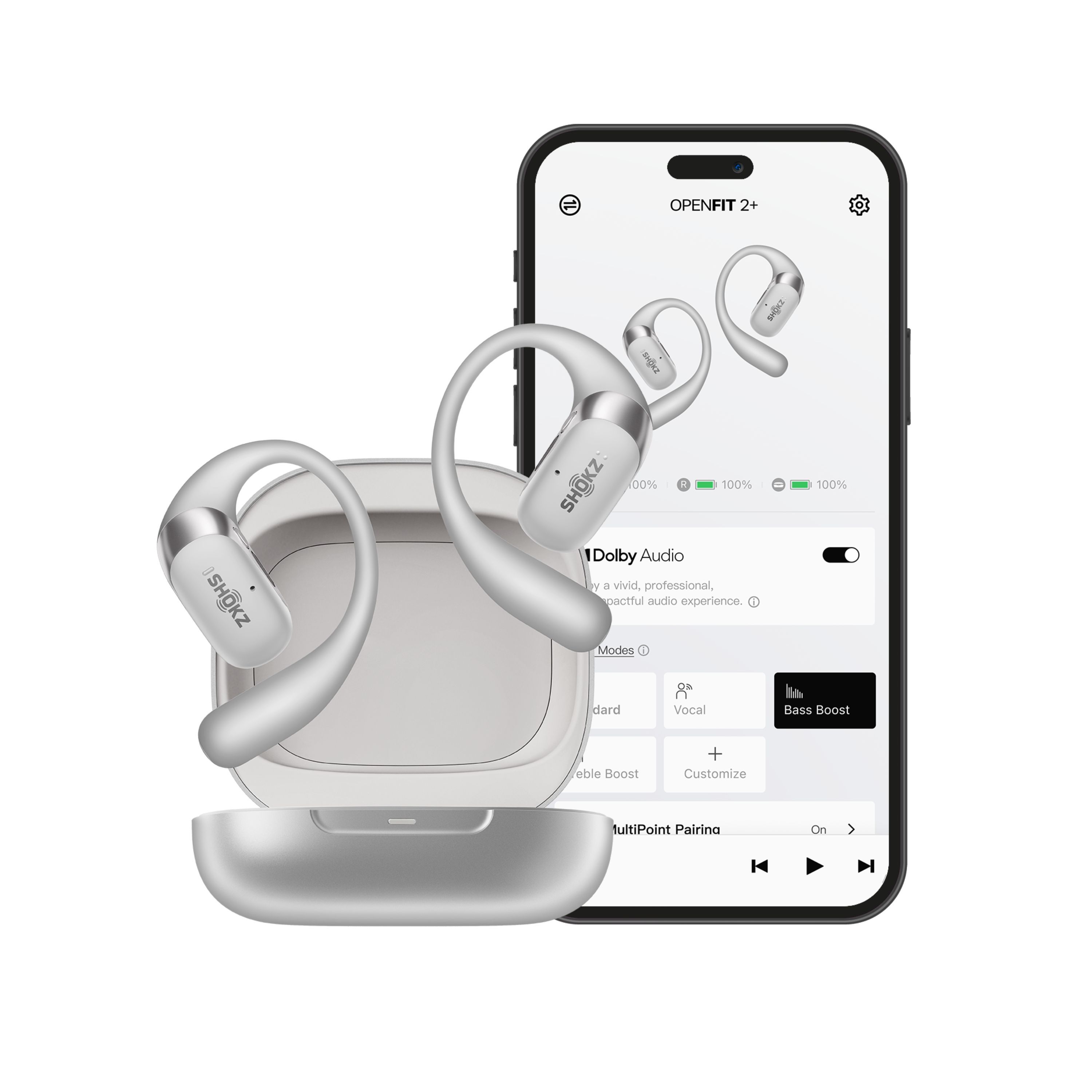 L’openFit 2+ intègre la toute dernière technologie DualBoost de Shokz ainsi que le son Dolby, offrant une expérience d’écoute à oreilles libres riche, dynamique et immersive.