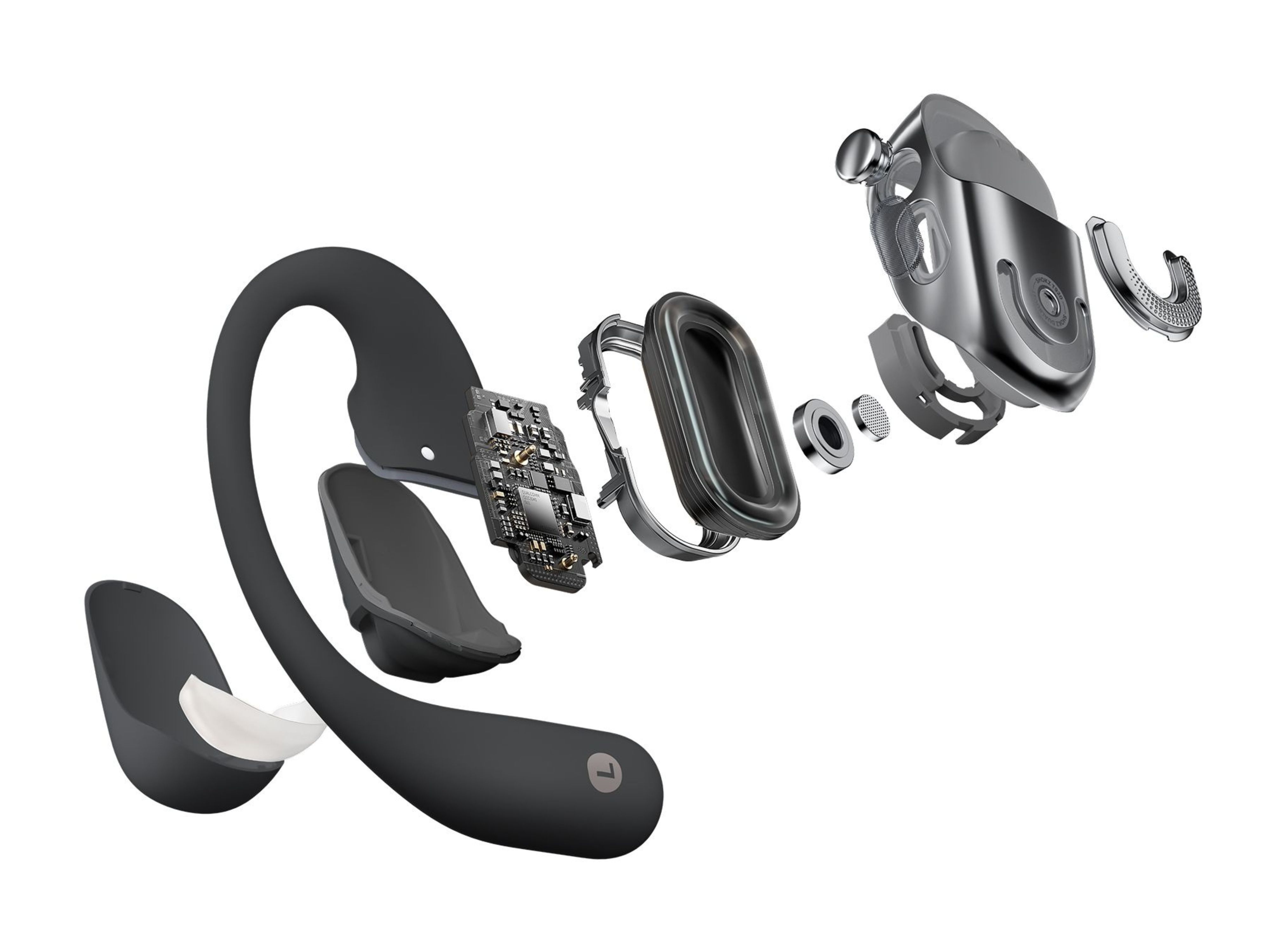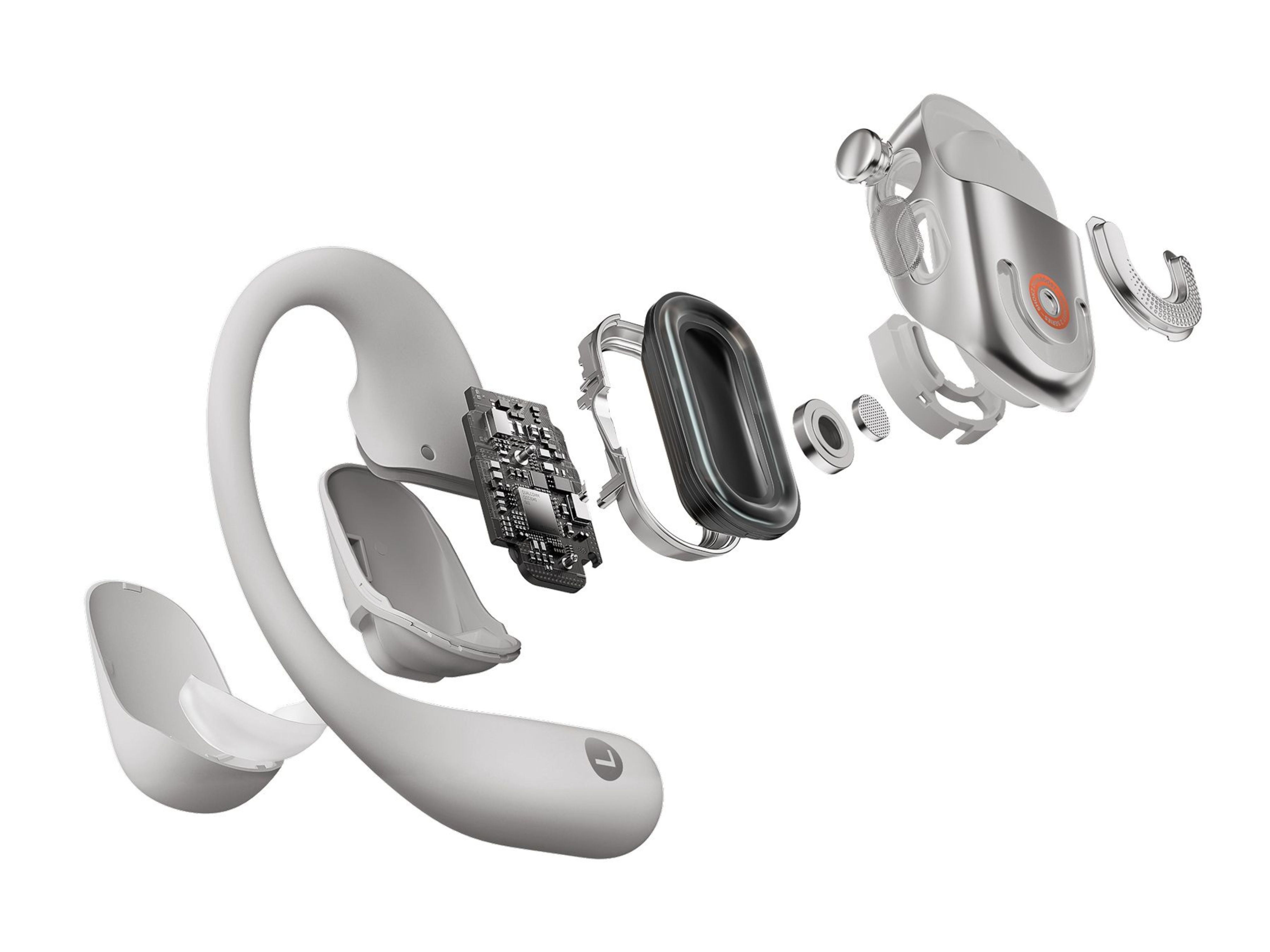 Optimisant le design et le matériau des écouteurs libres, l'OPENFIT 2+ est compact et léger, ne pesant que 9,4 grammes. Les écouteurs et le compartiment de la batterie offrent un équilibre parfait qui fait oublier qu'on les porte.