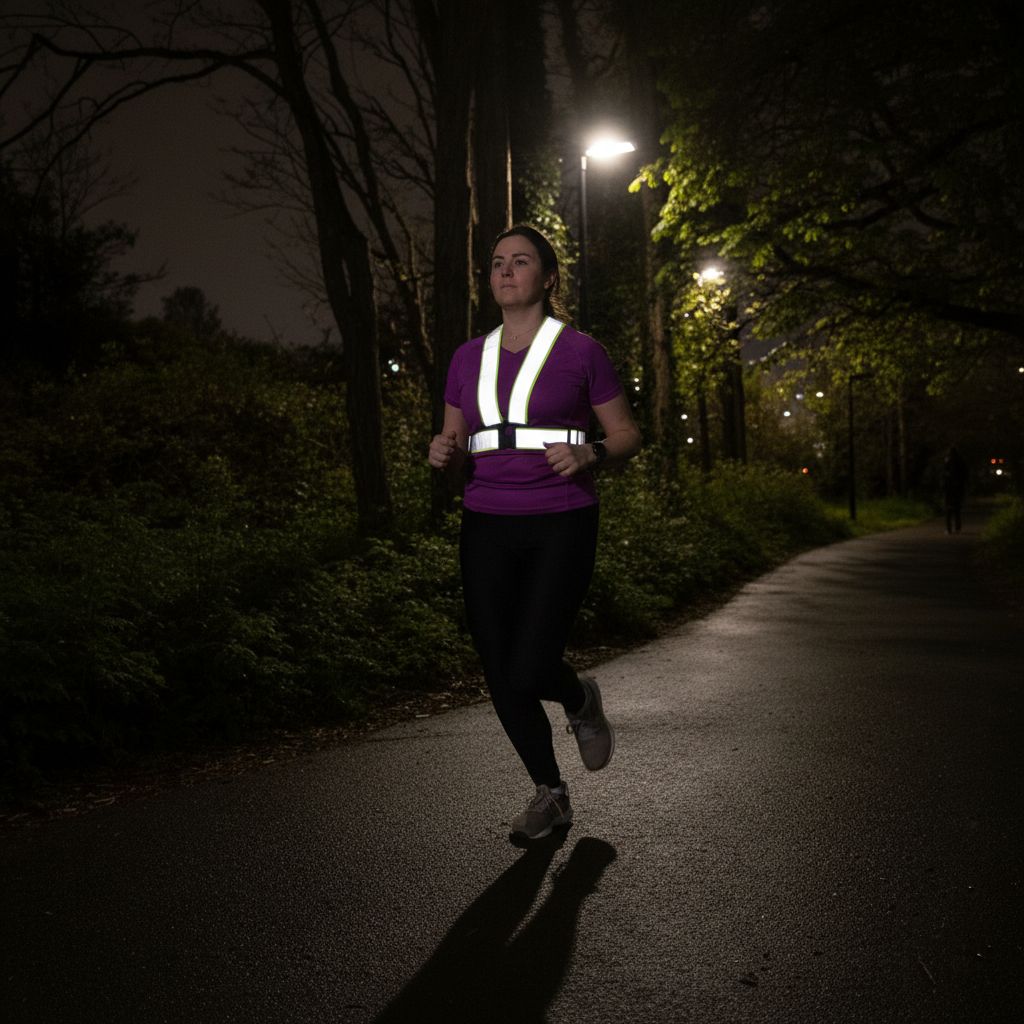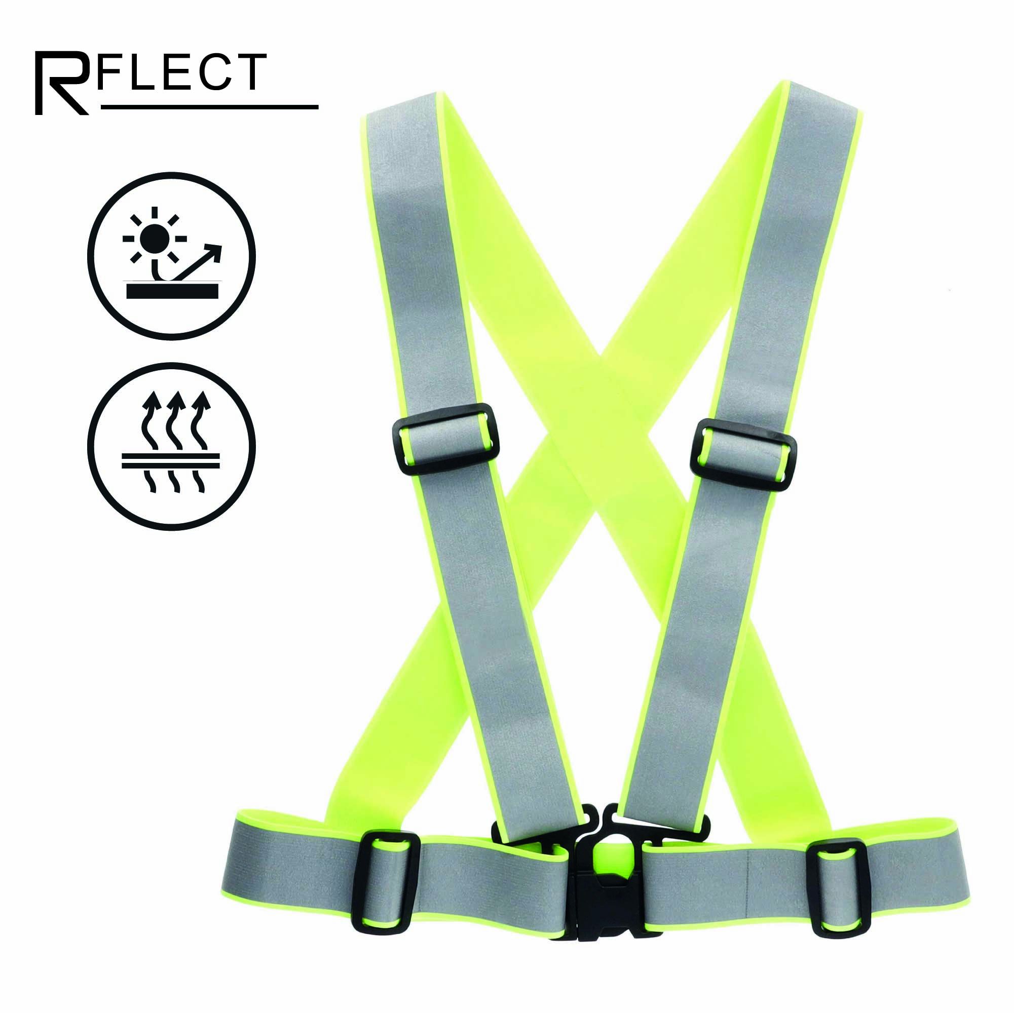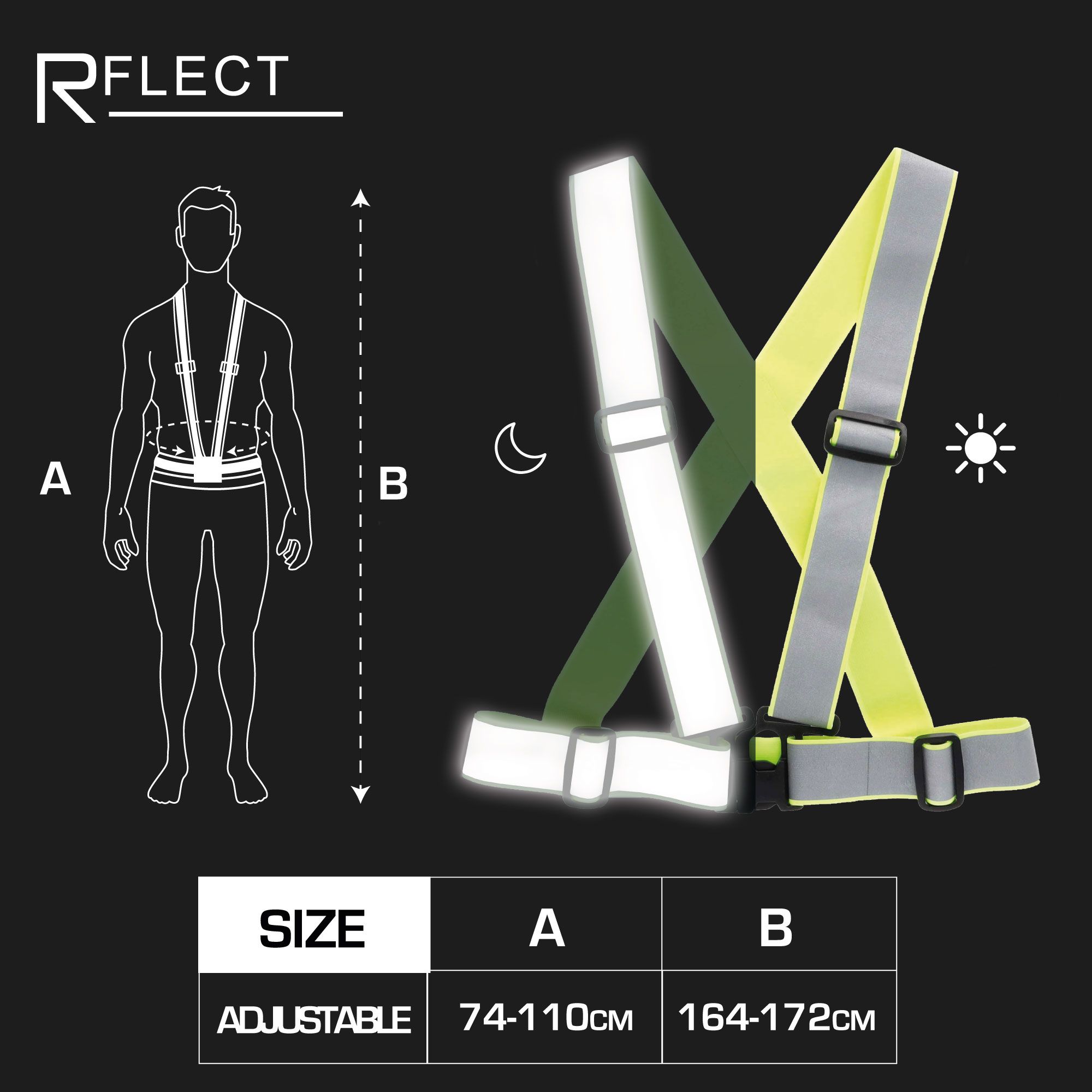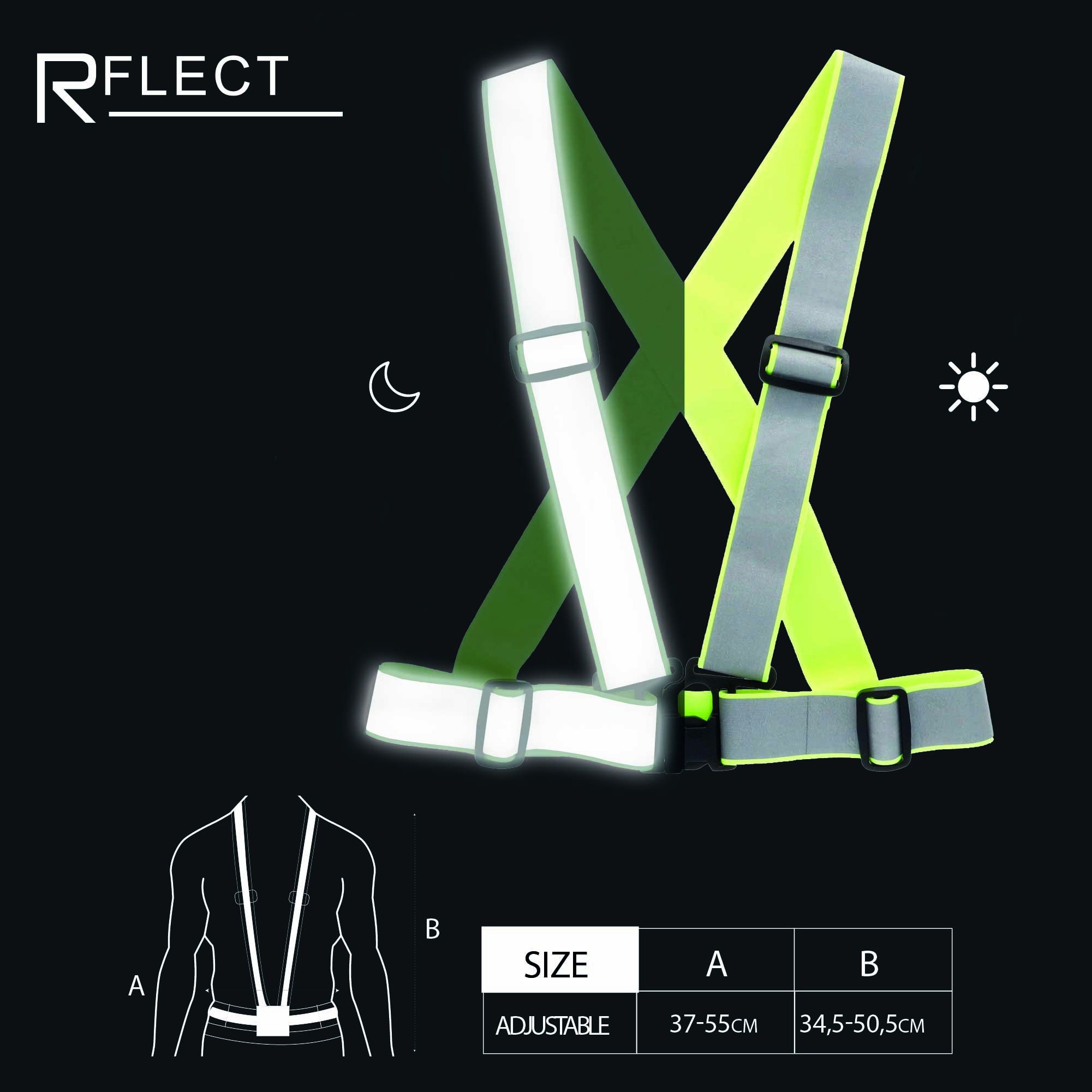 Le harnais Néo Viz de la marque R FLECT est conçu en tissu fluorescent avec des bandes réfléchissantes afin de maximiser la visibilité des coureurs lors de leurs déplacements nocturnes.