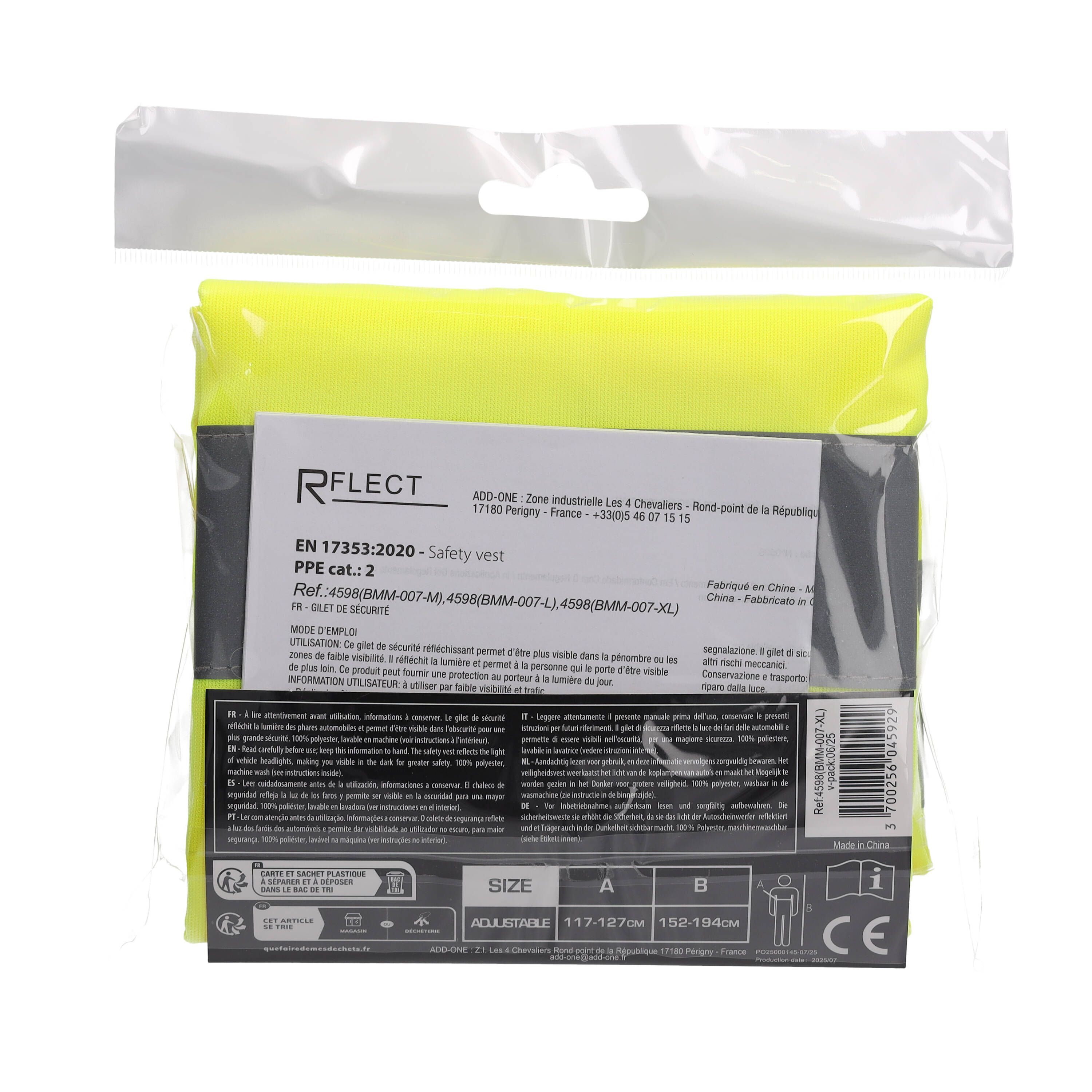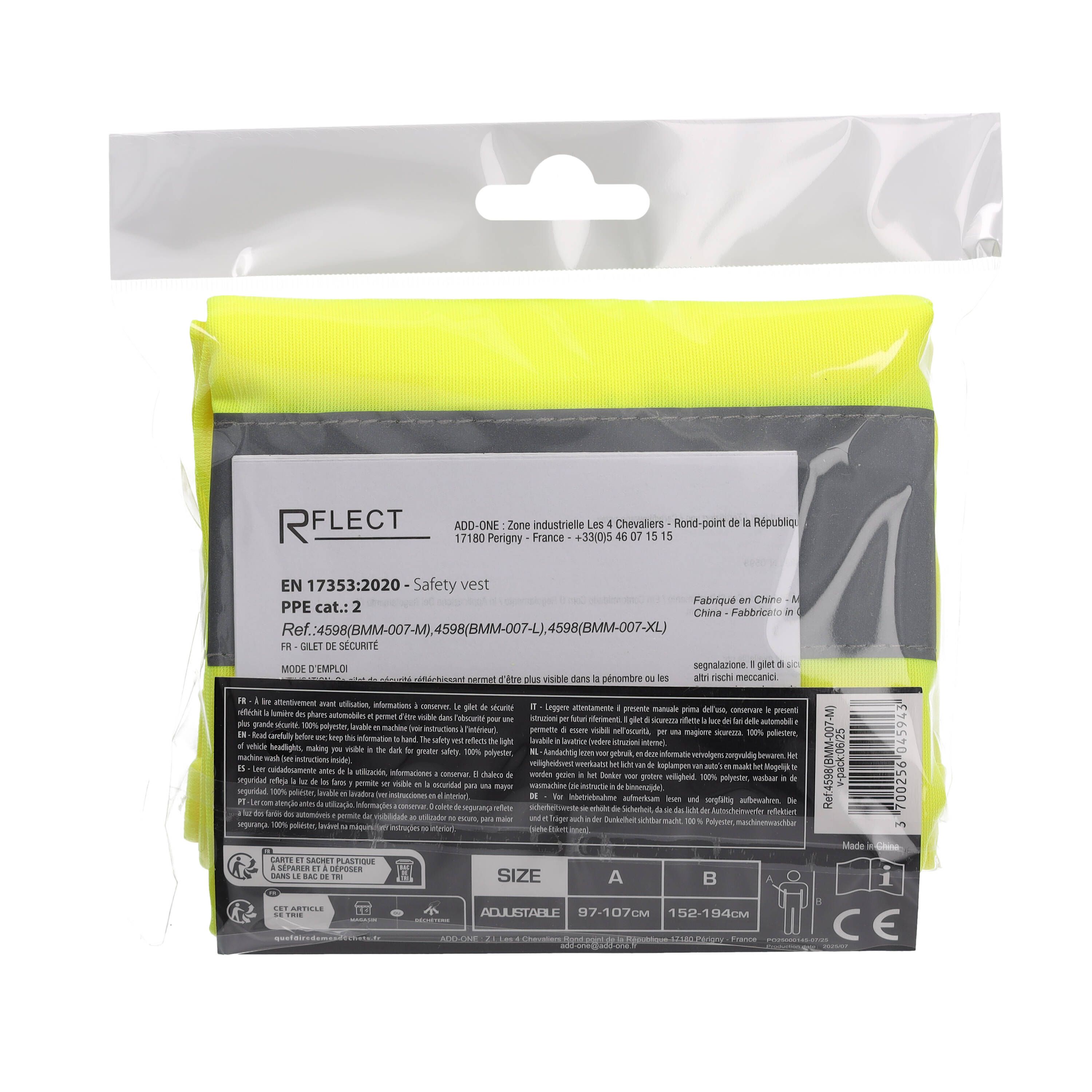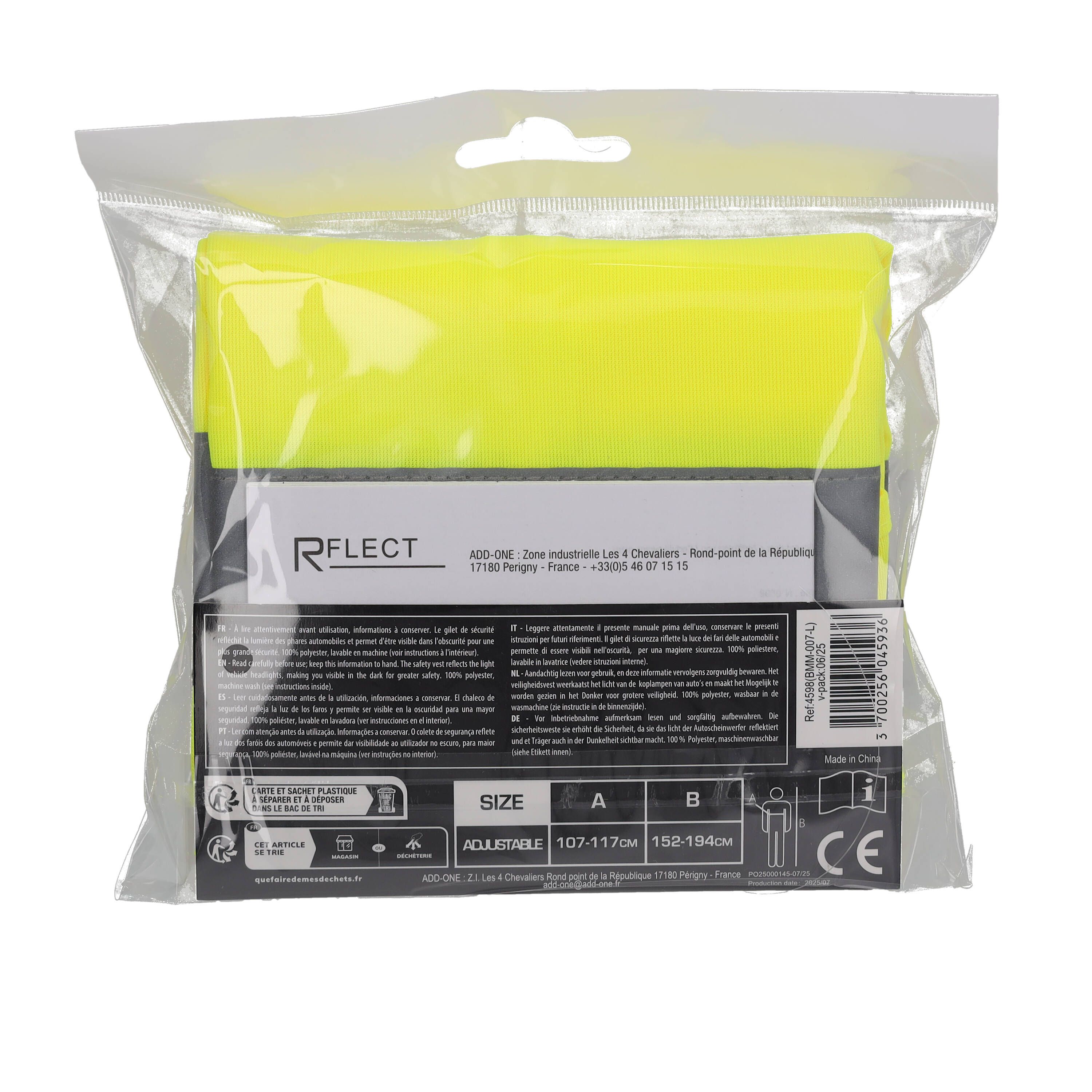 Caractéristiques du gilet de sécurité adulte R FLECT: