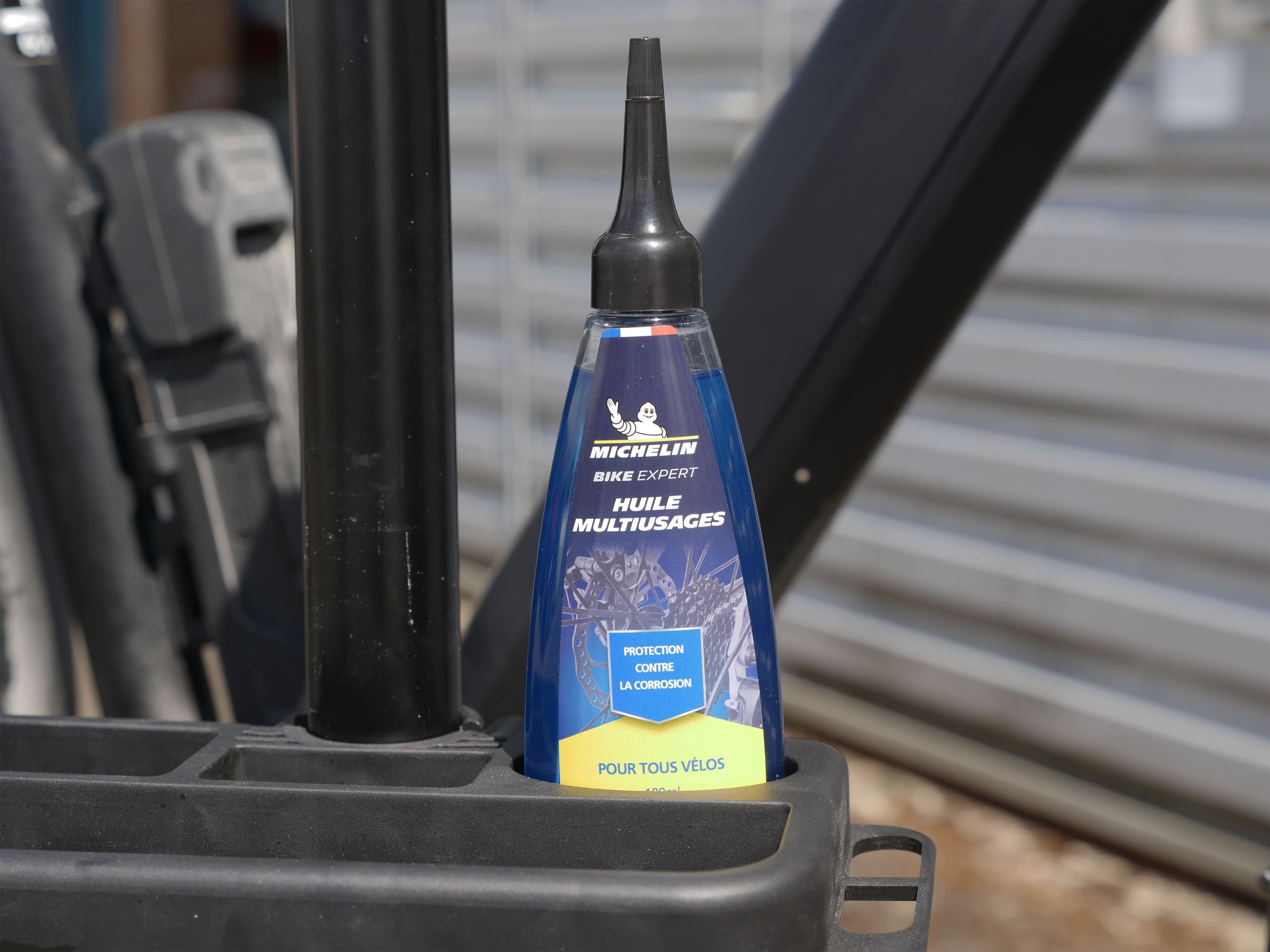 L'huile multiusages de la marque MICHELIN est une huile conçue pour protéger les pièces mécaniques du vélo de la corrosion.