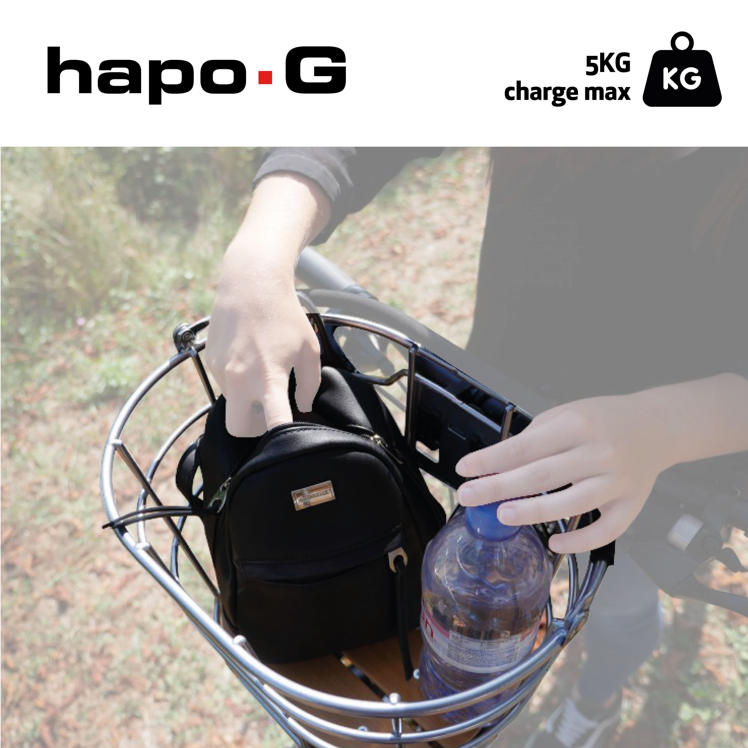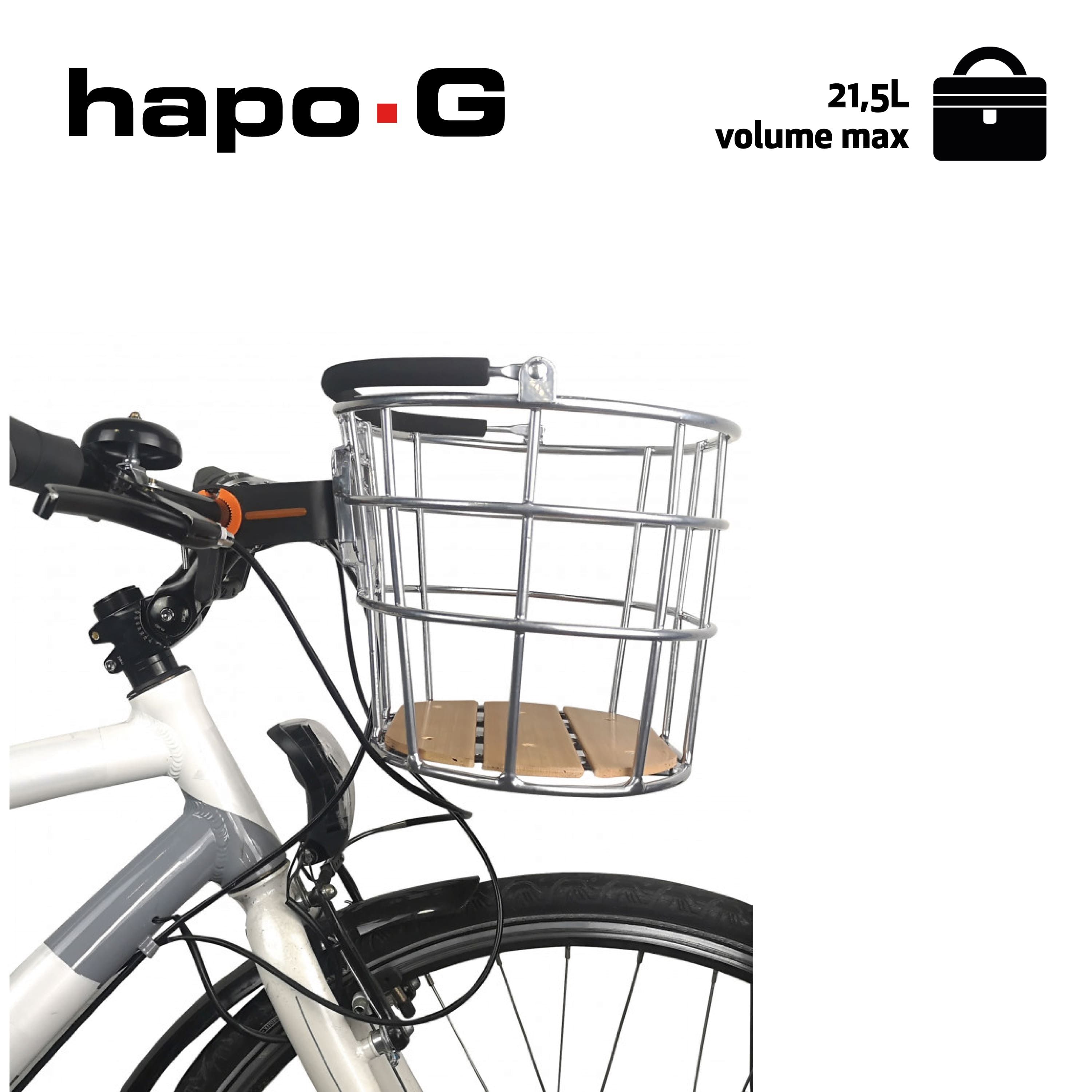 Ce panier avant pour vélo de la marque HAPO G est ultra léger grâce à sa structure 100% aluminium. Il permet le transport d'un volume important, jusqu'à 21,5 litres et supporte une charge jusqu'à 5 kg.