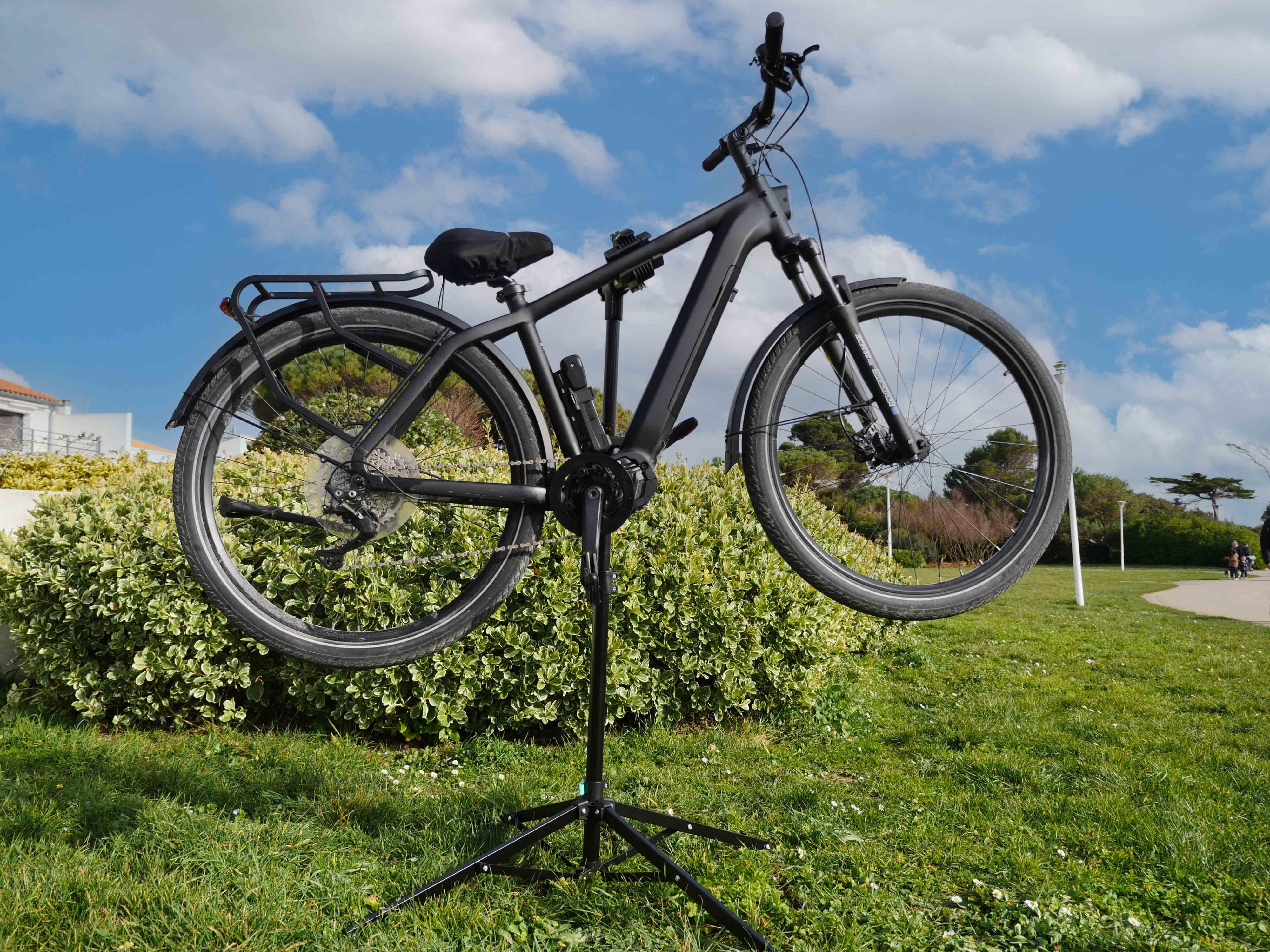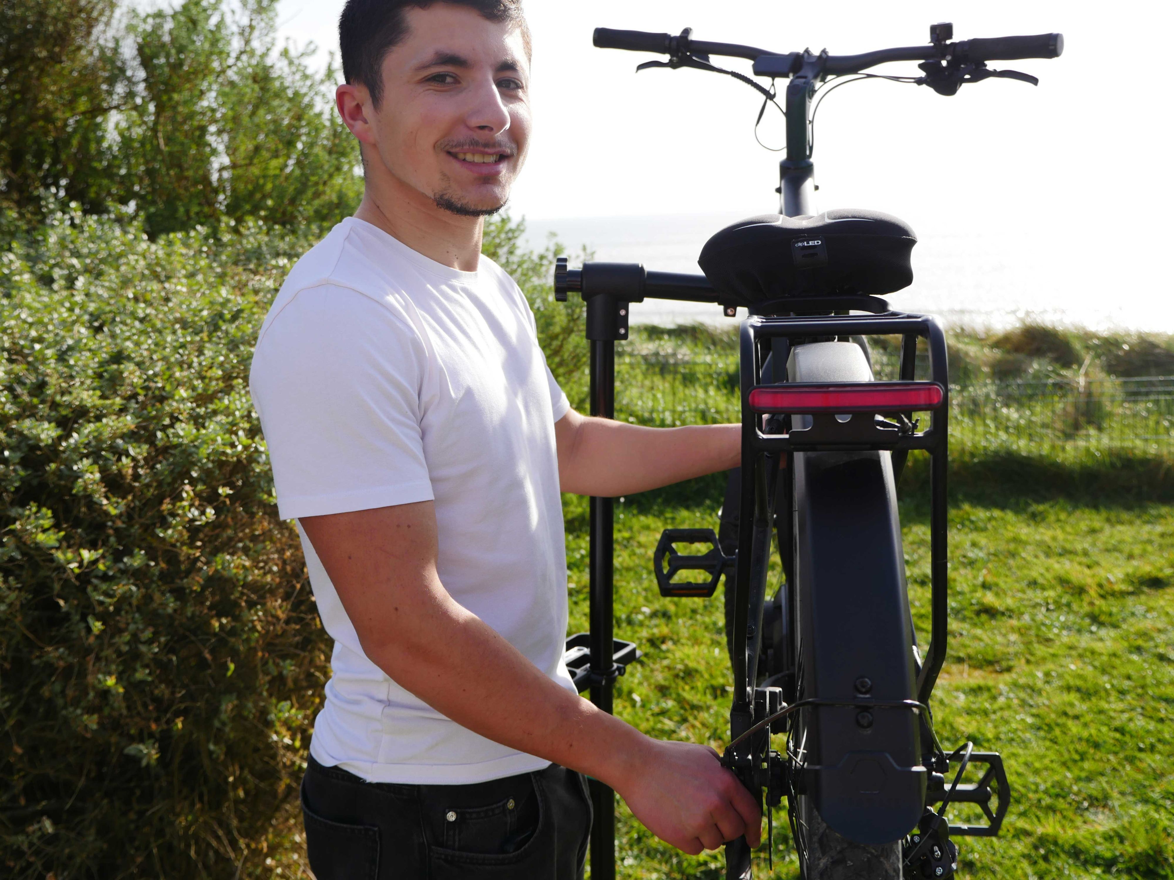 Profitez d'un pied stable pour vos vélos jusqu'à 30 KG, simple à utiliser avec sa pince qui tourne à 360°.