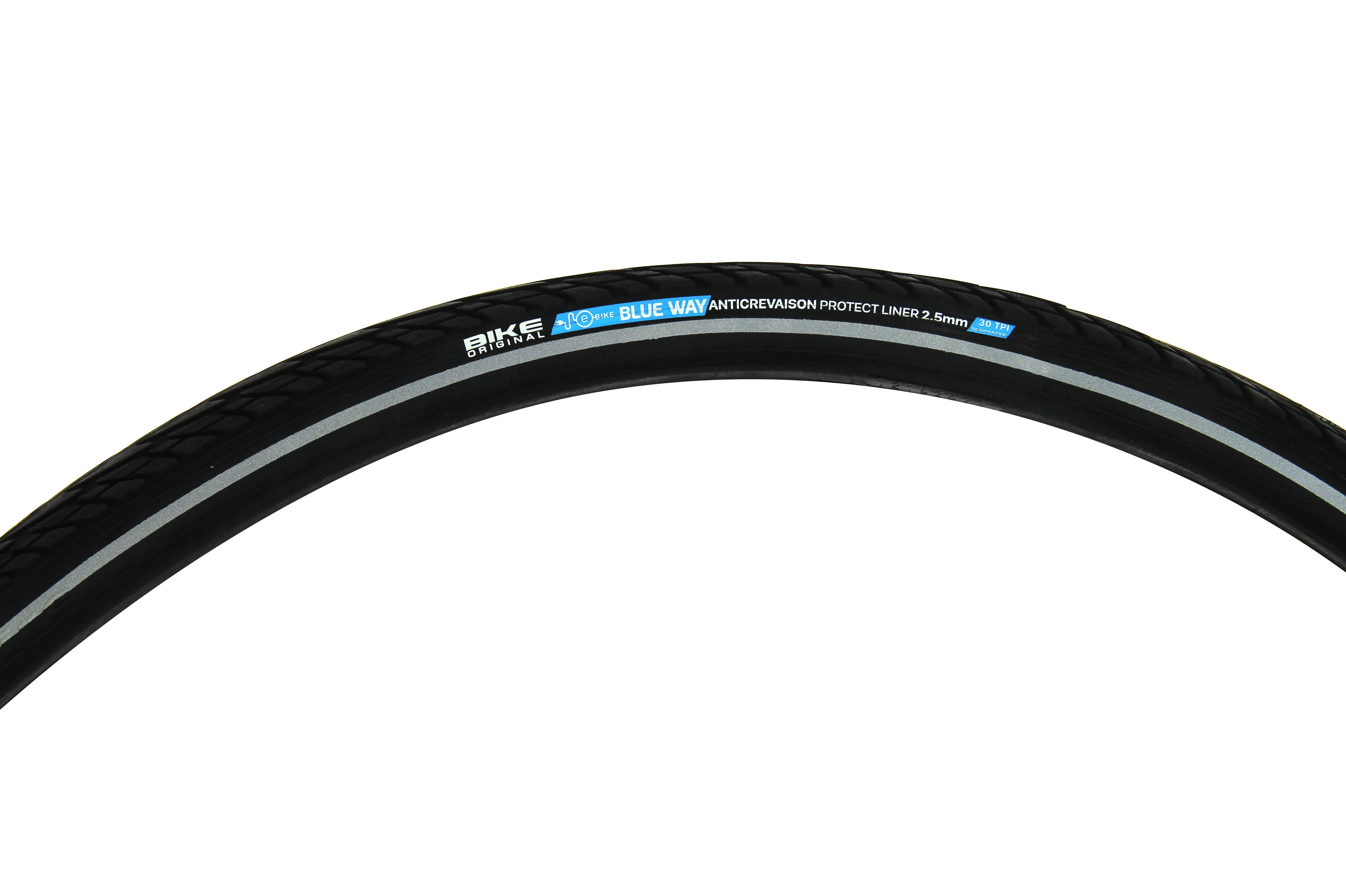 Pneu City rigide 700X35C blueway aux flancs renforcés 30TPI anti-crevaison 2,5mm et bandes réflectives