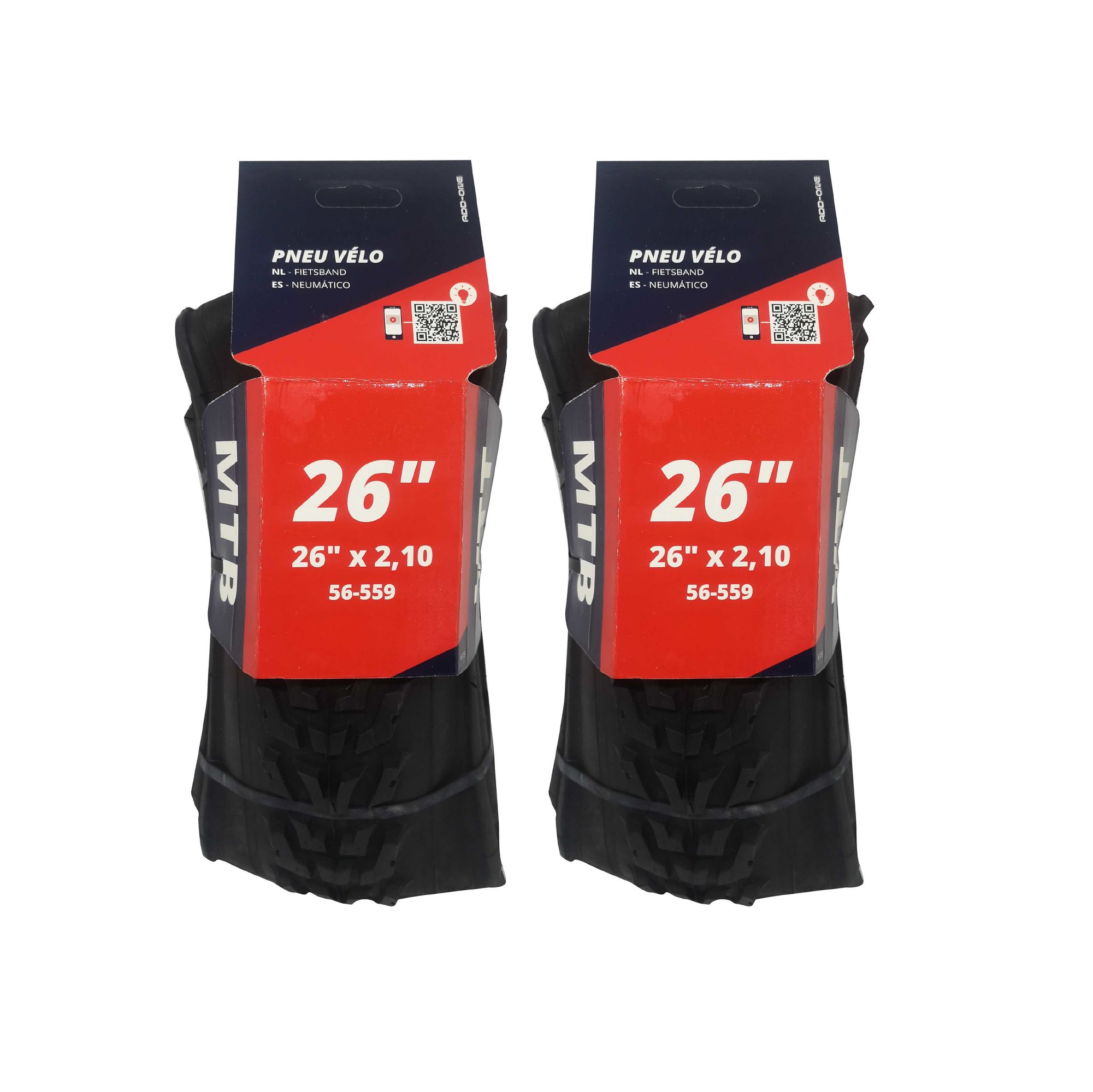 Lot de deux Pneus VTT 26X2.10 noir tringles souples