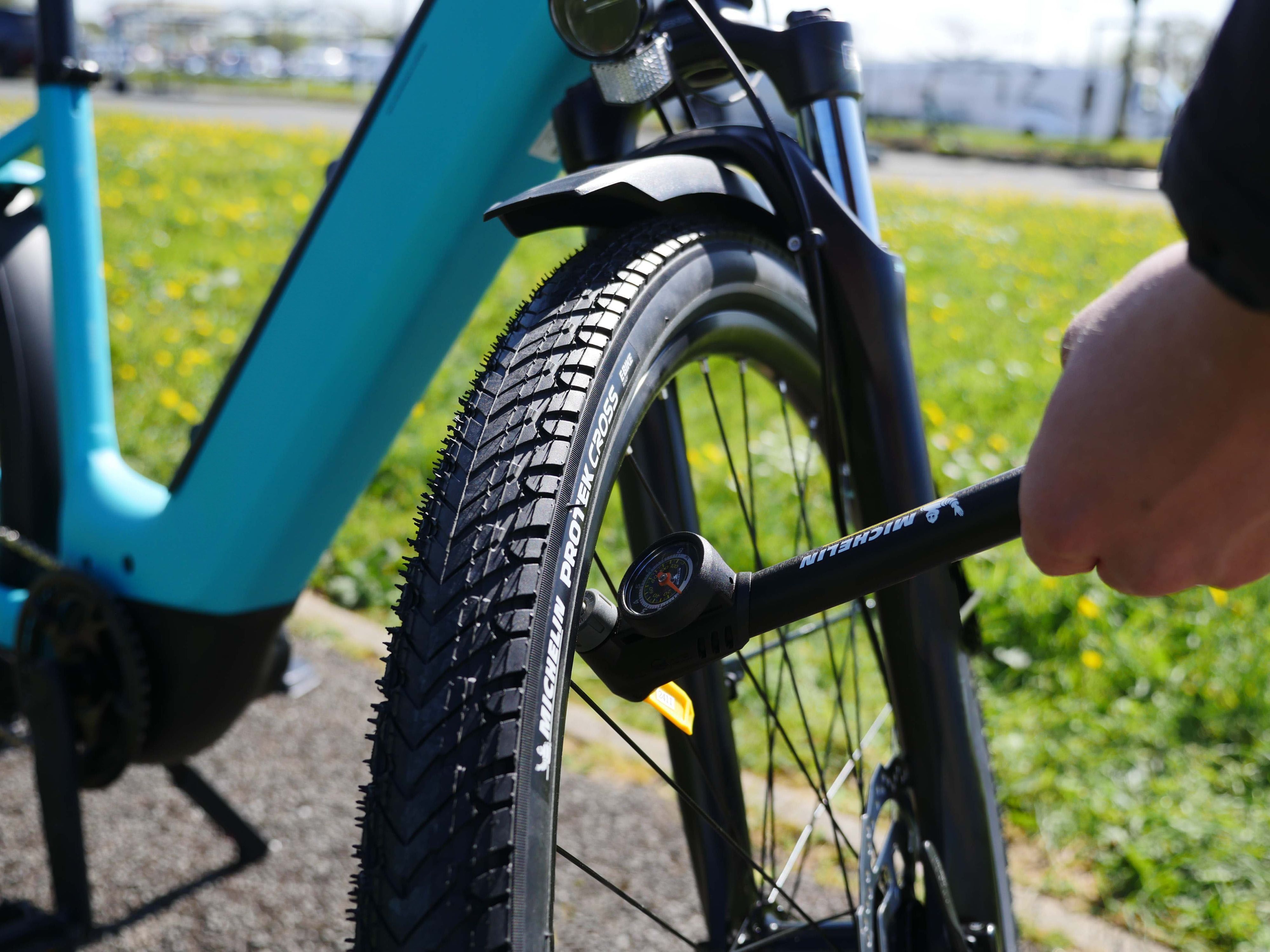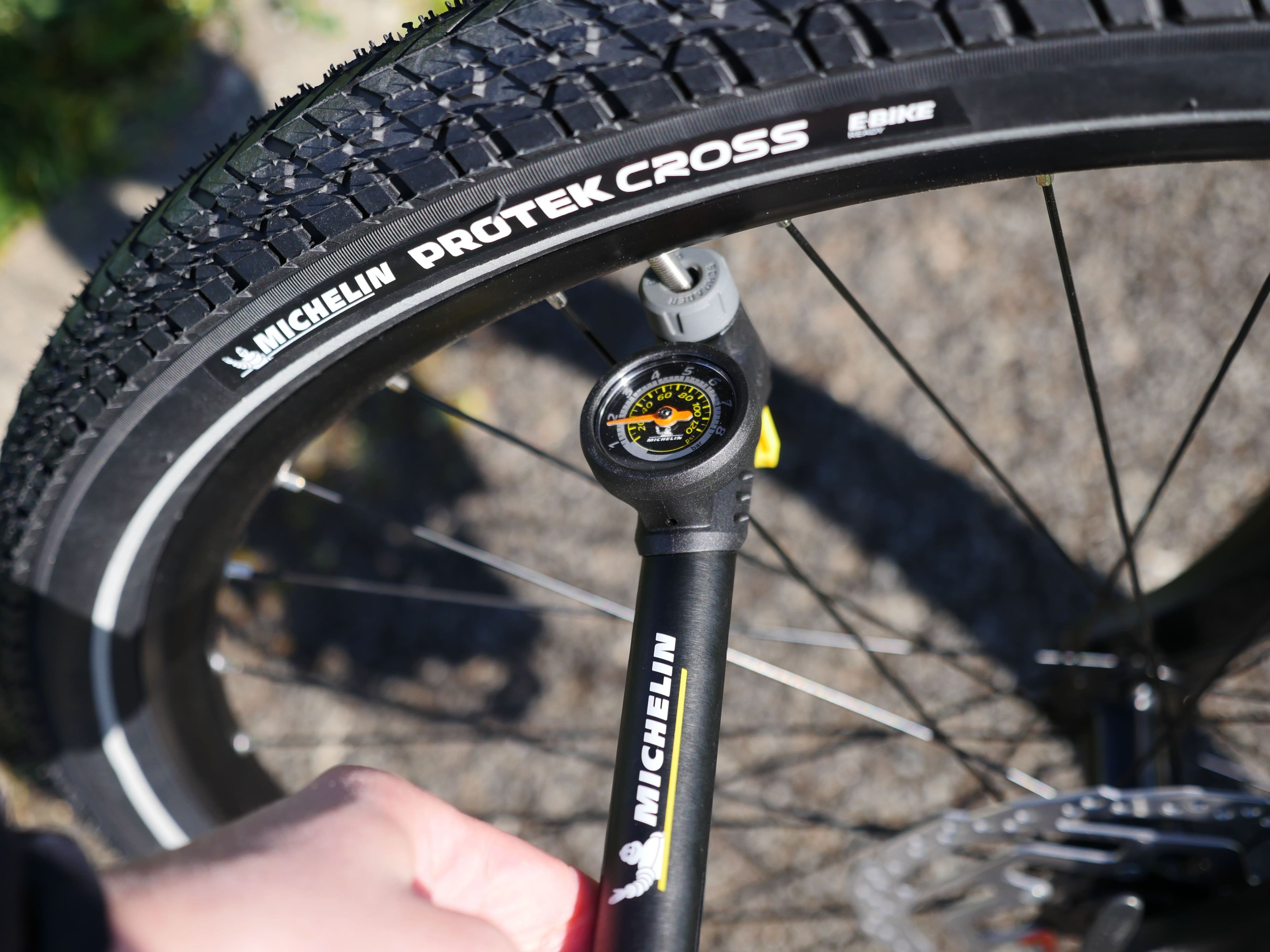 La mini-pompe à manomètre 'Clever valve' MICHELIN AIR TECH PRO permet de gonfler avec précision jusqu'à une pression maximale de 8 bars, soit 120 PSI.