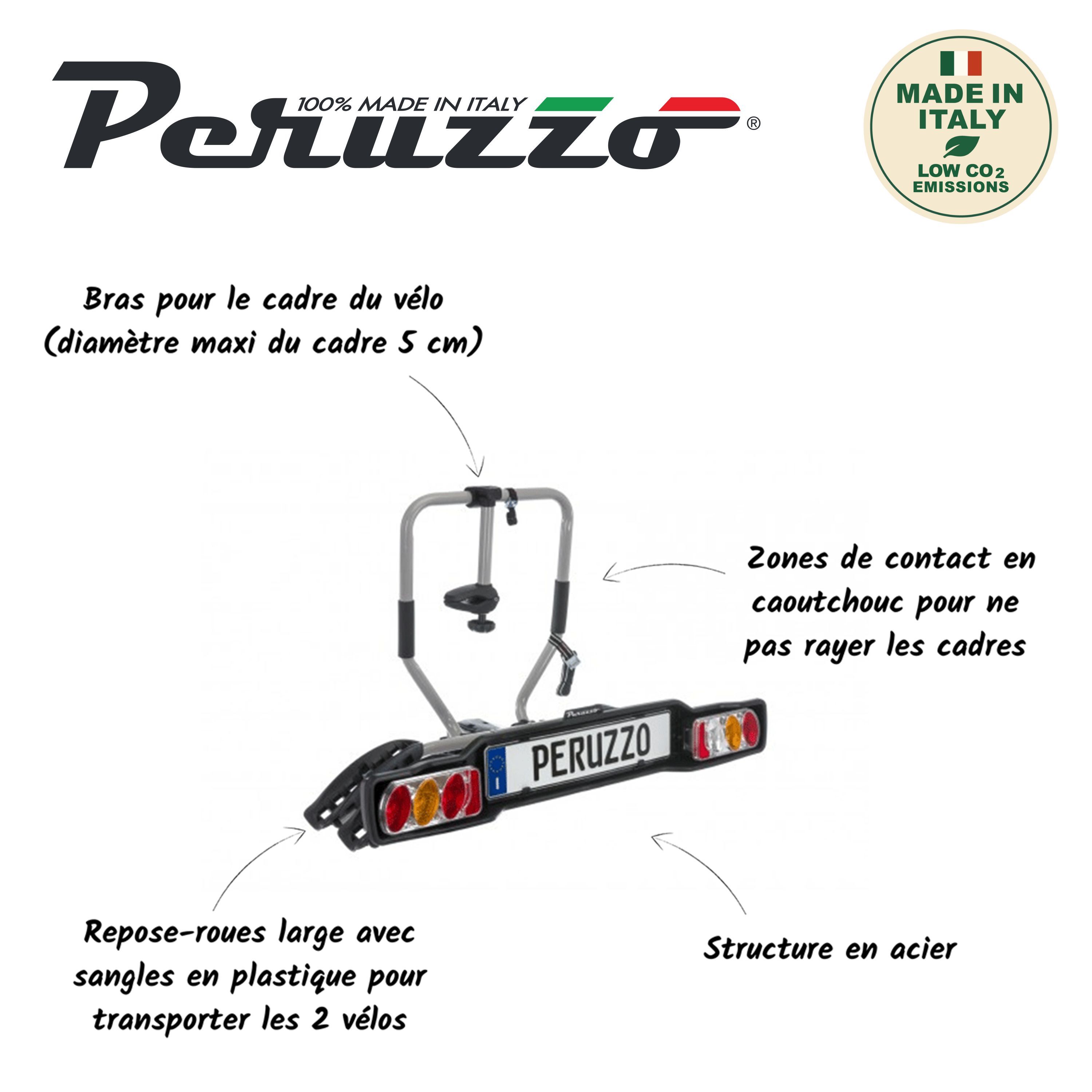 Le porte-vélo fixe sur attelage SIENA de la marque PERUZZO est très simple d'installation et d'utilisation. Il est composé d'un système anti-rayures pour ne pas abîmer les vélos. Ce porte-vélo, équipé d'un bras, permet de transporter 2 vélos (34kg maximum) en toute sécurité. Parfaitement maintenus, les vélos sont fixés par les roues (sur le rail) et sur le cadre.