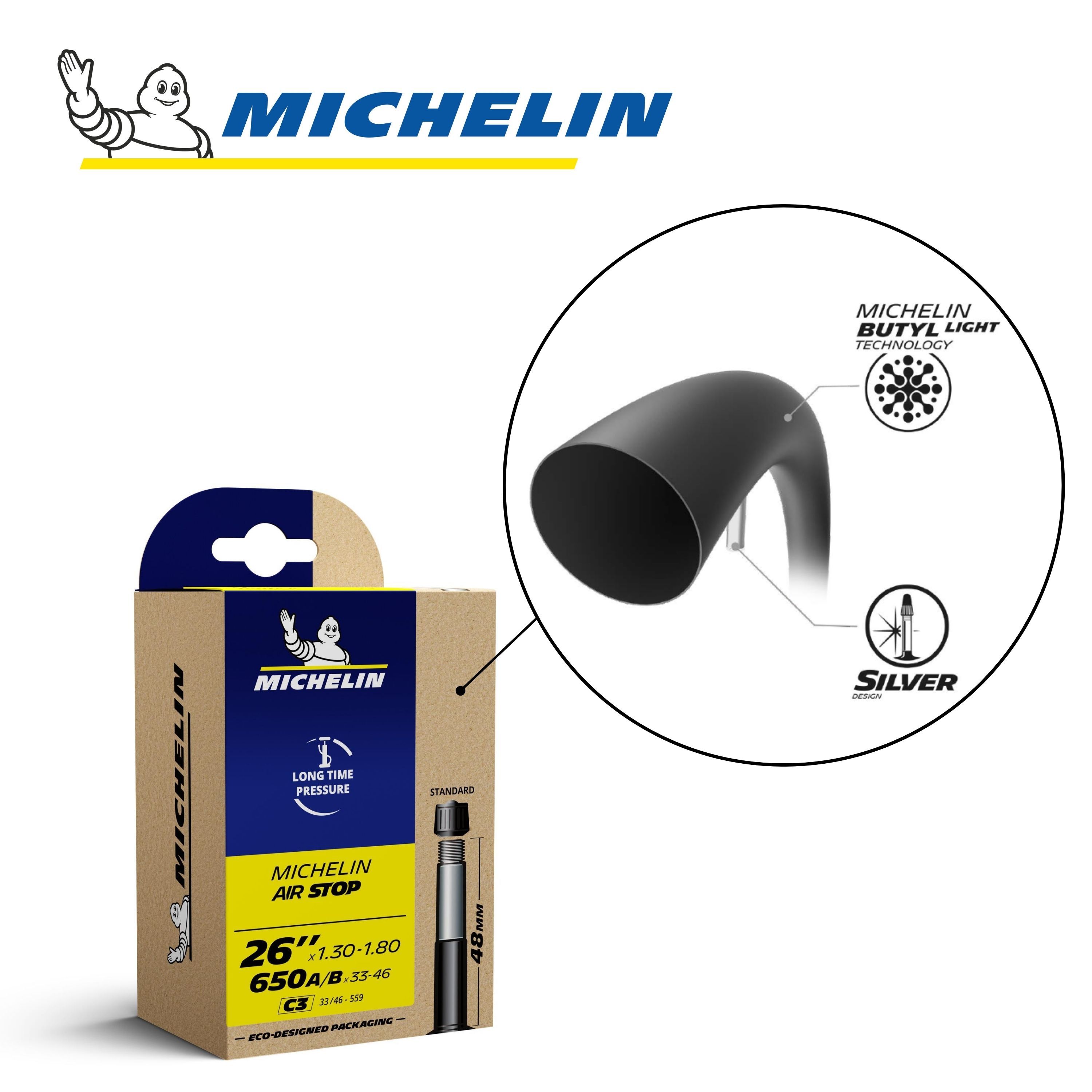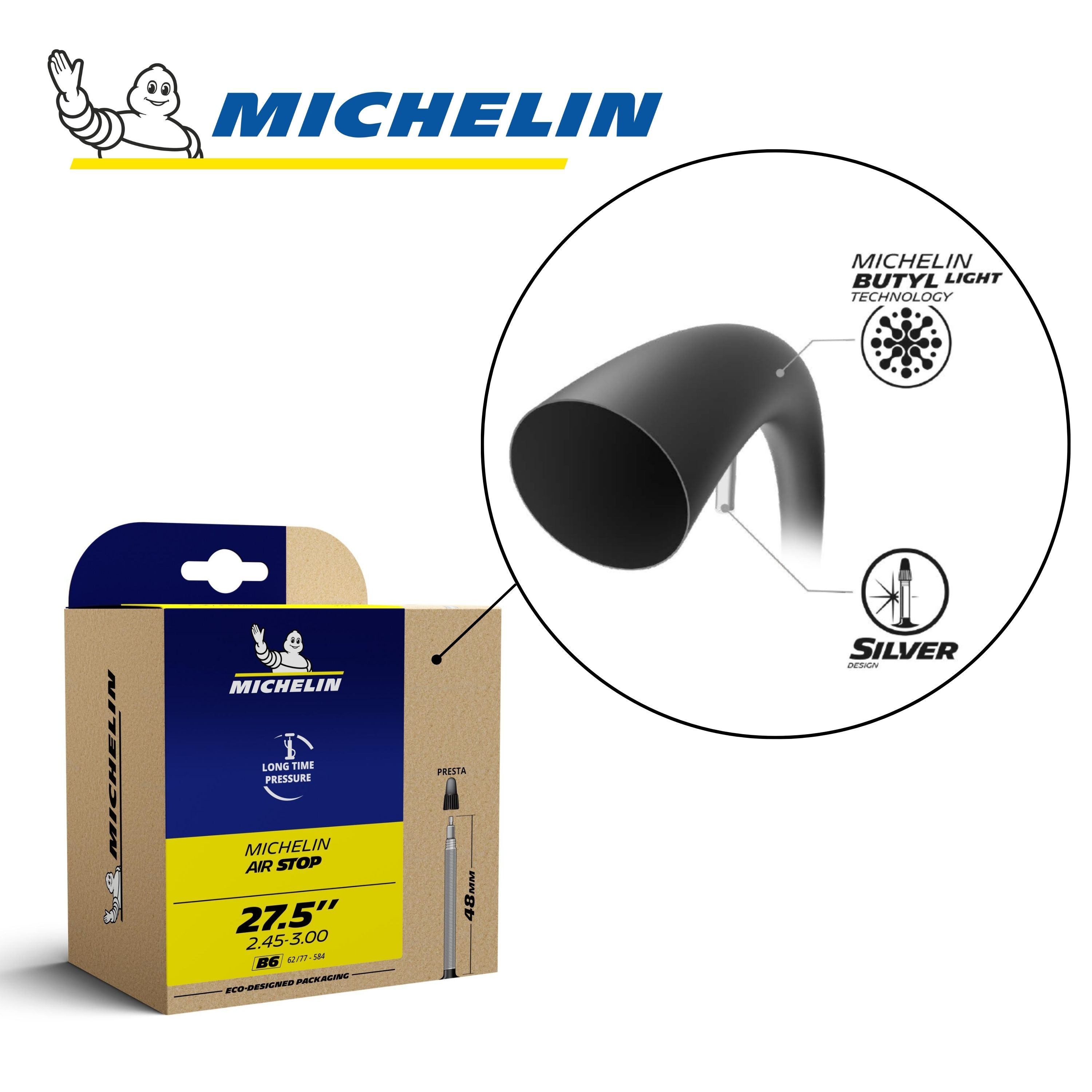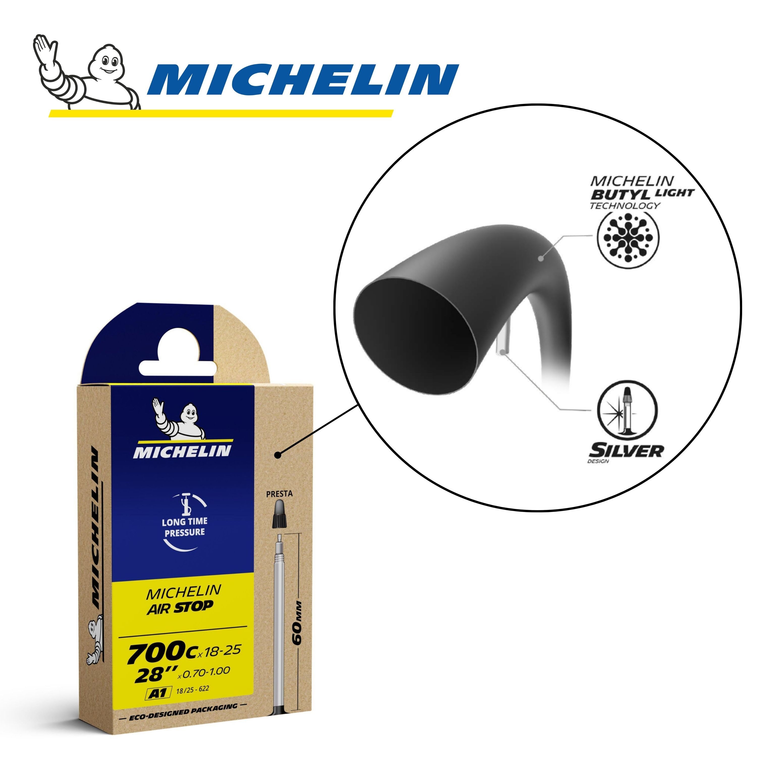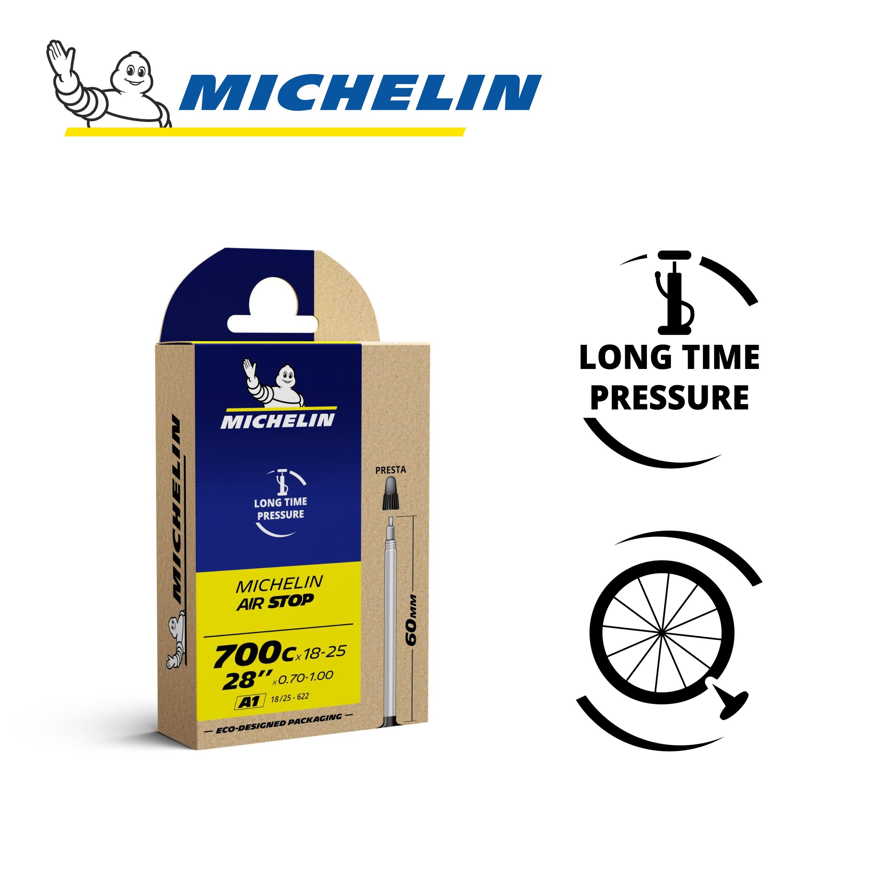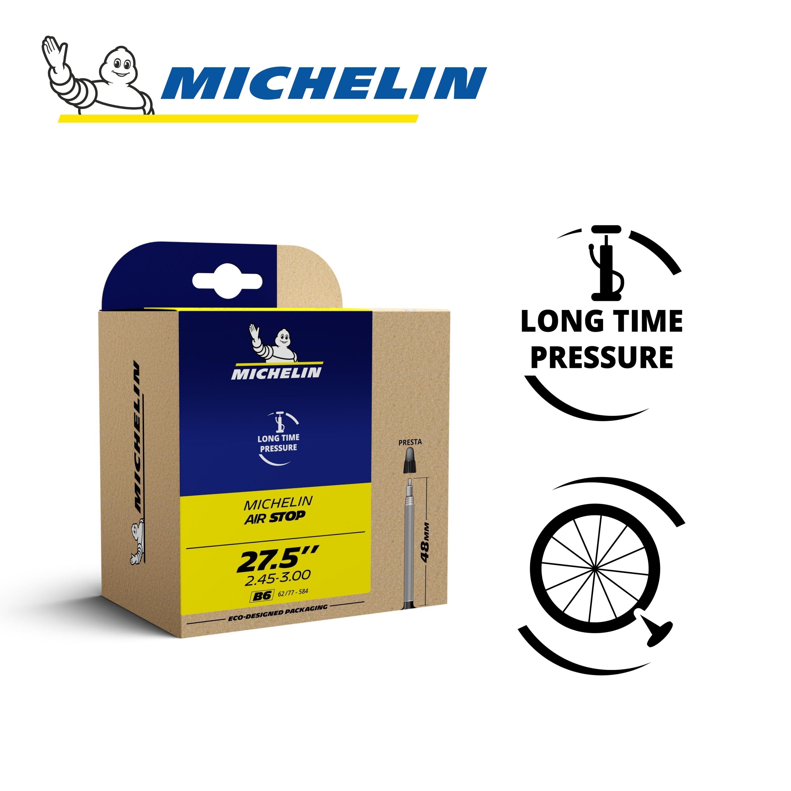 La chambre à air MICHELIN AIRSTOP, offre un bon maintien de la pression grâce au butyl et une bonne résistance aux crevaisons. C'est un standard du marché avec un excellent rapport Qualité/Prix.