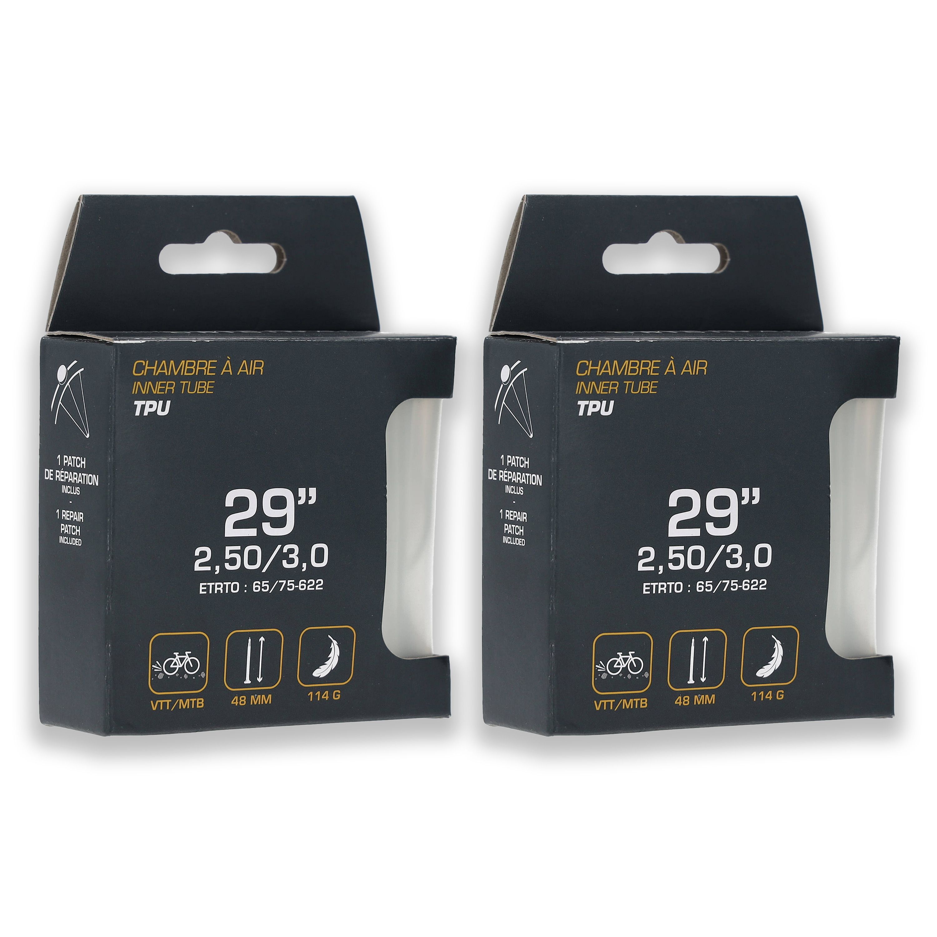 Lot de deux Chambres à air TPU 29"x2,50/3,0 - 65/75-622 PV 48 mm