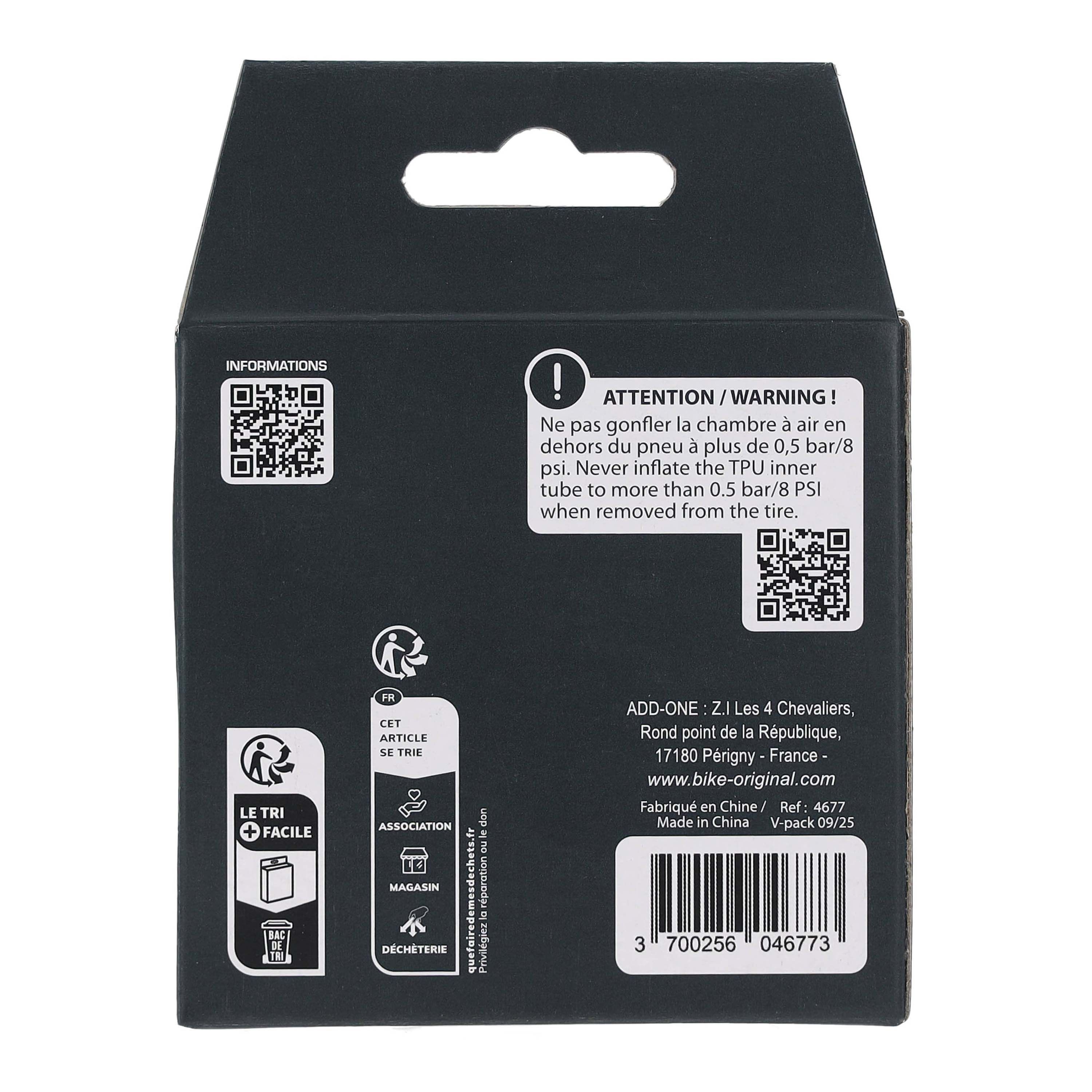 Chambre à air TPU 29"x2,50/3,0 - 65/75-622 PV 48 mm BIKE ORIGINAL, convient pour les VTT.