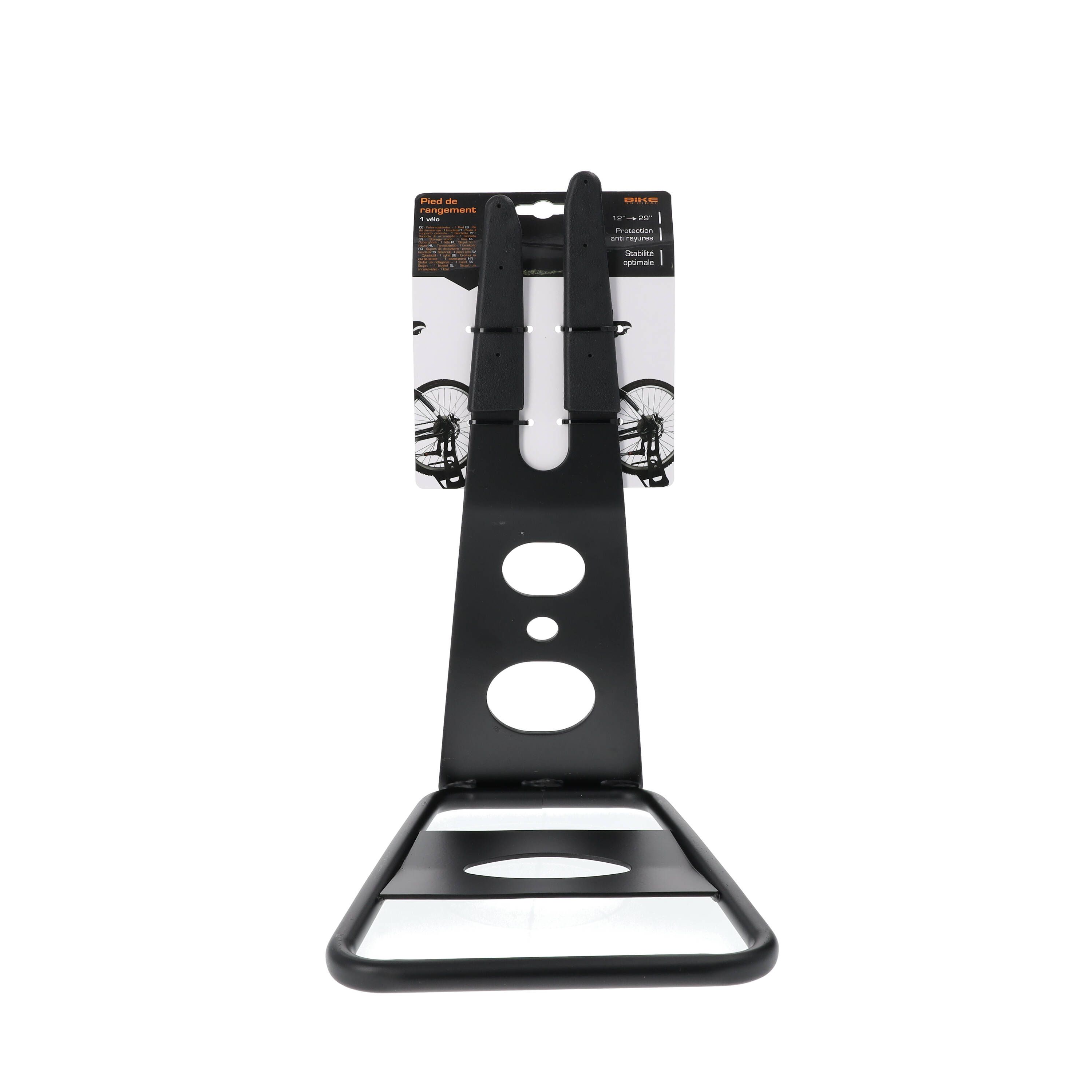 Il est compatible avec les vélos de 12" à 29". Le pied monobloc apporte une stabilité optimale et protège des rayures.