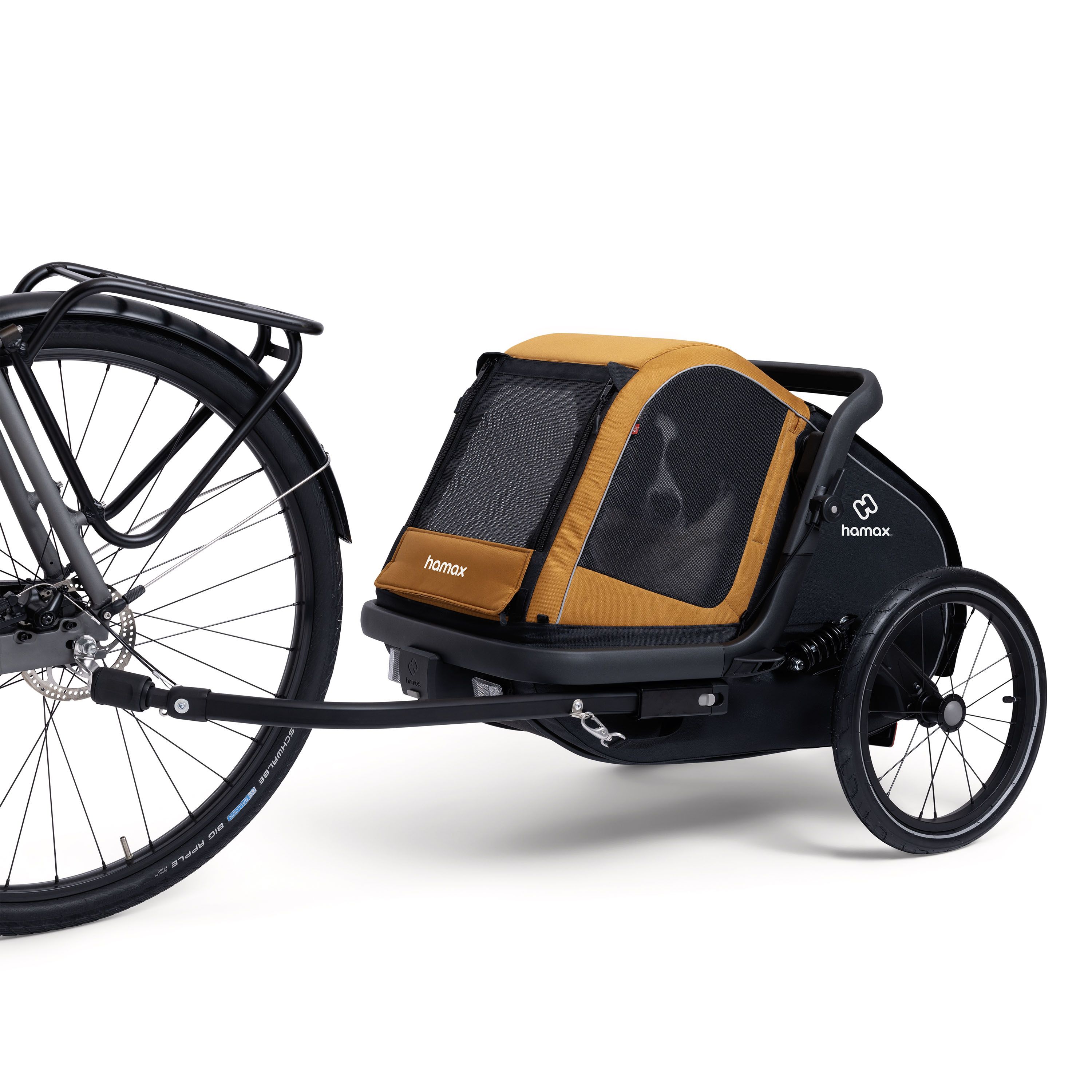 La remorque à vélo MILOU de la marque HAMAX est la solution idéale pour transporter votre petit chien, mais aussi pour les courses, le matériel ou les objets du quotidien.