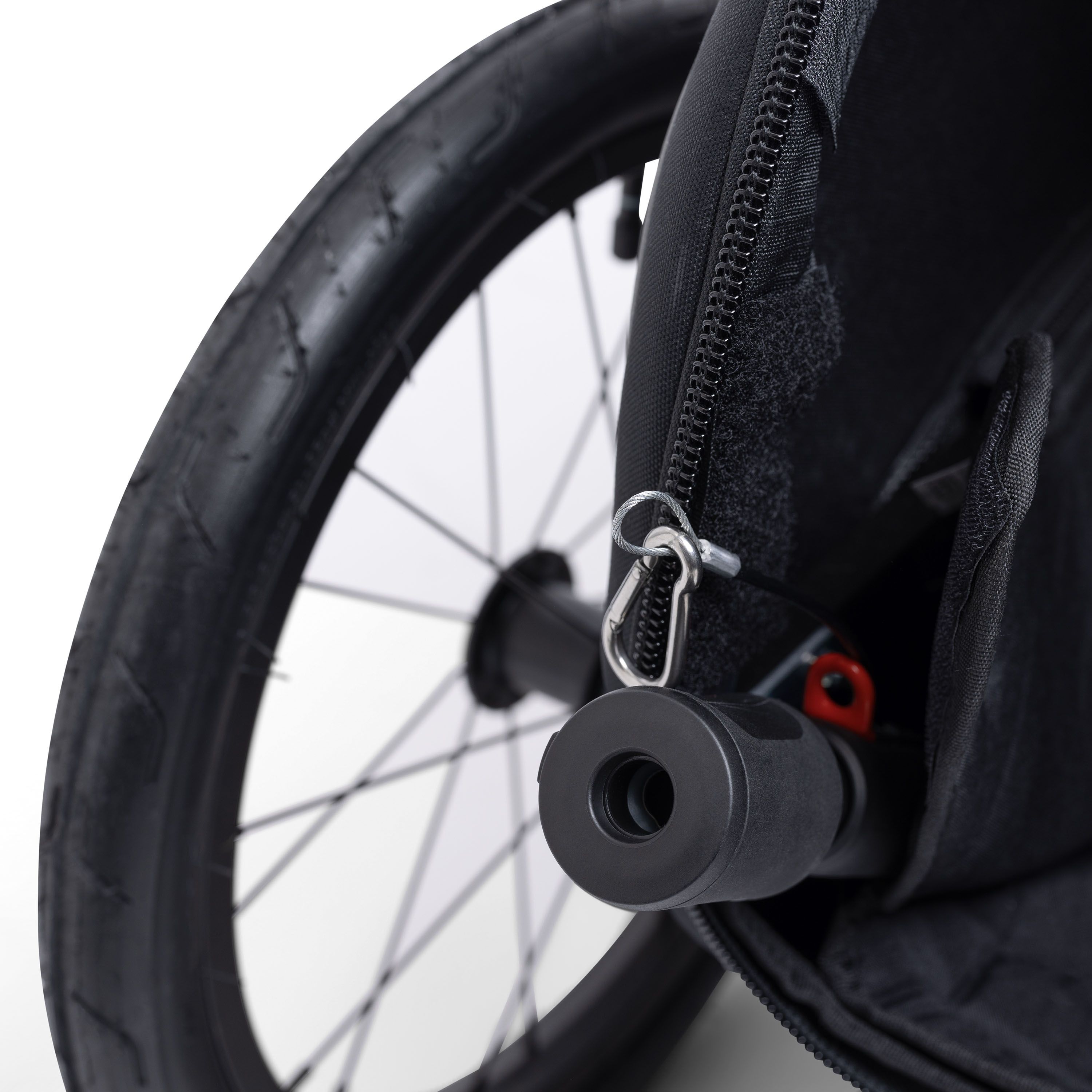 Un kit poussette (vendu séparément) composé d’une roue pivotante et d’une poignée ergonomique permet de transformer la remorque vélo Milou en poussette.