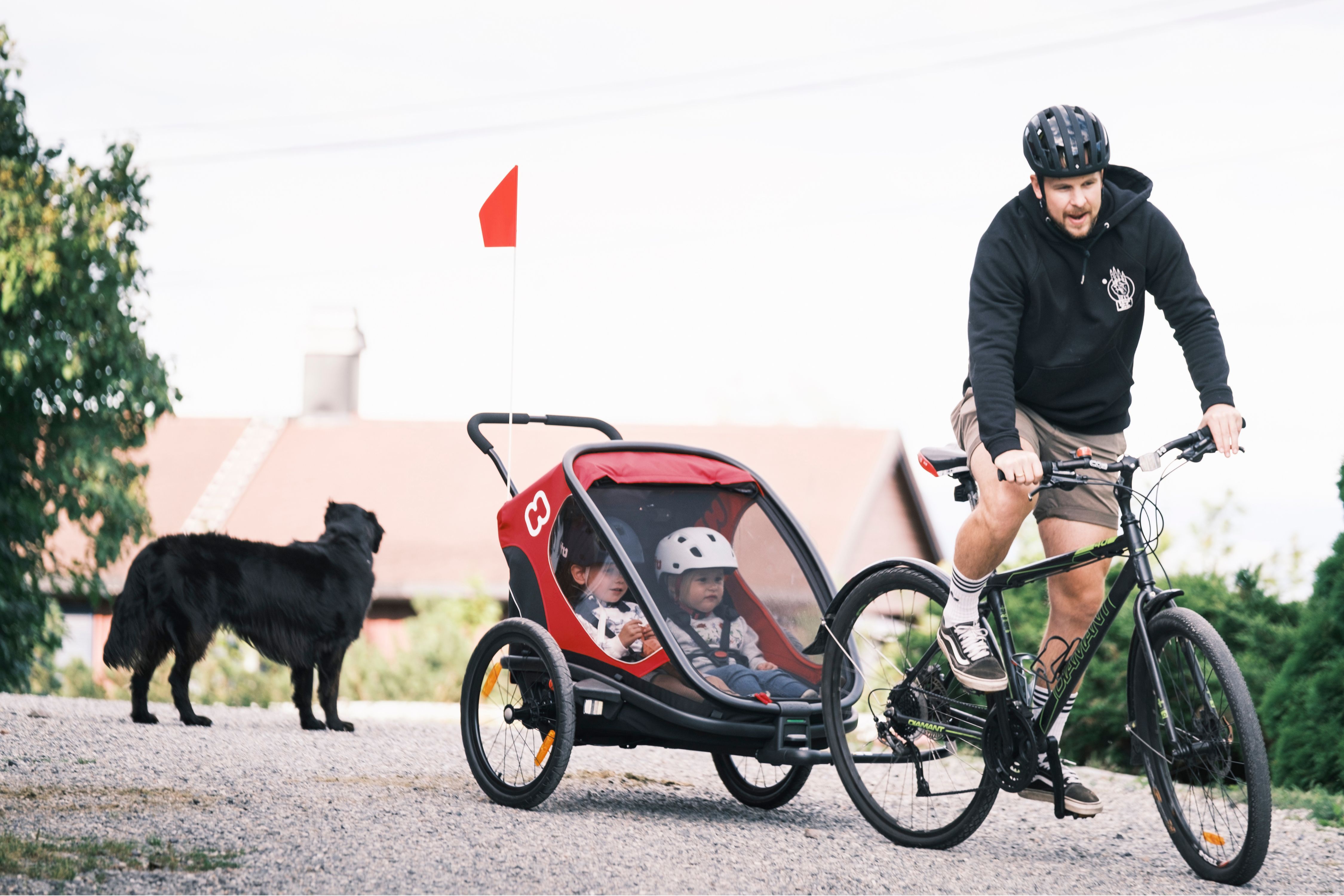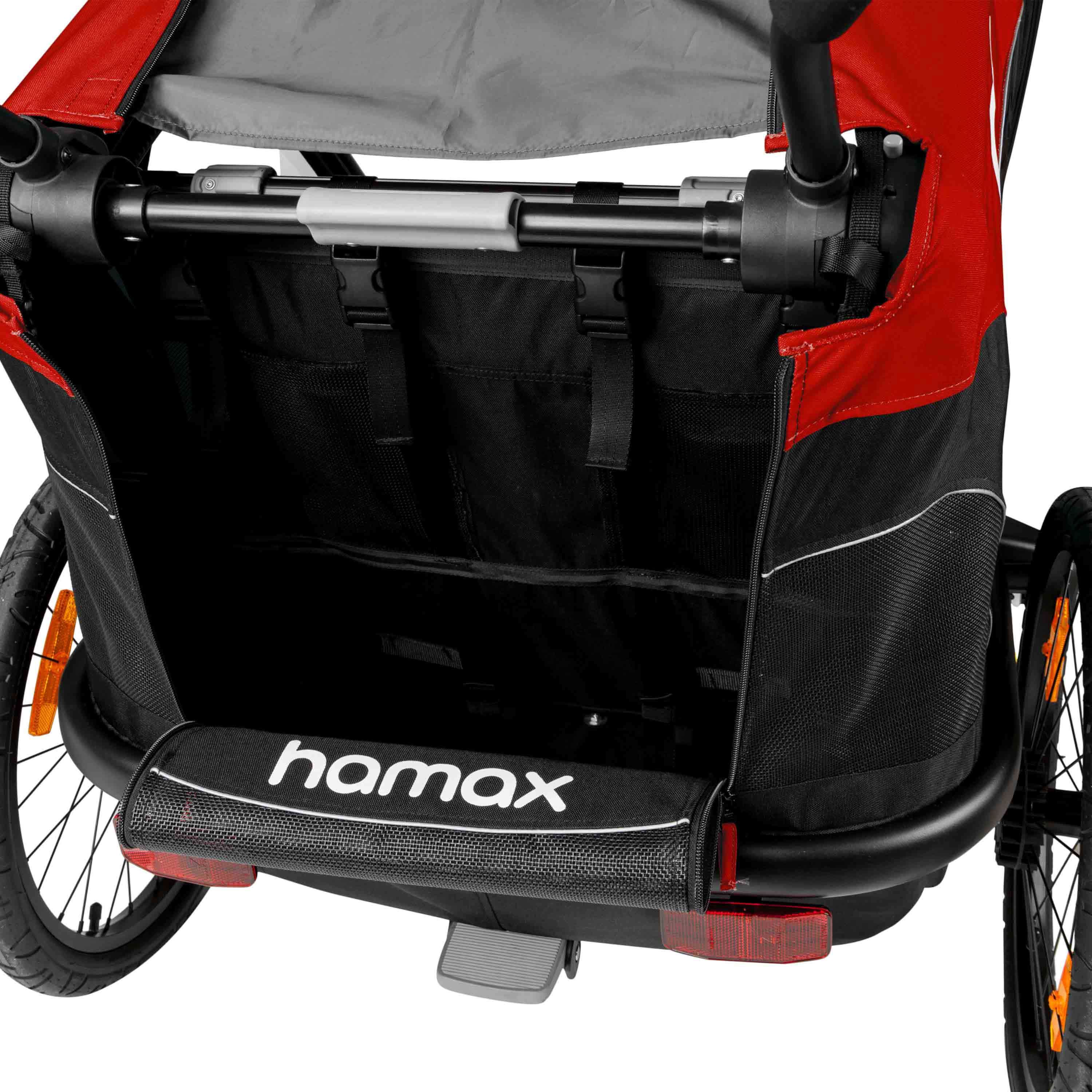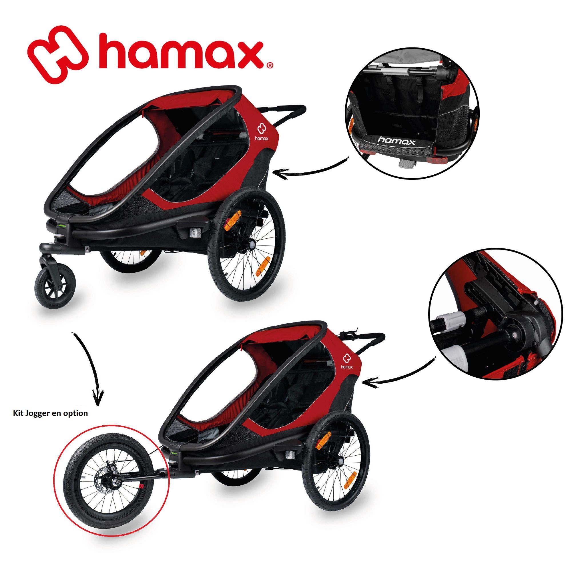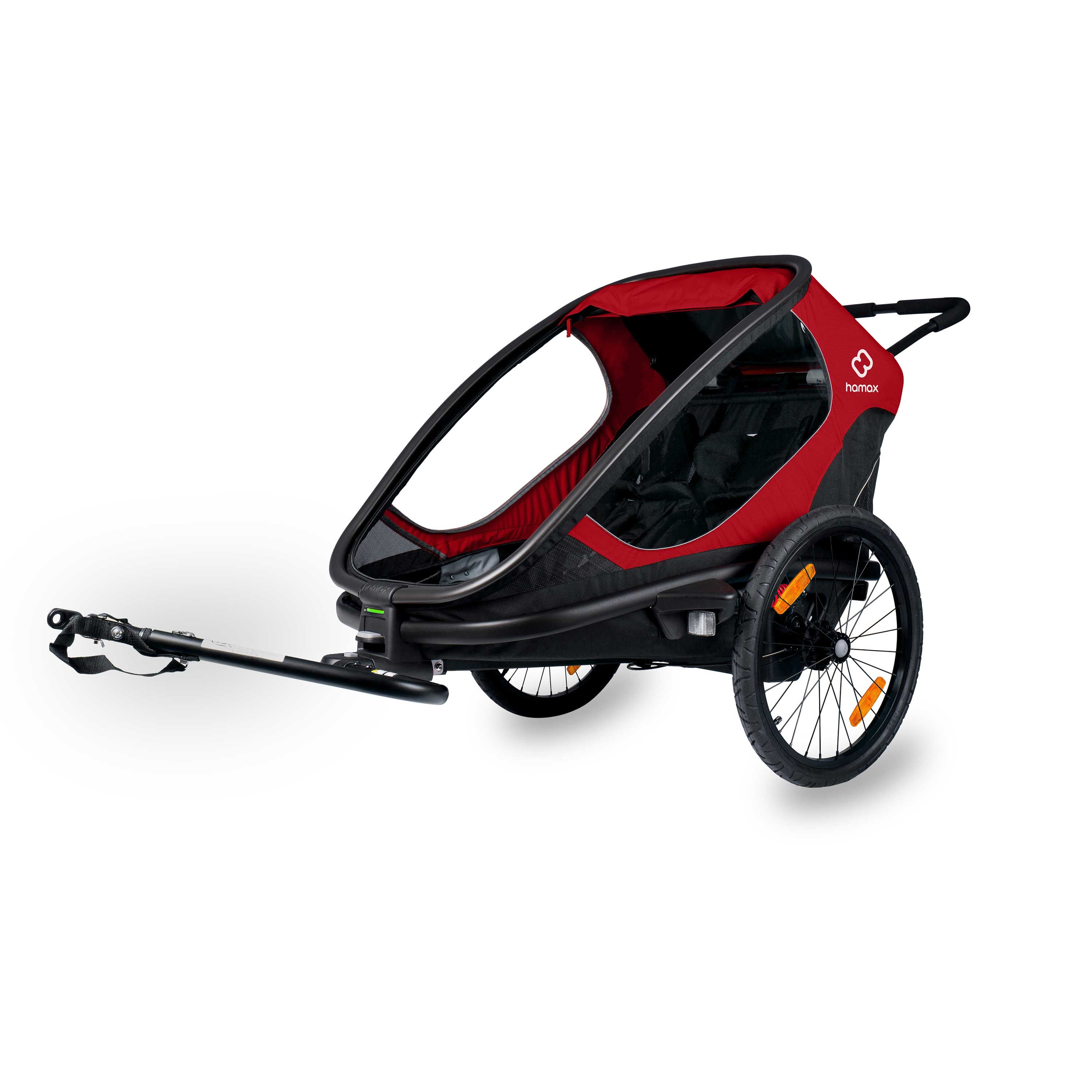 Légère et ultra-confortable, la remorque OUTBACK de la marque HAMAX permet aux enfants d'être protégés lors de balades à vélo, vélo électrique ou de randonnées.
