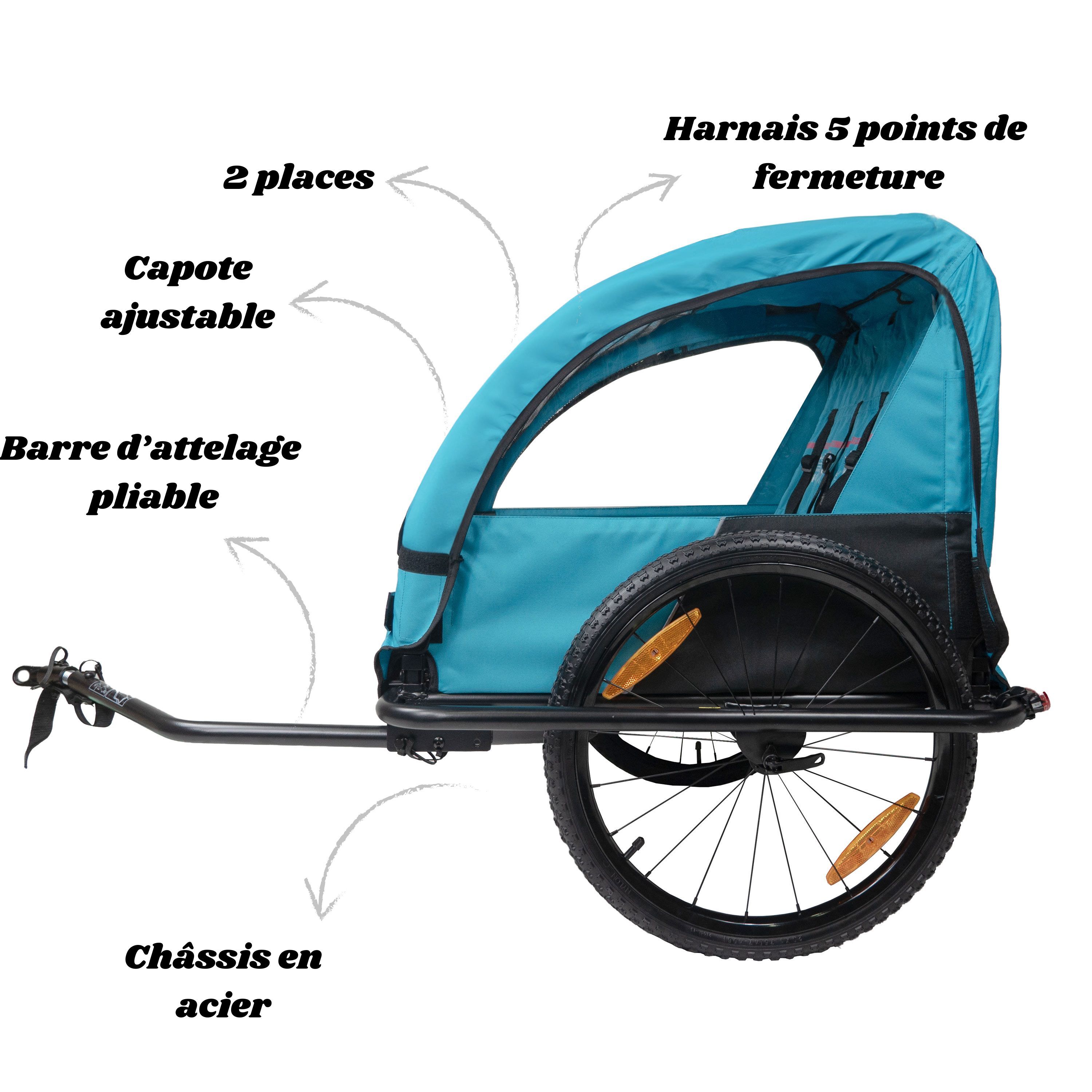 La remorque vélo Kiid Adventure 2 de la marque BIKE ORIGINAL permet le transport de deux enfants de manière confortable et en toute sécurité.