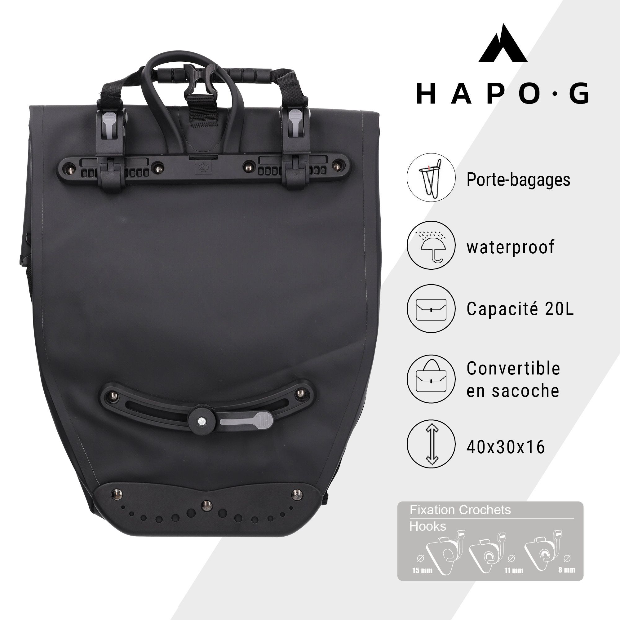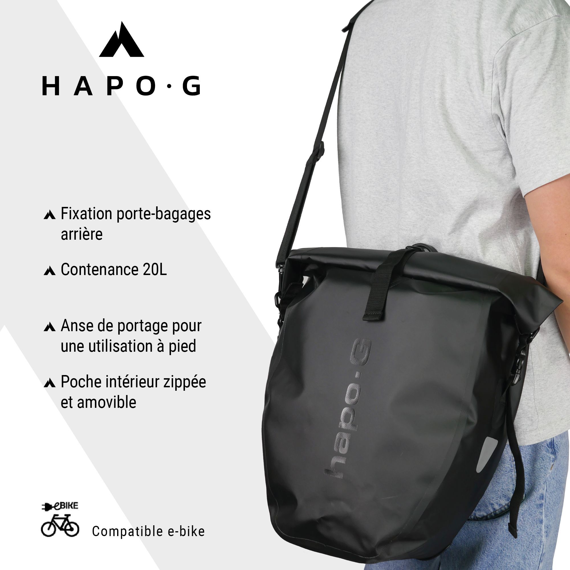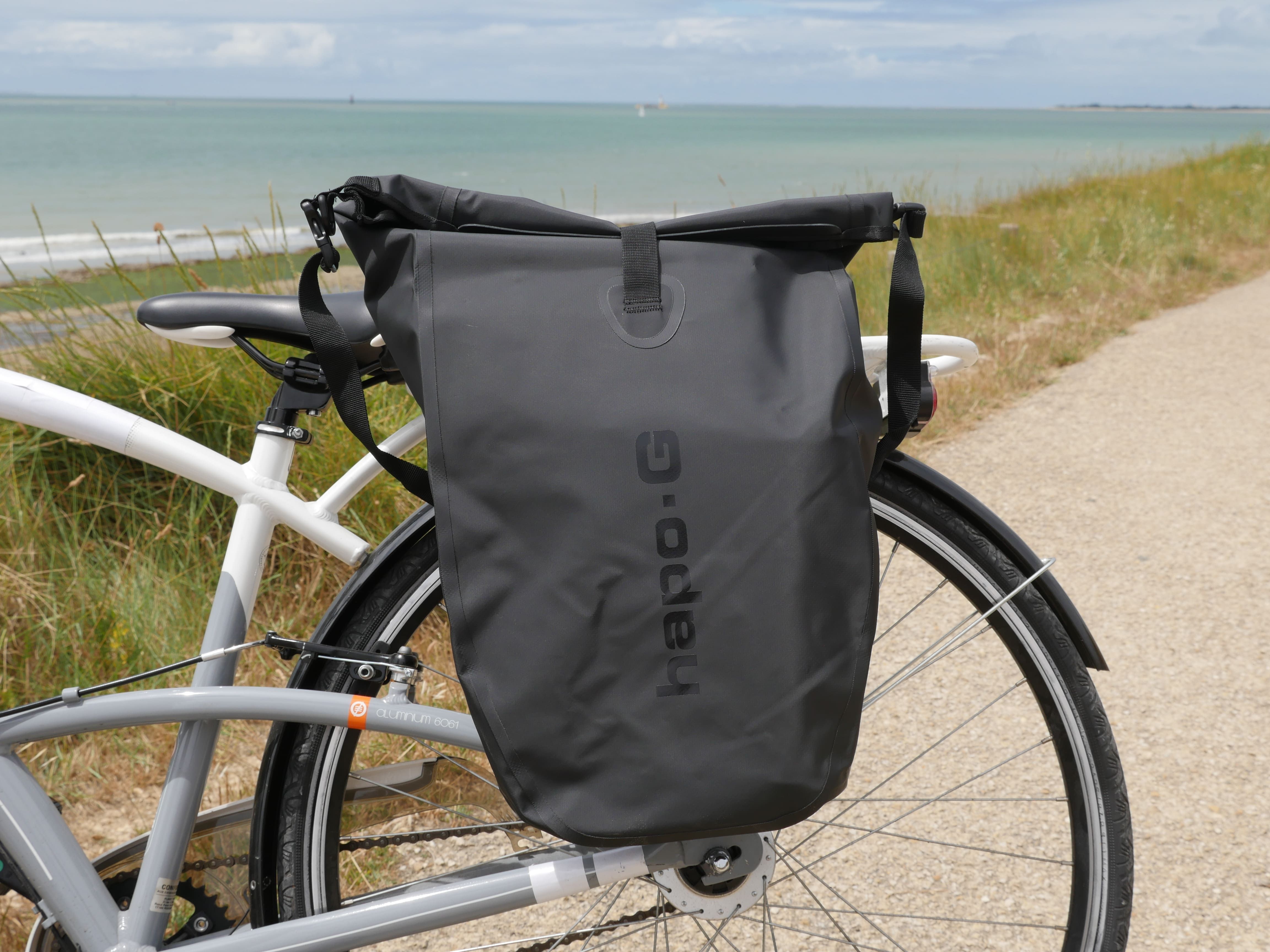 Cette sacoche arrière de la marque HAPO G se fixe sur le porte-bagages arrière du vélo et est composé de PVC, la rendant entièrement waterproof.