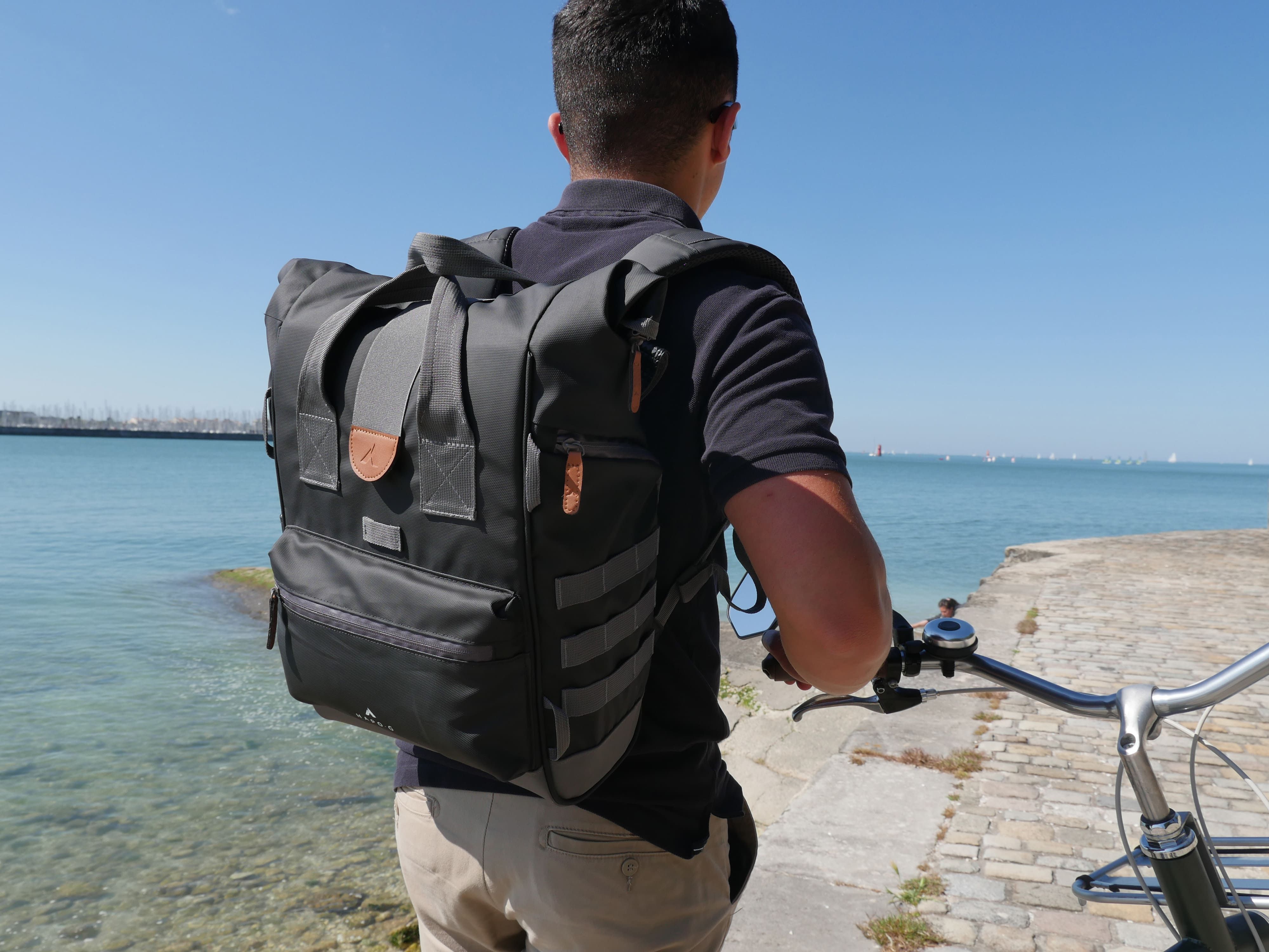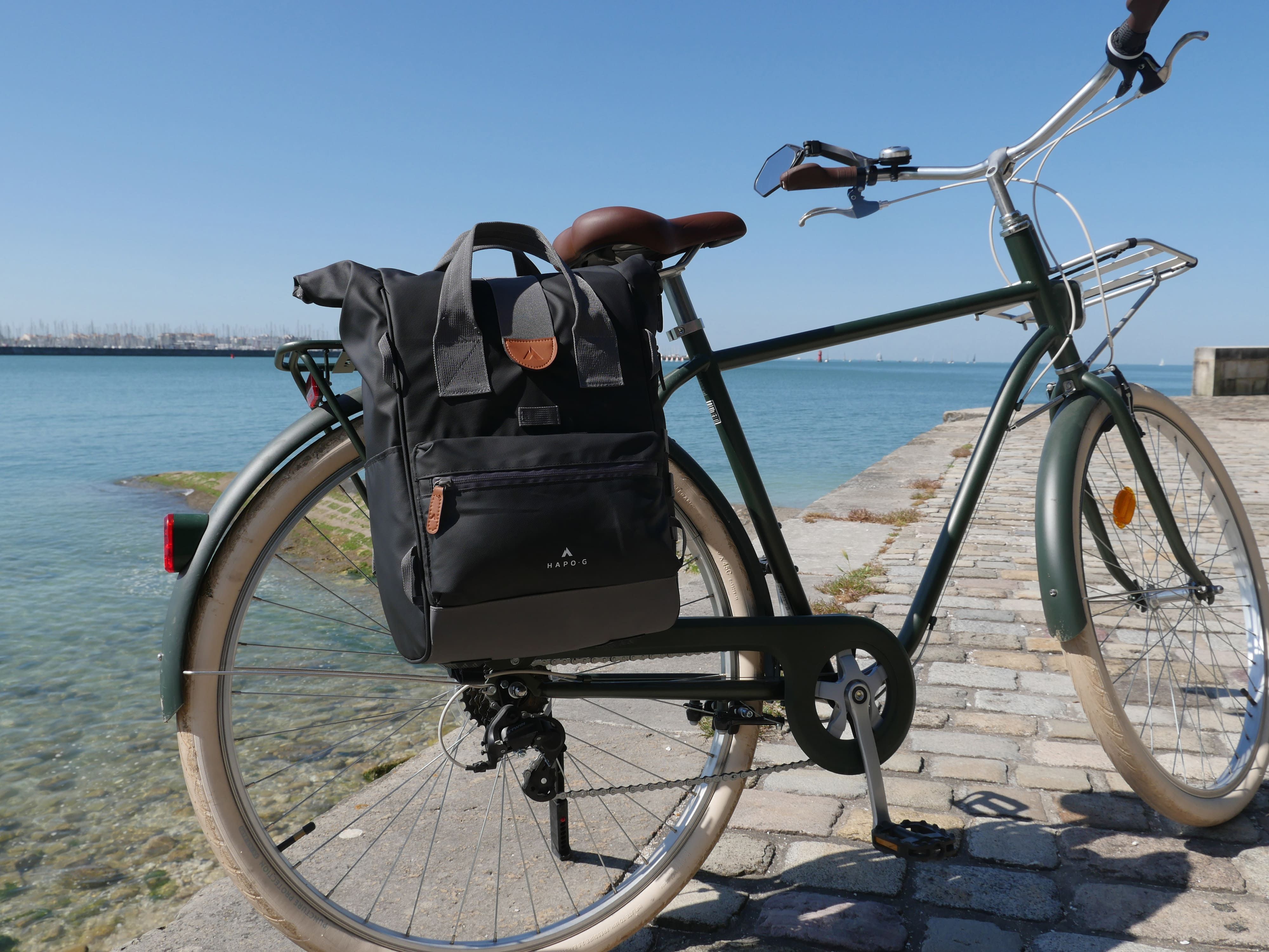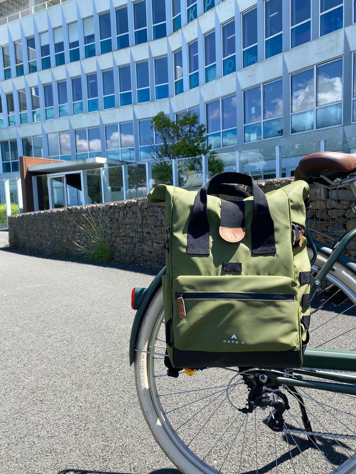 La sacoche arrière roll-top convertible en sac à dos de la marque HAPO-G se fixe sur le porte bagages arrière du vélo. Elle peut être transportée aussi bien sur un vélo que sur le dos, ce qui la rend très pratique pour une utilisation quotidienne.