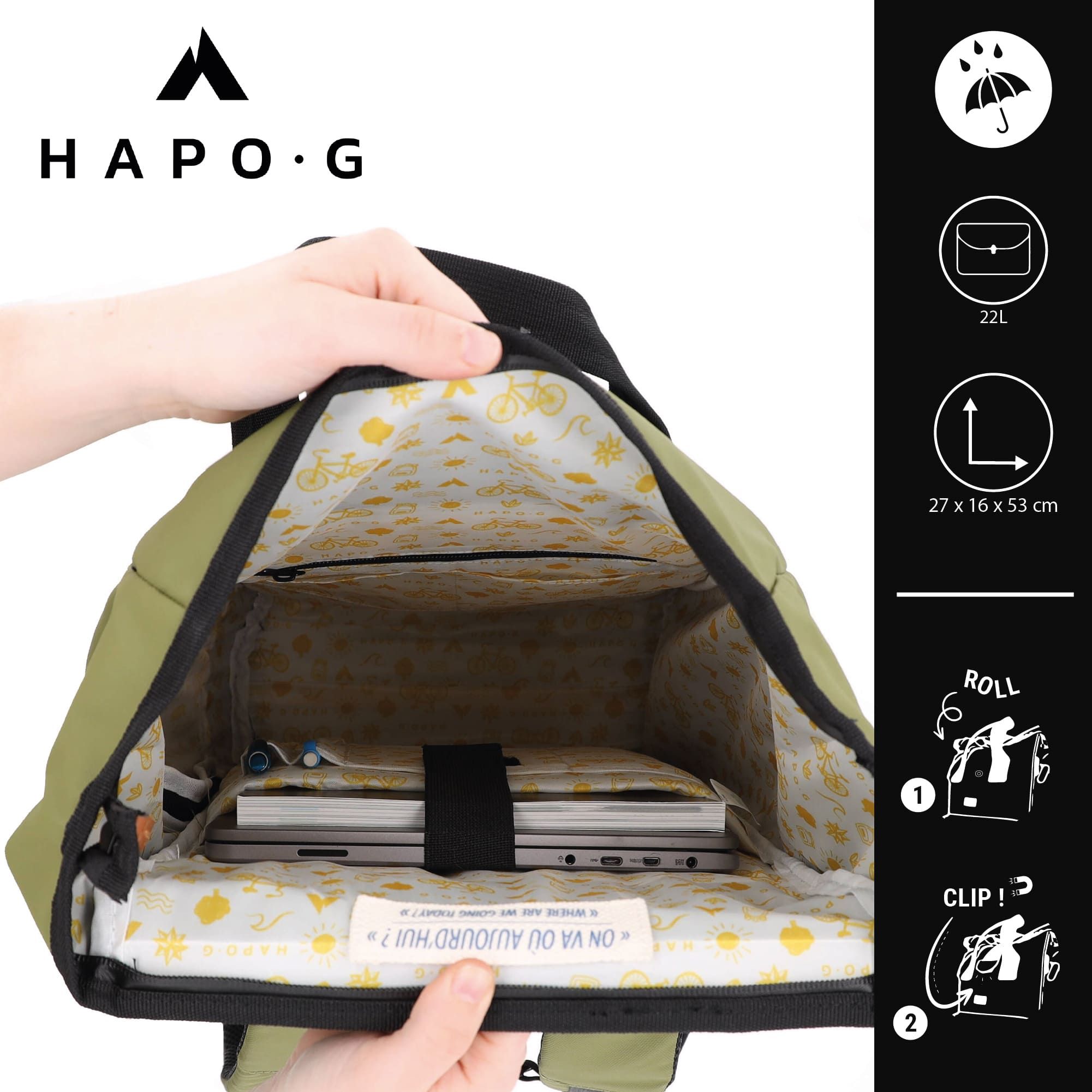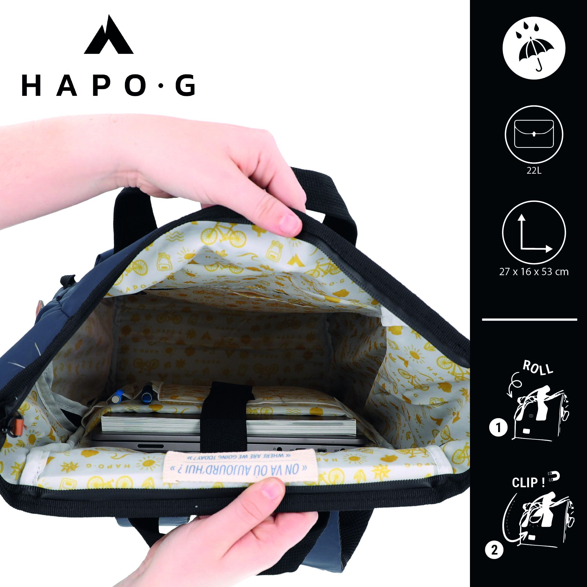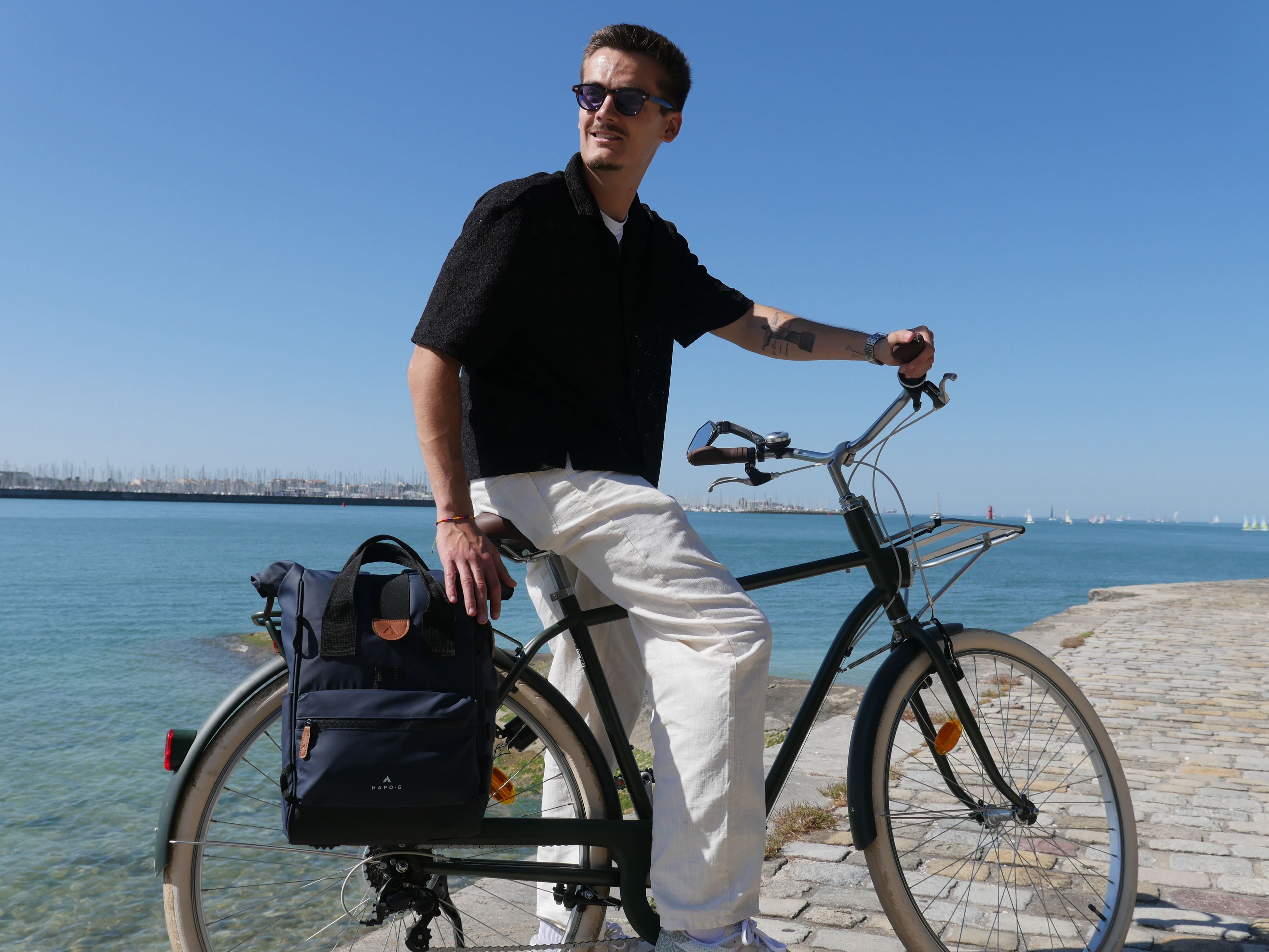 La sacoche arrière roll-top convertible en sac à dos de la marque HAPO-G se fixe sur le porte bagages arrière du vélo. Elle peut être transportée aussi bien sur un vélo que sur le dos, ce qui la rend très pratique pour une utilisation quotidienne.