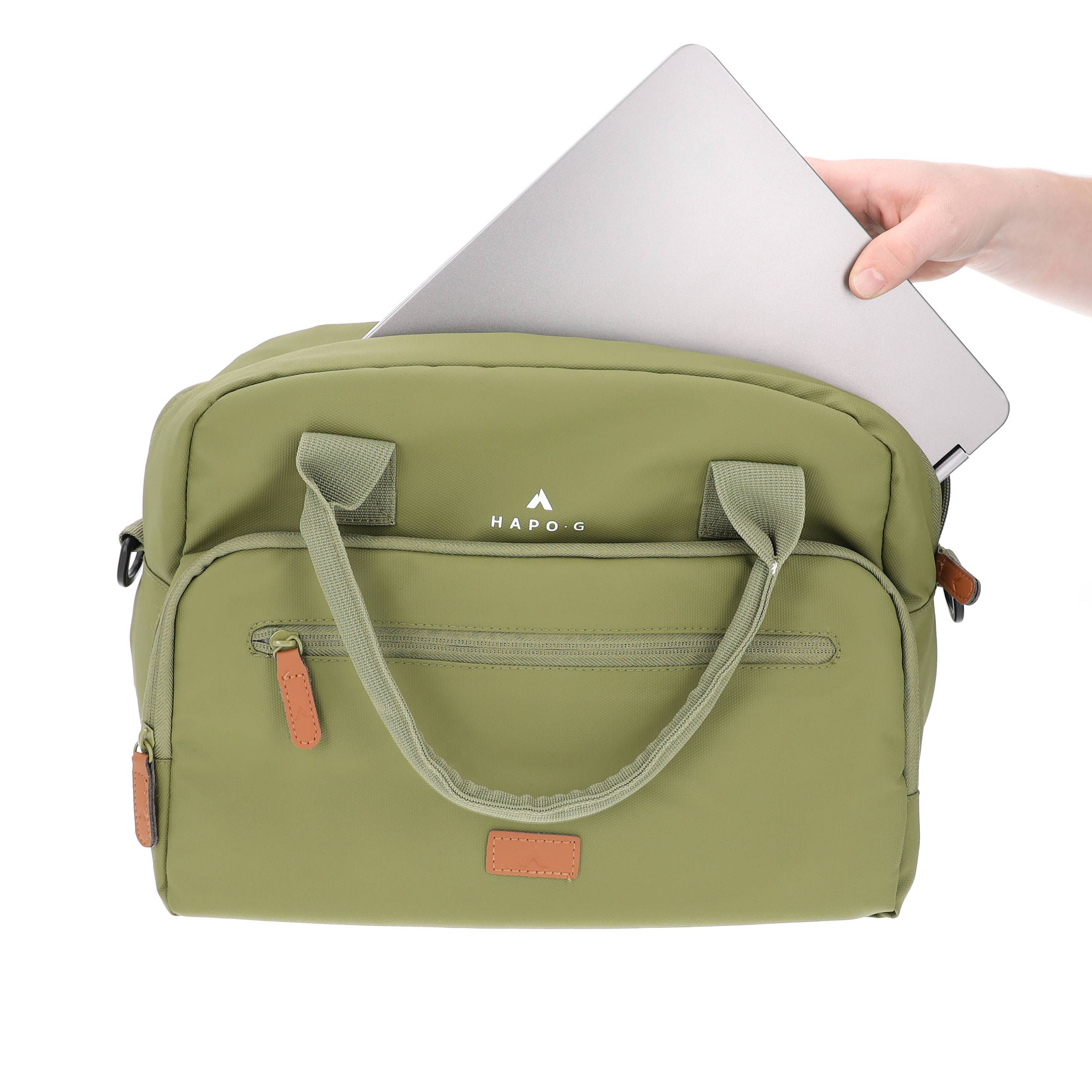 Elle s'installe facilement grâce à ses sangles velcro et boucles et dispose d'une contenance de 14 litres. Elle est transportable facilement grâce à ses larges anses ainsi qu'avec sa bandoulière amovible. Elle dispose de deux poches avant zippées. La poche principale comprend un compartiment renforcé pouvant accueillir une tablette ou un ordinateur de 13".