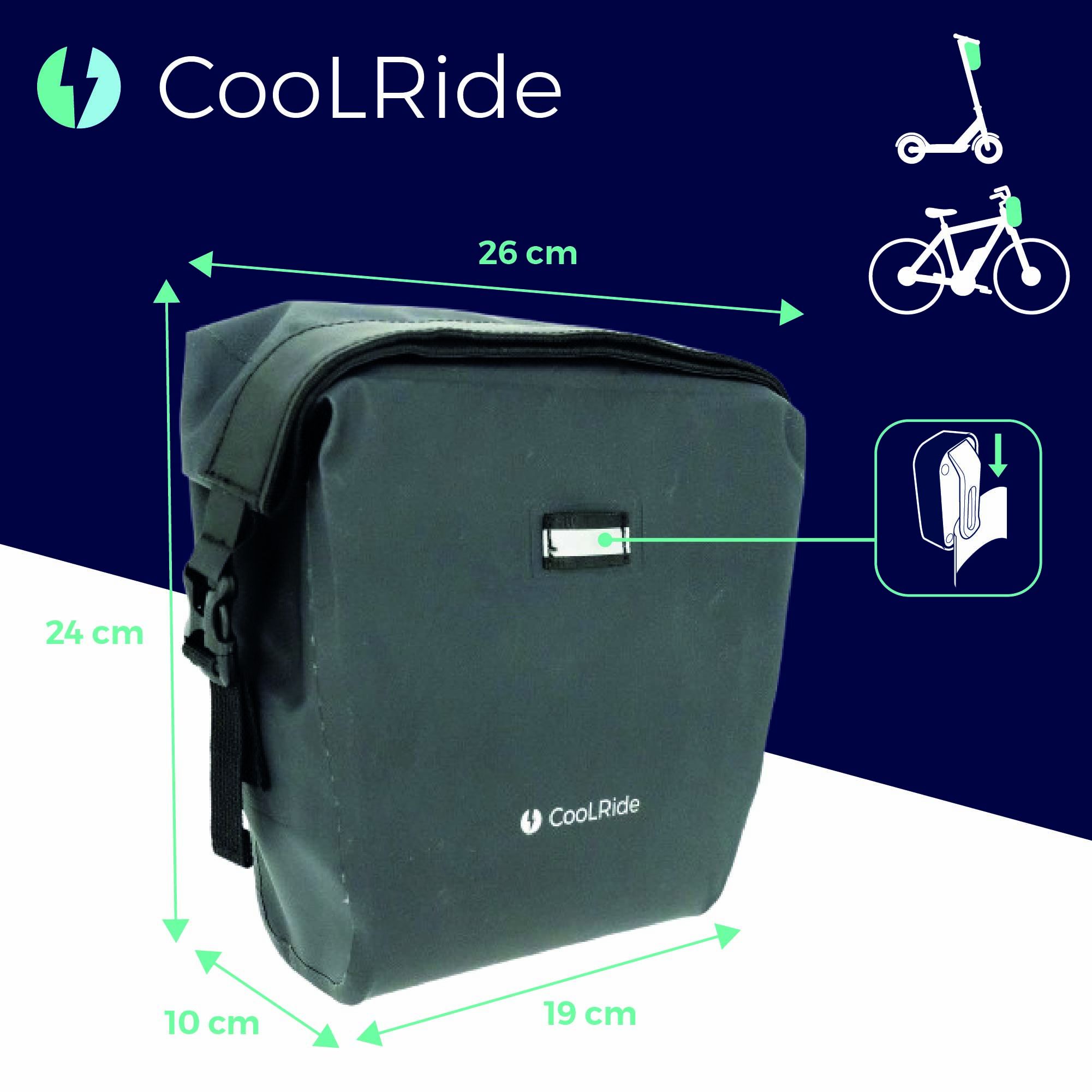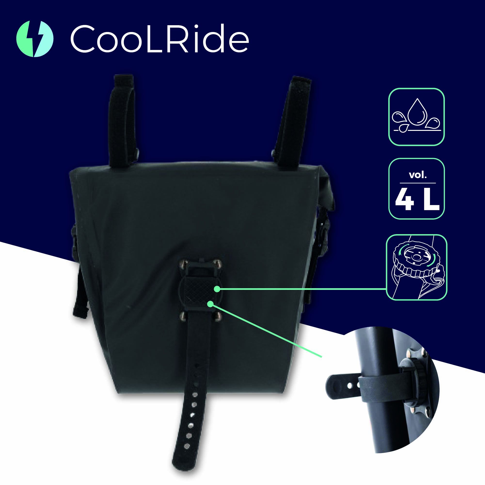 La sacoche avant souple de la marque COOL RIDE est 100% waterproof. Elle se fixe à l'avant de la trottinette ou du vélo grâce à une fixation 360° ainsi que 2 sangles à scratch.