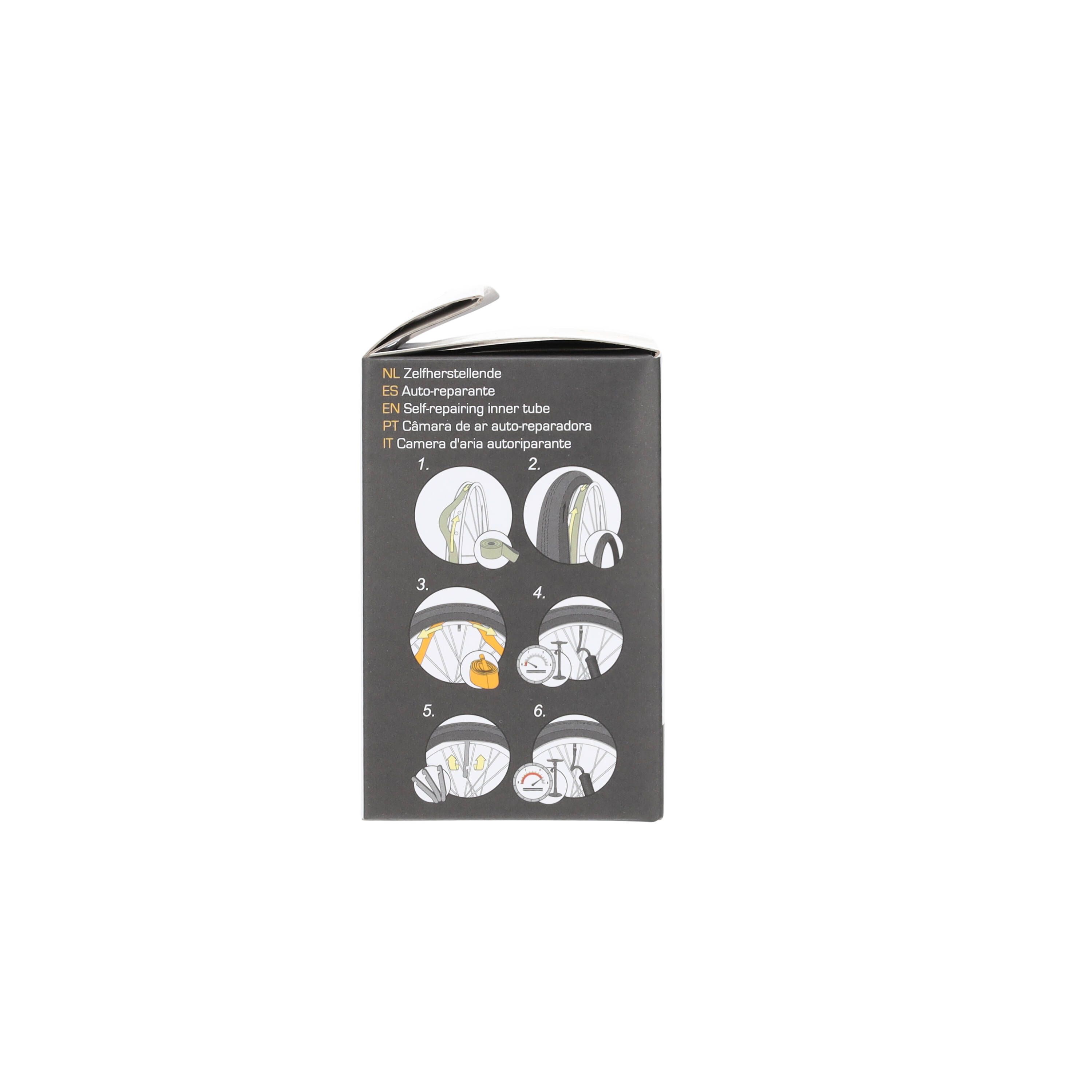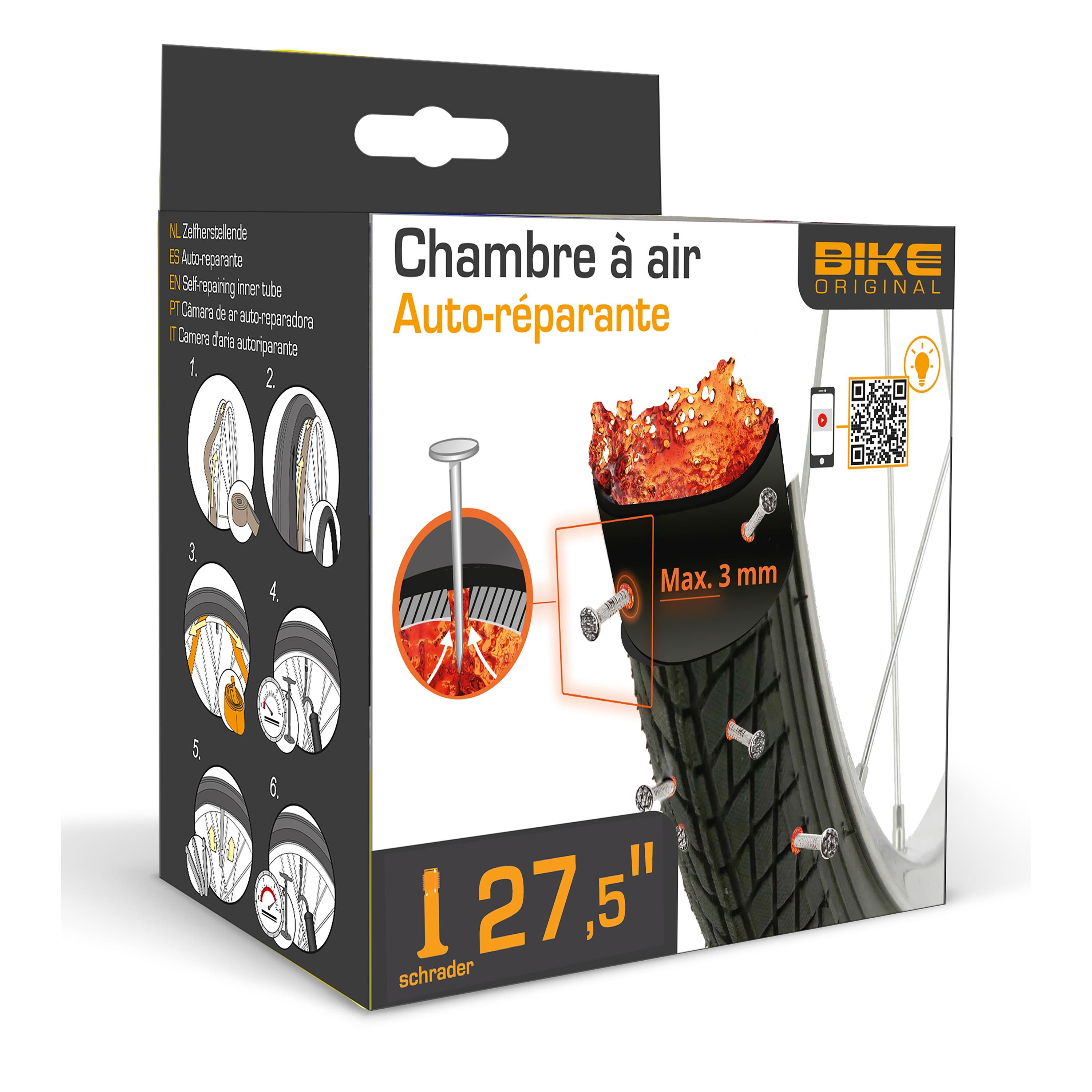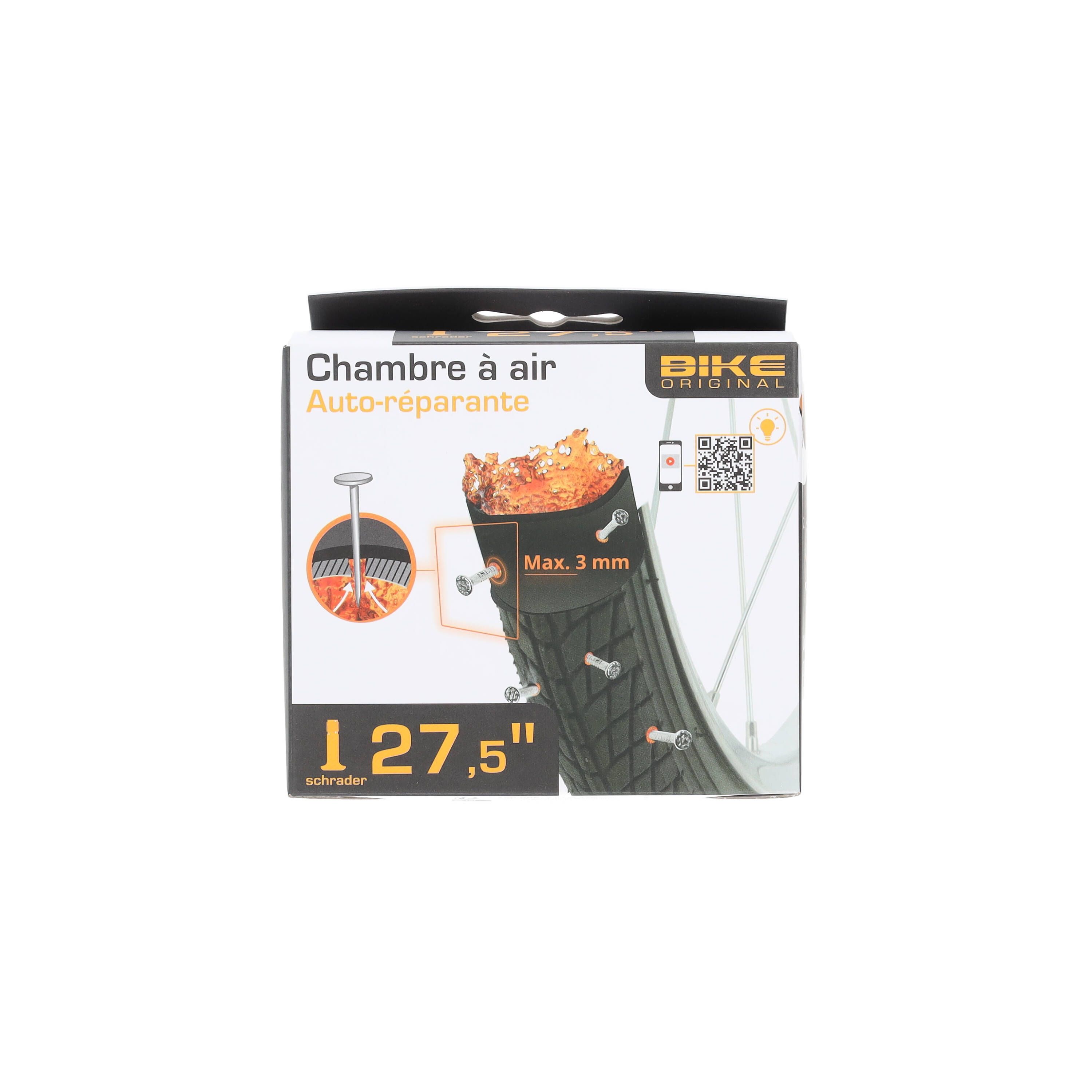 Chambre à air auto-réparante 27.5’’ pour valve schrader contient un gel auto-réparant pour les perforations inférieures à 3 mm.