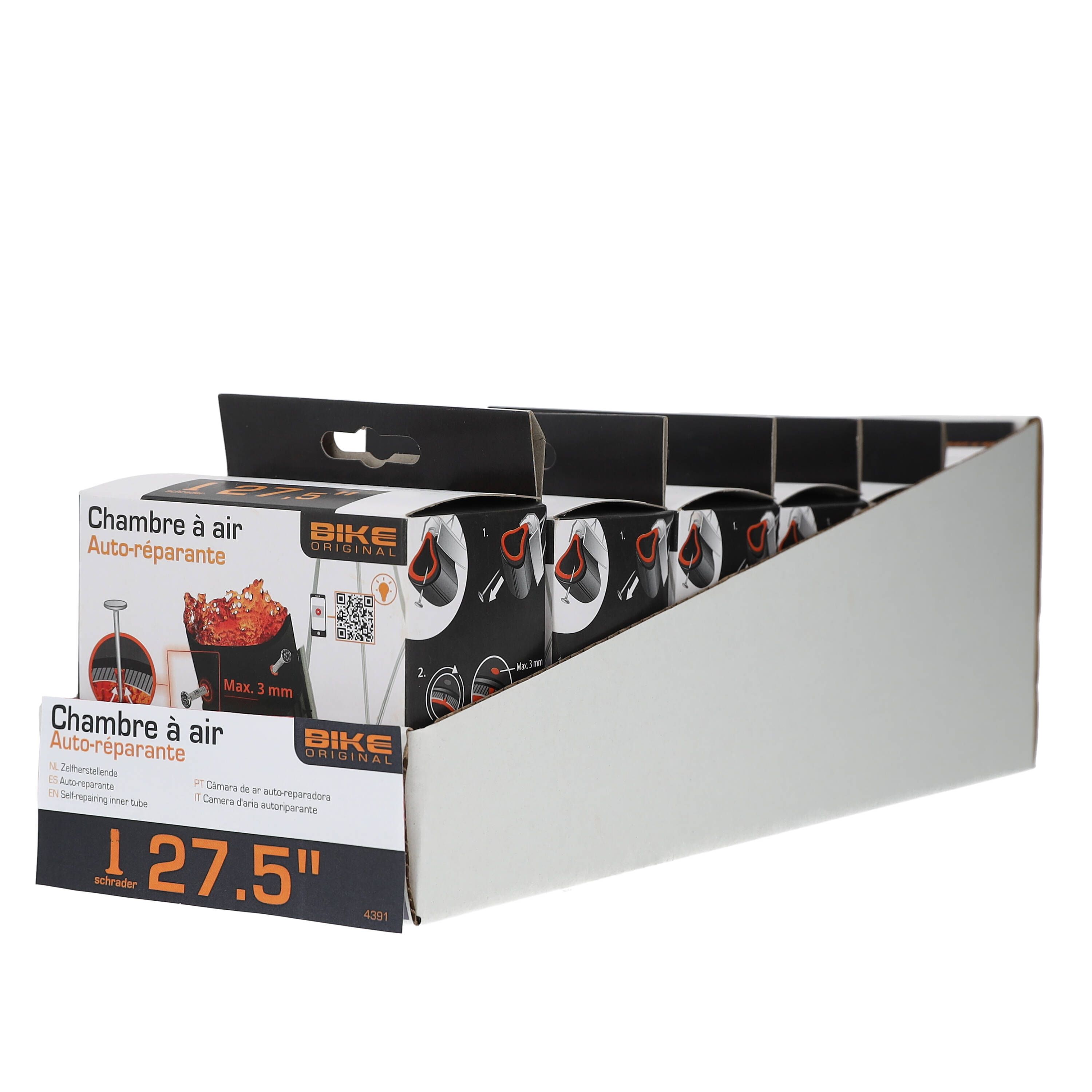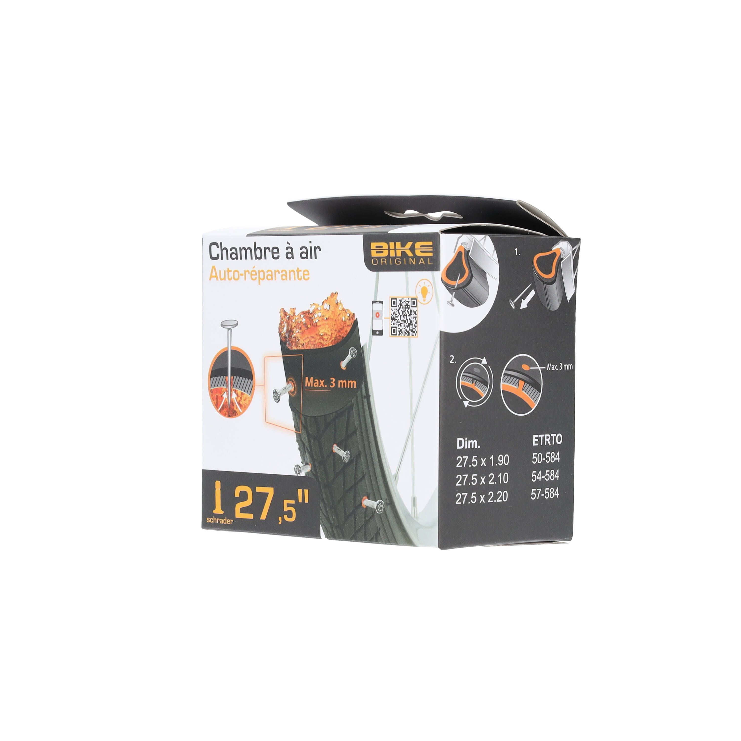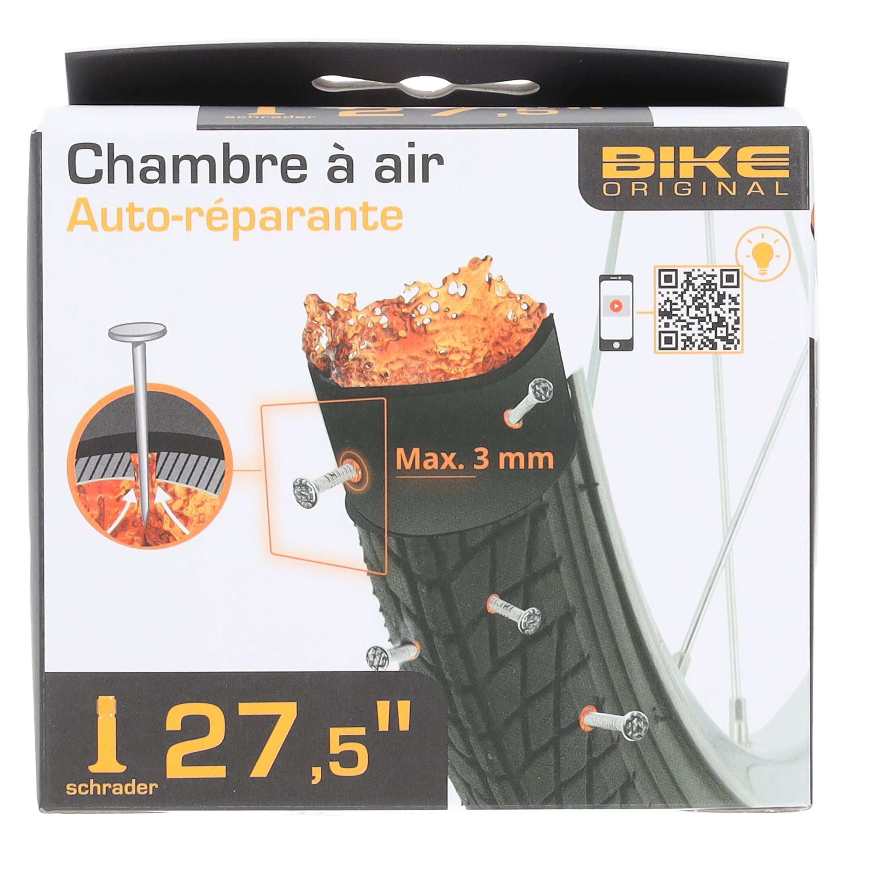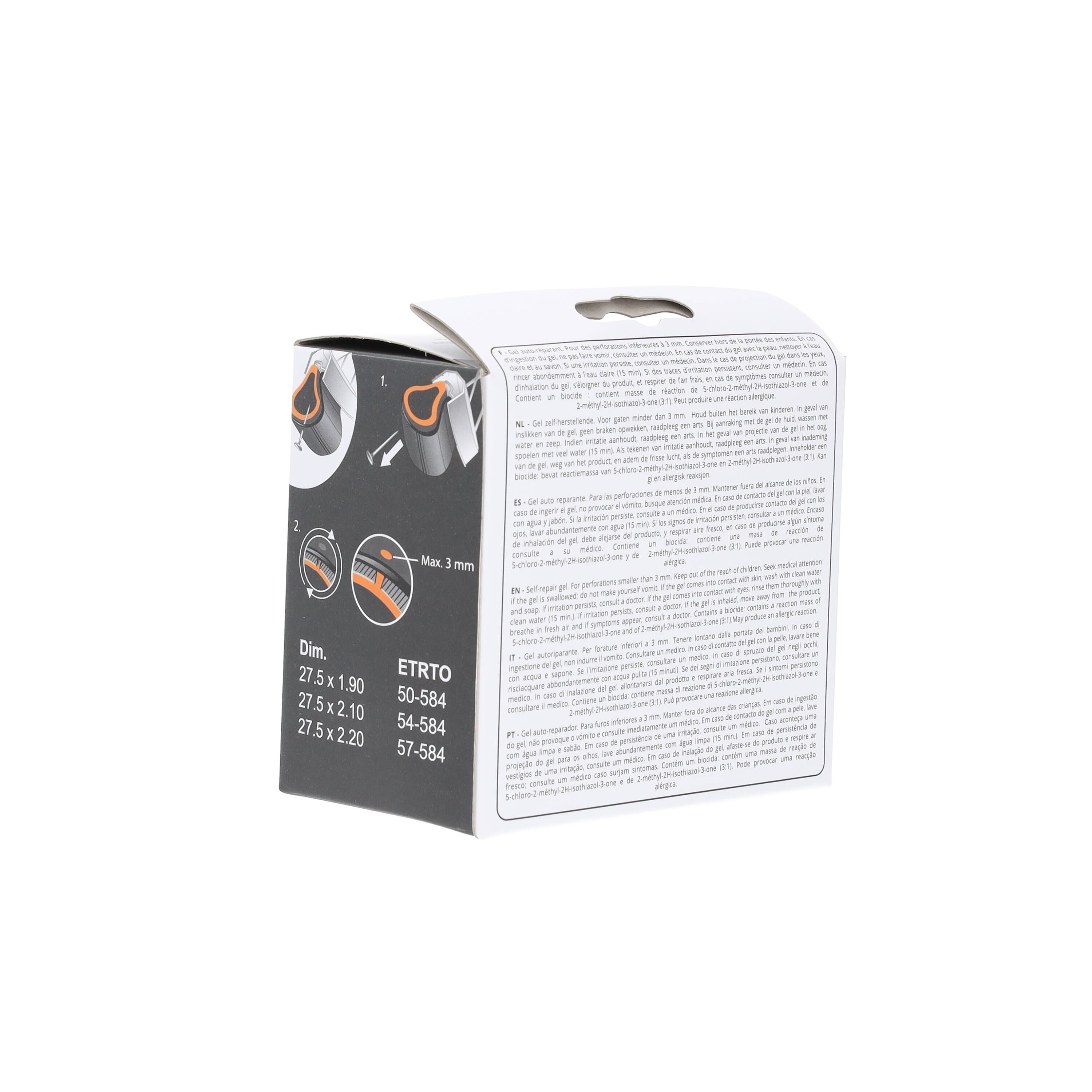 Chambre à air auto-réparante 27.5’’ pour valve schrader contient un gel auto-réparant pour les perforations inférieures à 3 mm.