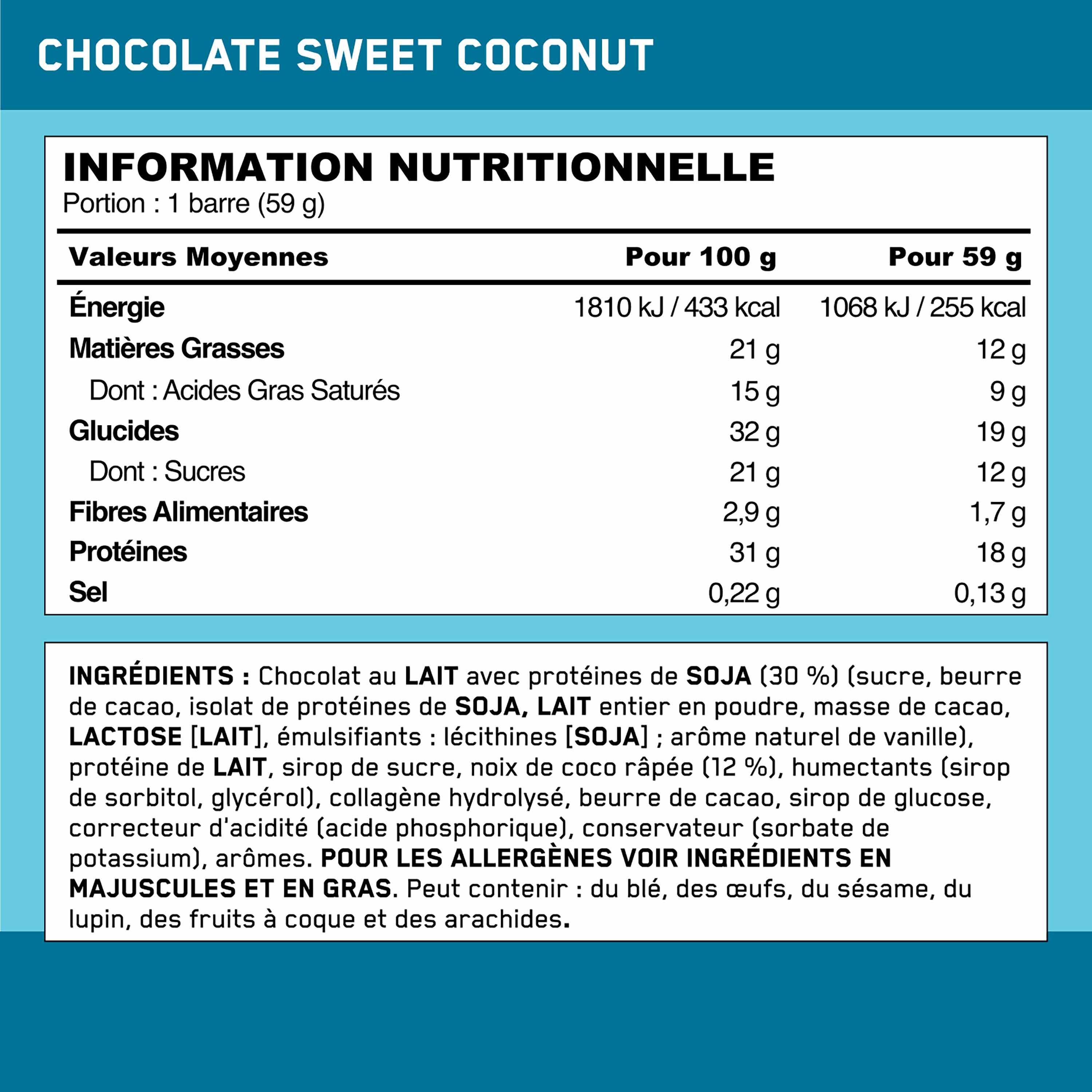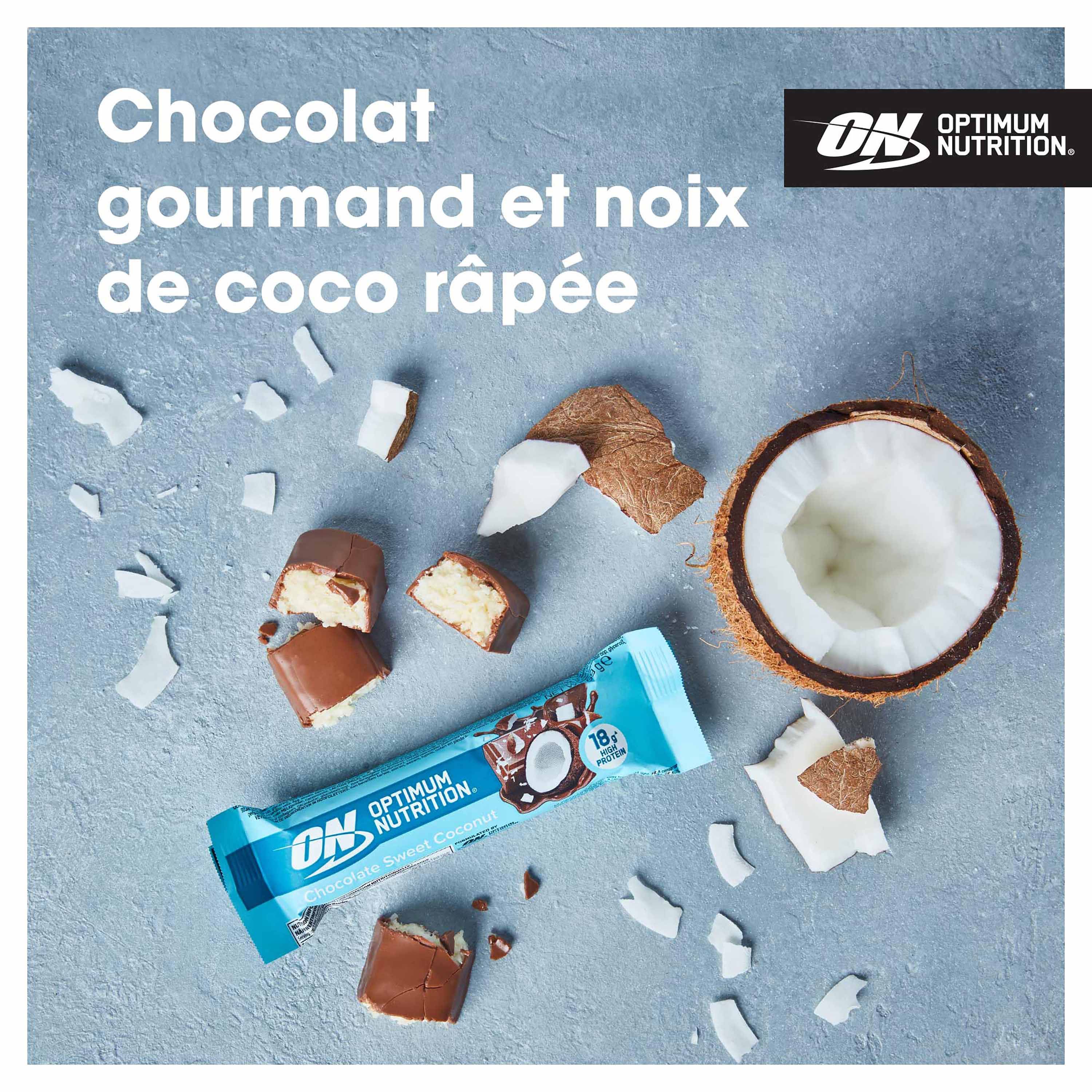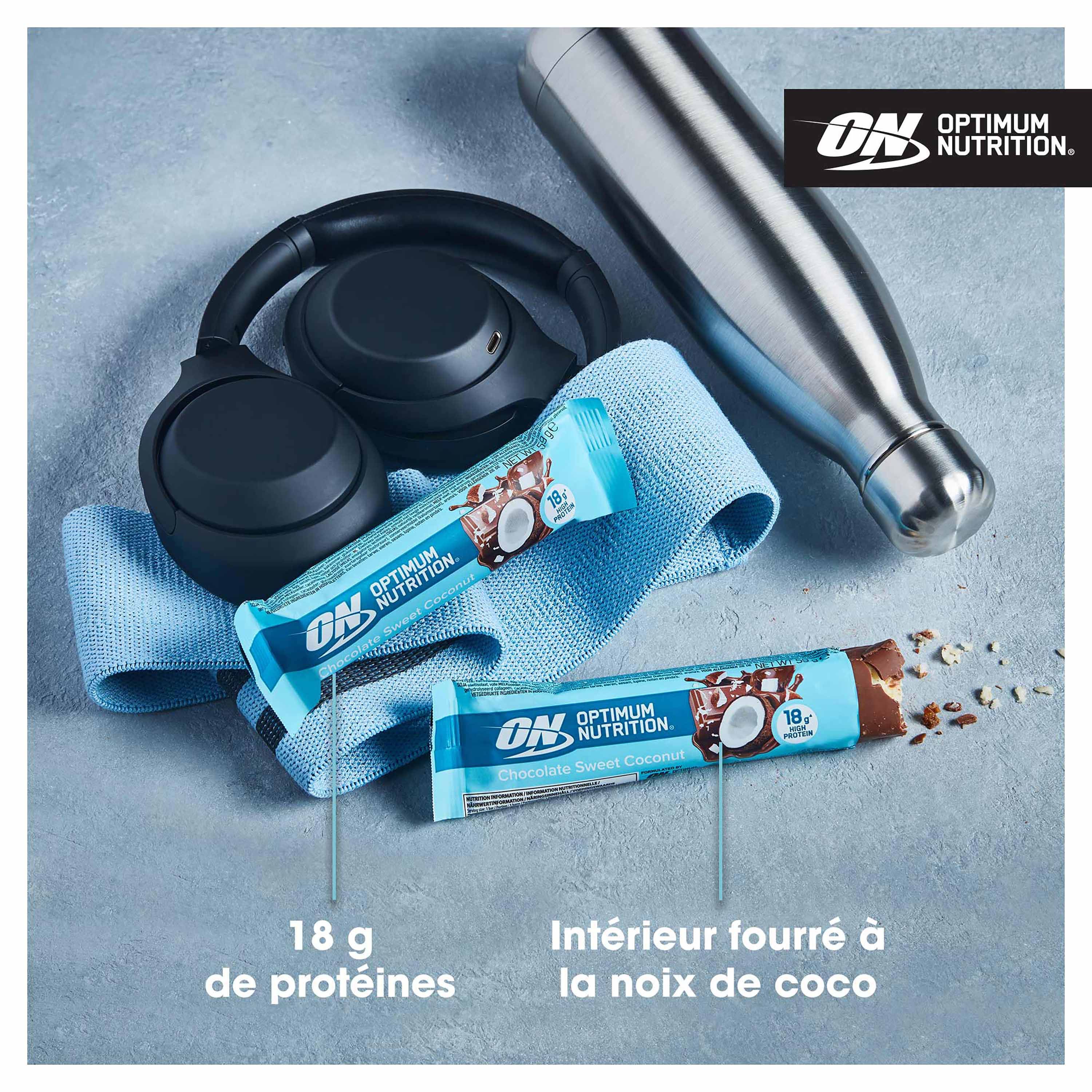 Faites le plein de protéines avec la barre protéinée Chocolat Noix de Coco d’Optimum Nutrition.