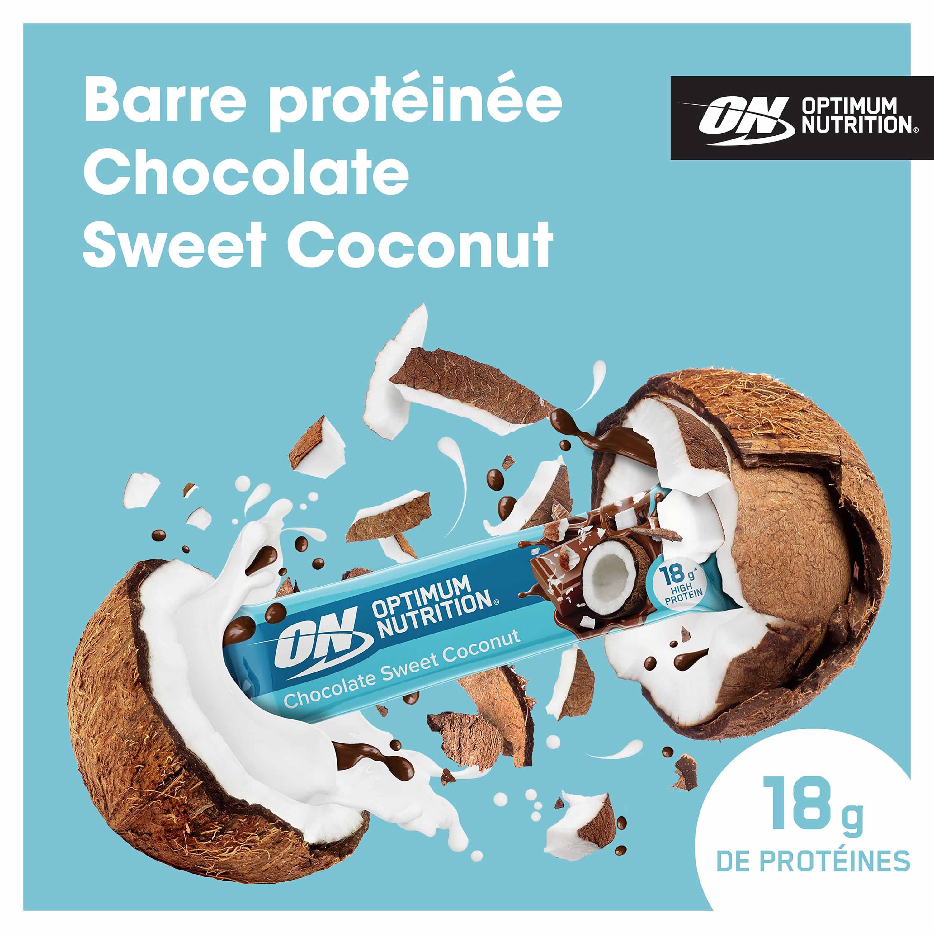 Faites le plein de protéines avec la barre protéinée Chocolat Noix de Coco d’Optimum Nutrition.