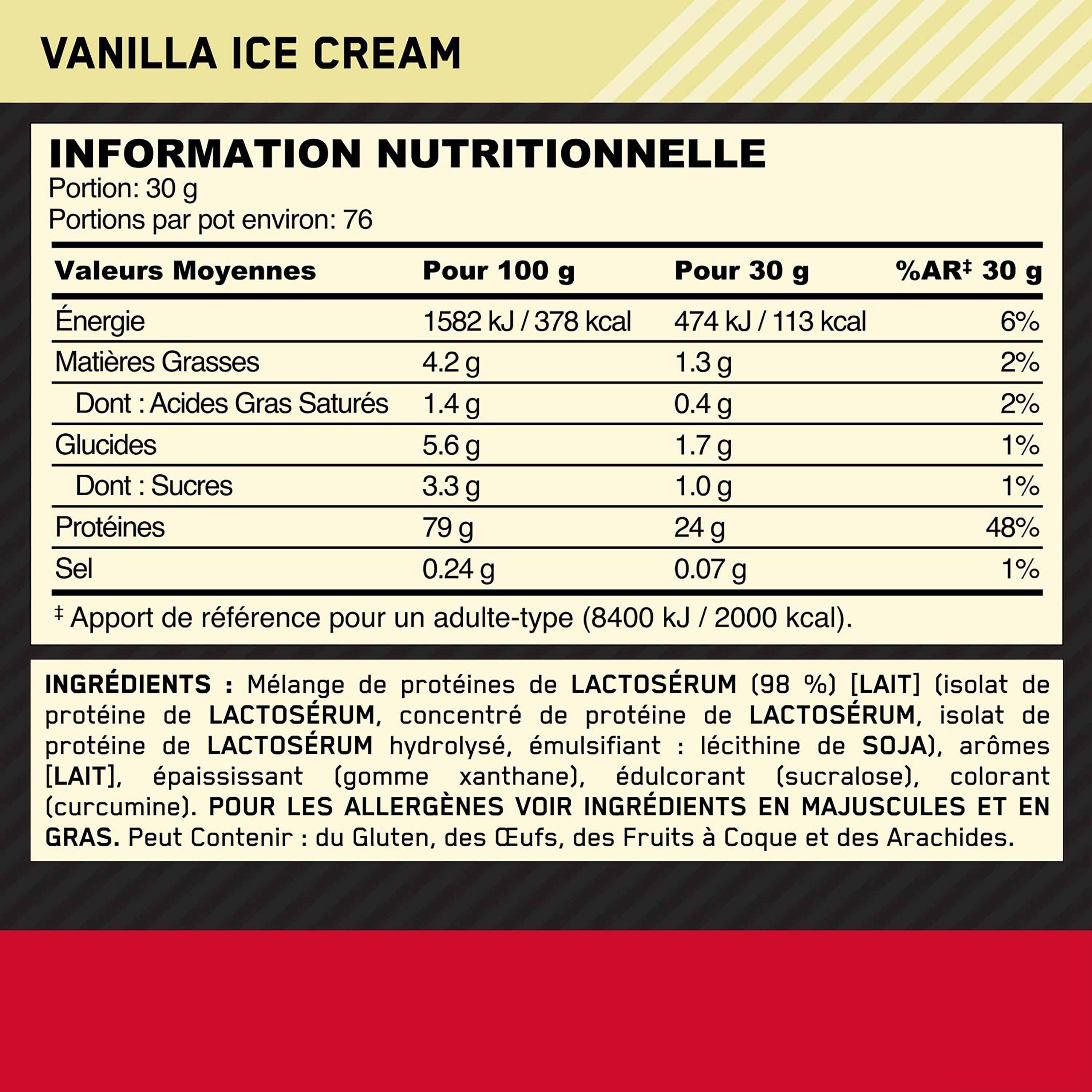 Protéine Gold Standard 100% Whey Glace à la Vanille 2,28kg OPTIMUM NUTRITION