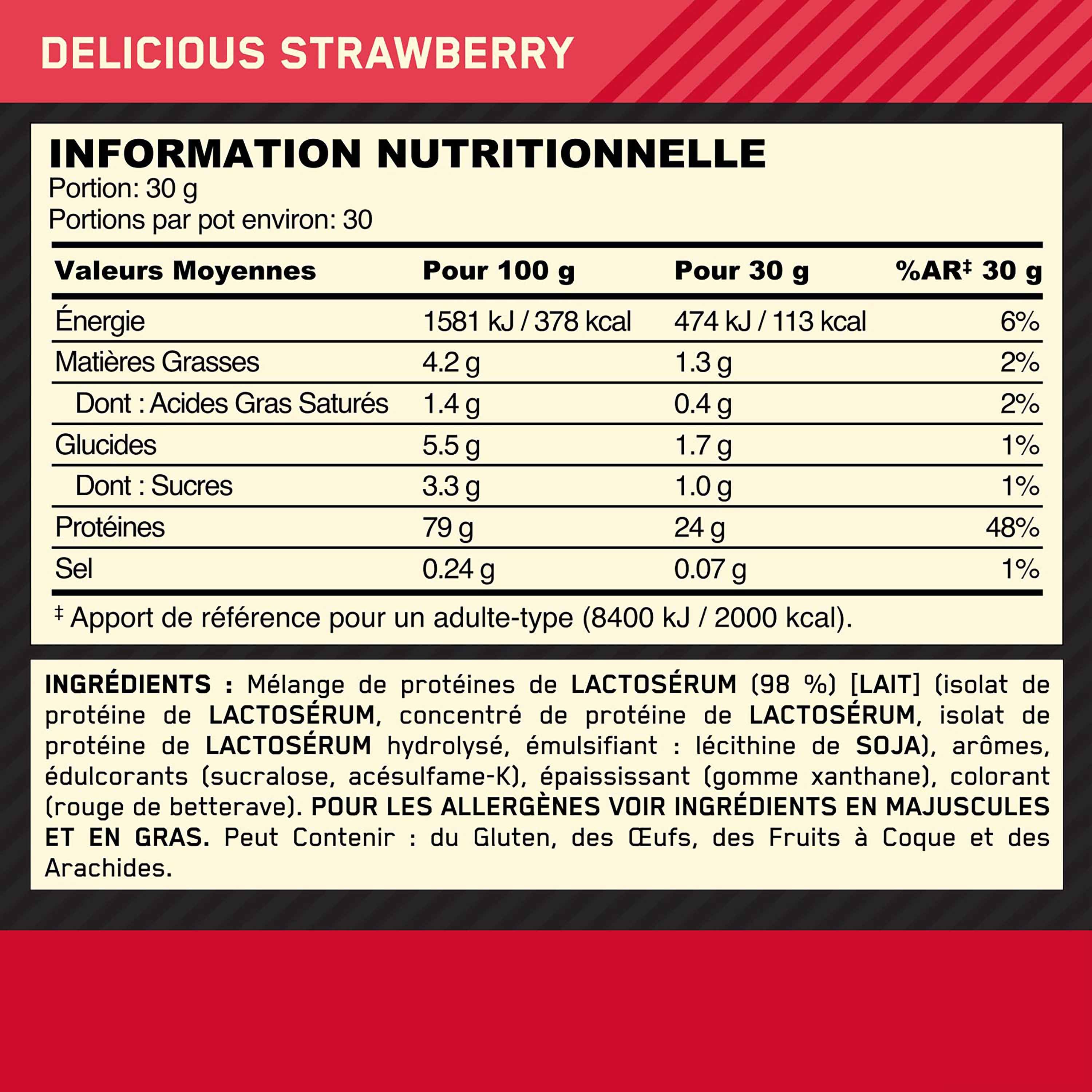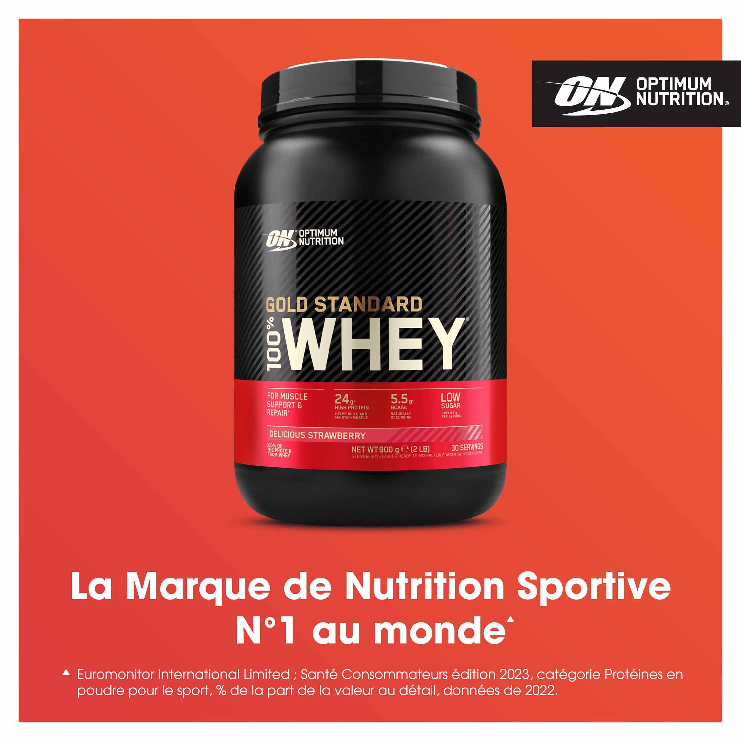 Protéine Gold Standard 100% Whey Fraise 900g OPTIMUM NUTRITION